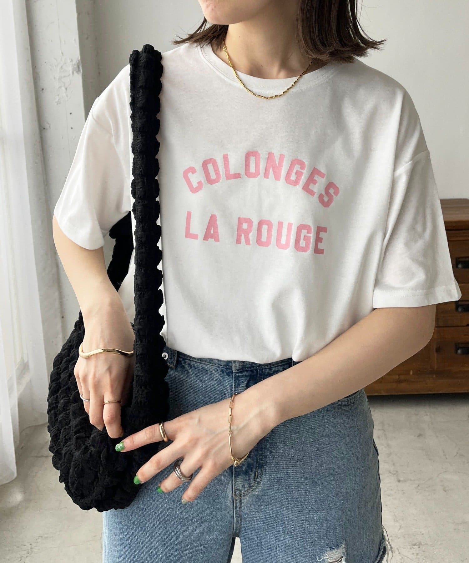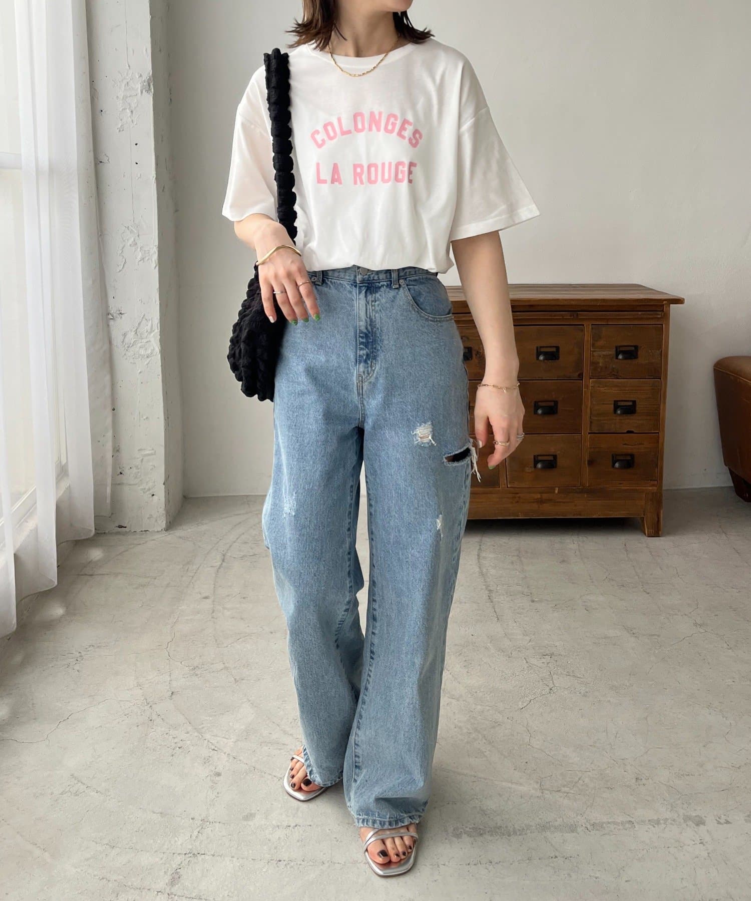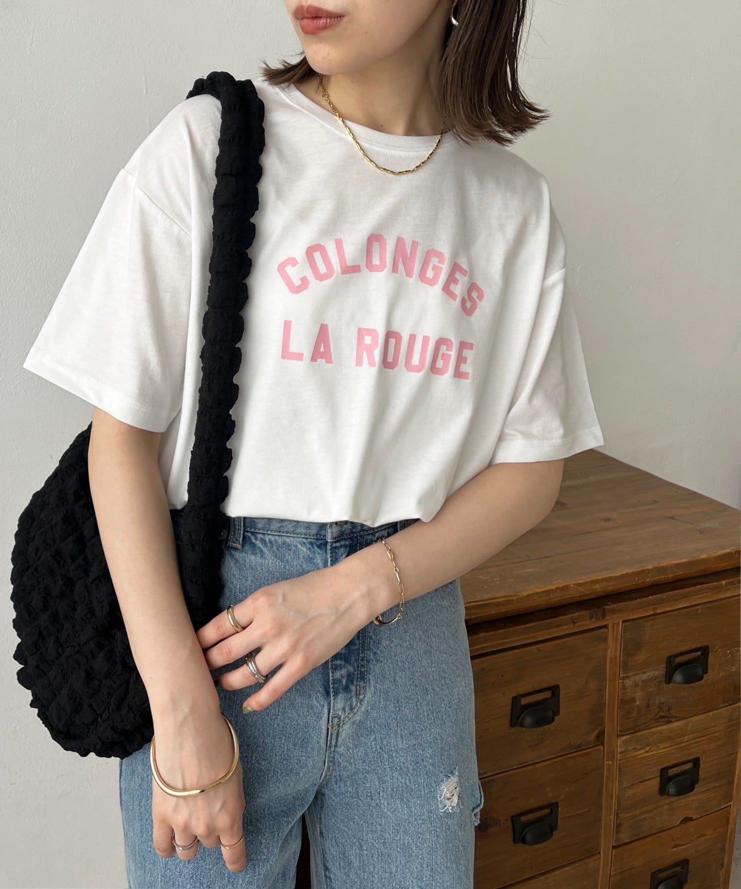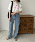 一枚着はもちろん、レイヤードのインナーとしても万能なロゴプリントTシャツ。女性らしく仕上がる旬のバイカラーに、ロゴプリントがシンプルでありながらコーディネートにトレンド感をプラスしてくれるデザイン。程よくゆったりした、インでもアウトでも使いやすいシルエットで、幅広い着回しに大活躍間違いなしです◎
