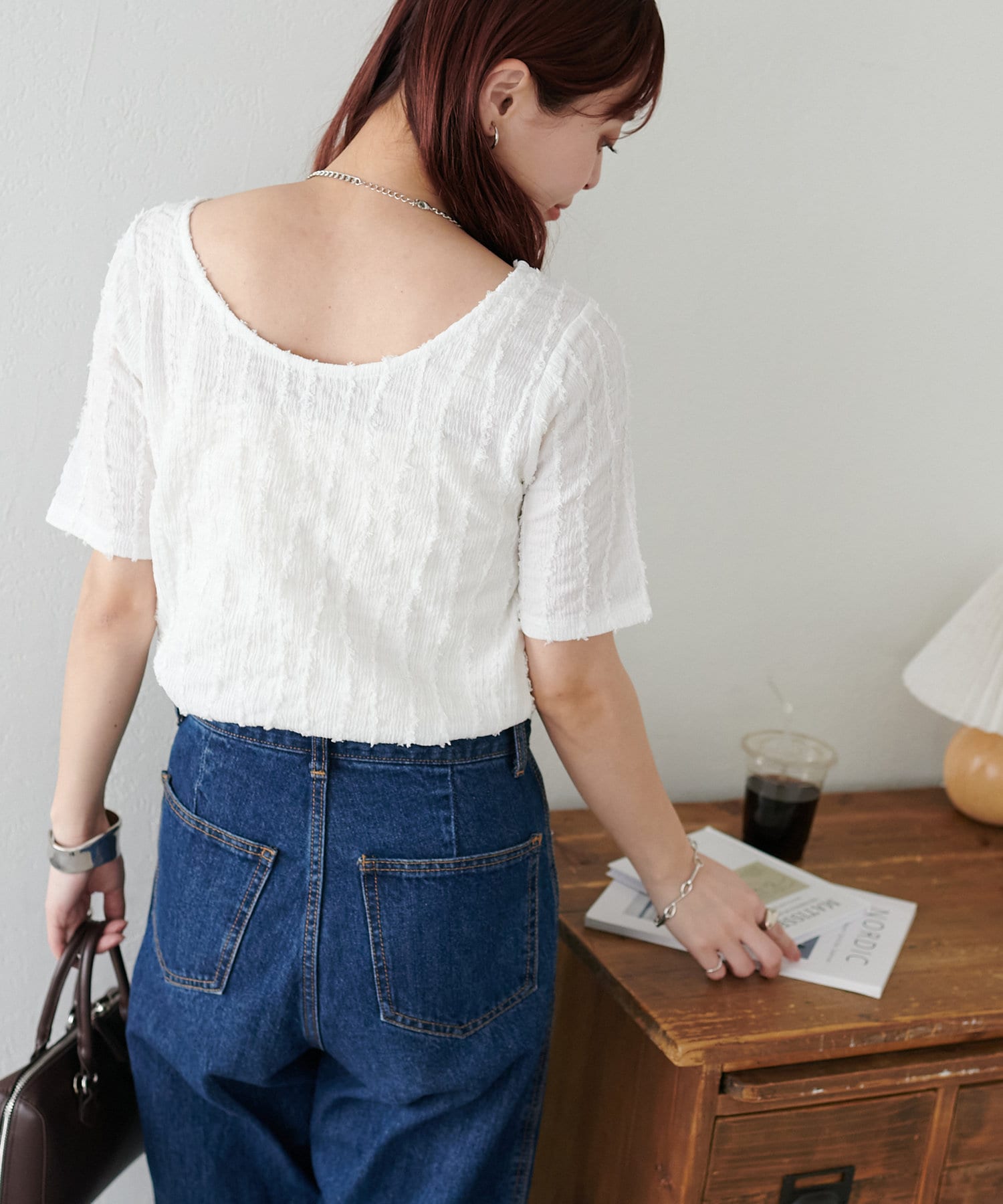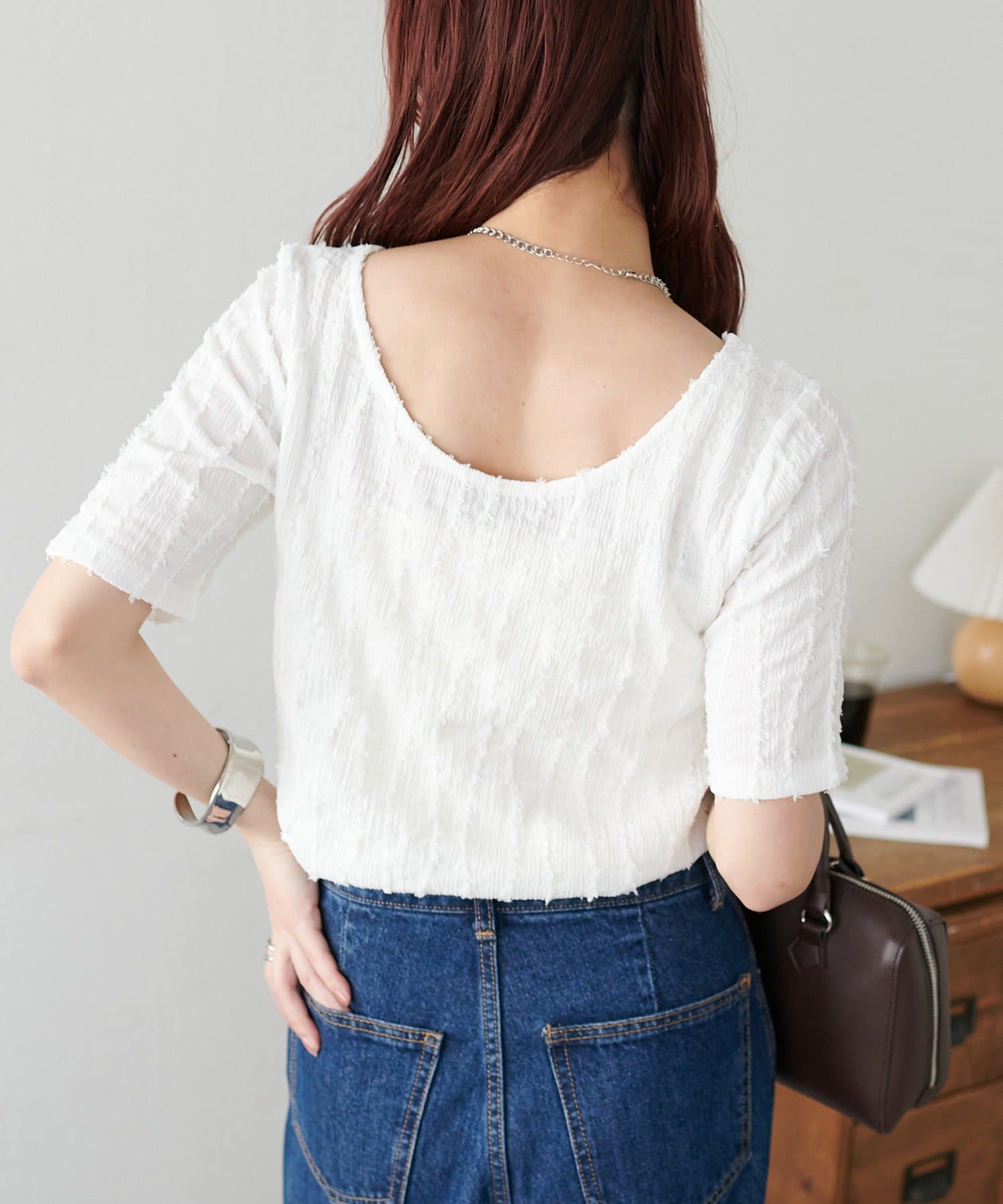 カジュアルなデニムと合わせてラフに着こなすのはもちろん、スラックスやナロースカートと合わせれば上品な印象に。バックの開きが程よく肌見せを叶えるので、キャミやカップ付きインナーとのレイヤードで、インナー次第で雰囲気チェンジも楽しめます♪