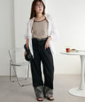 158cmスタッフ:柔らかく、伸びの良いコットン混のリブ素材を使用しており、肌あたりが優しくストレスフリーな着心地です!程よい厚みで透け感を気にせず着用でき、1枚でも安心して着られるのも魅力です。