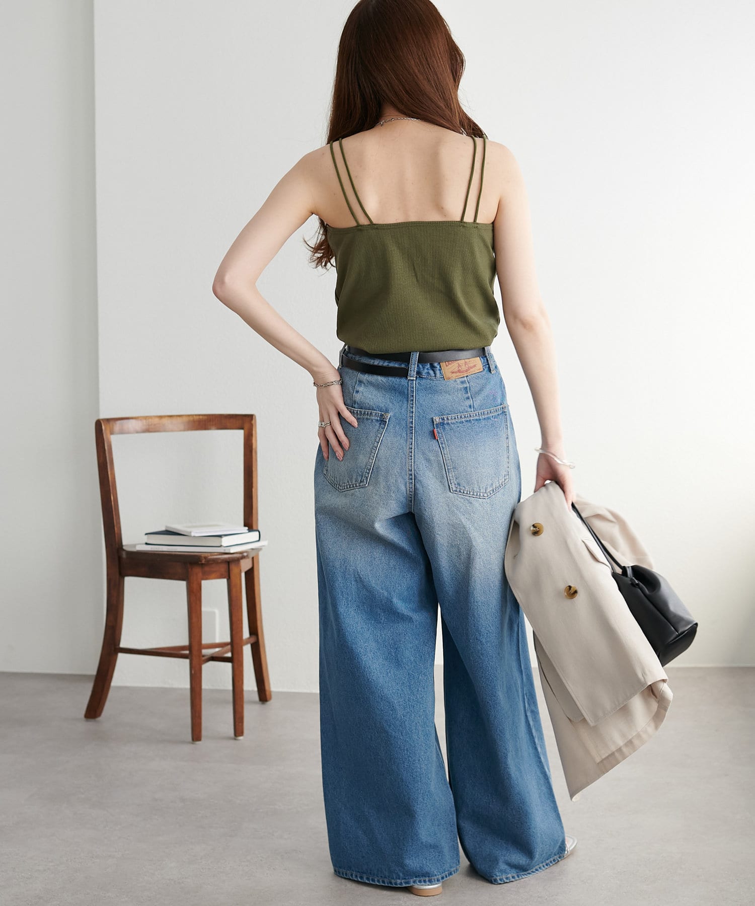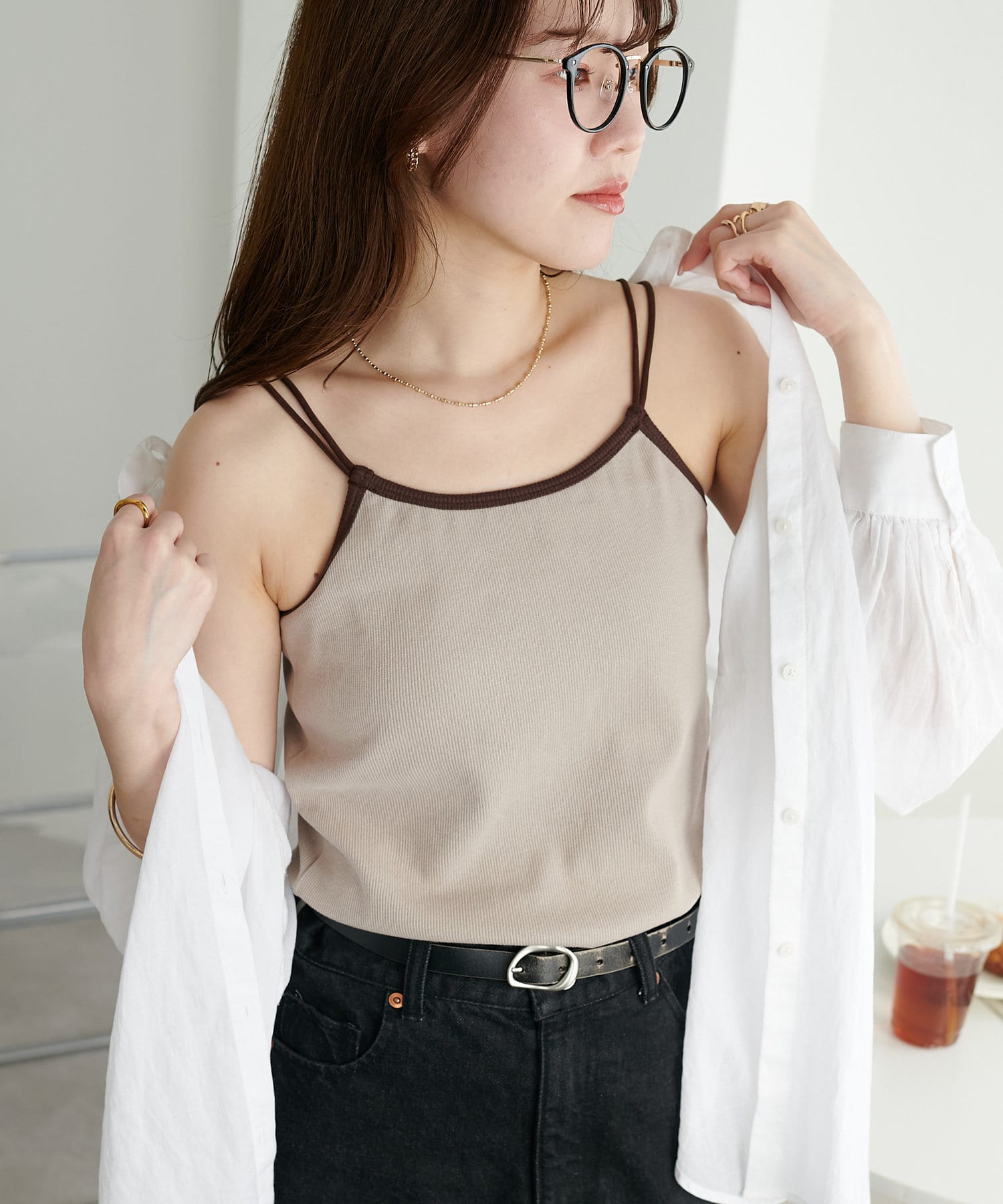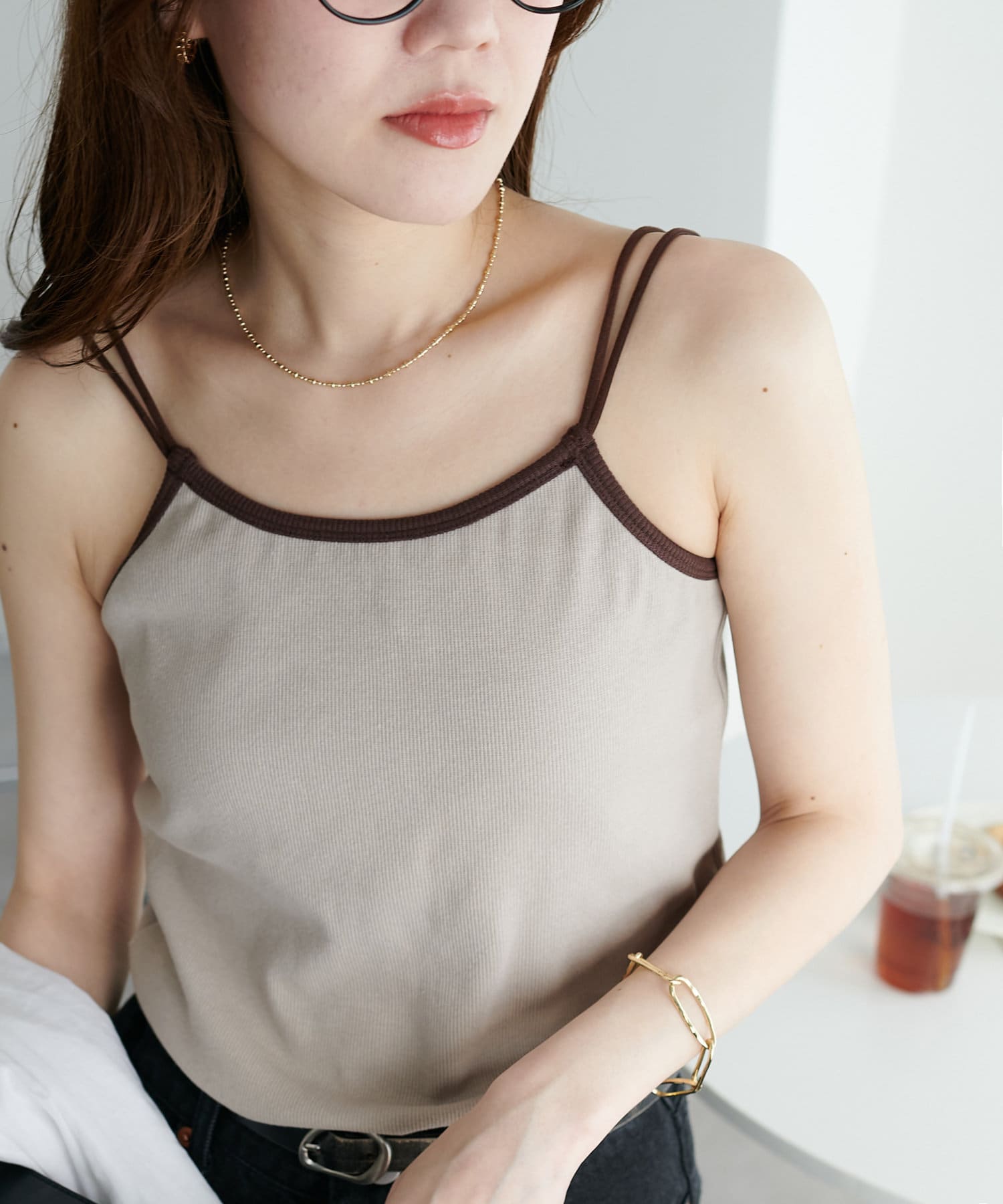 華奢なダブルストラップが女性らしい抜け感を演出するリブキャミソール。