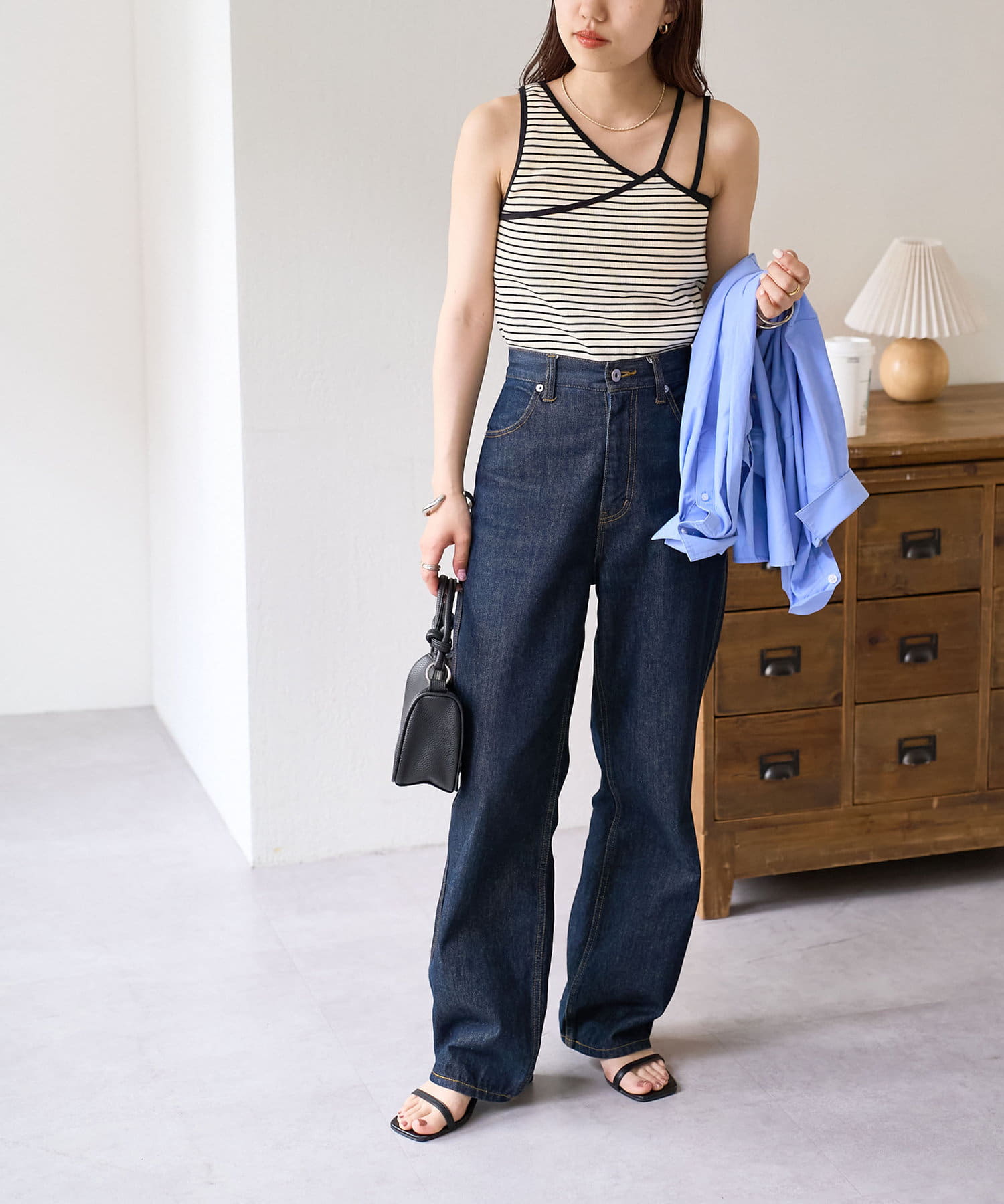 ・アシンメトリーなカッティングで、シンプルながら女性らしい抜け感をプラス