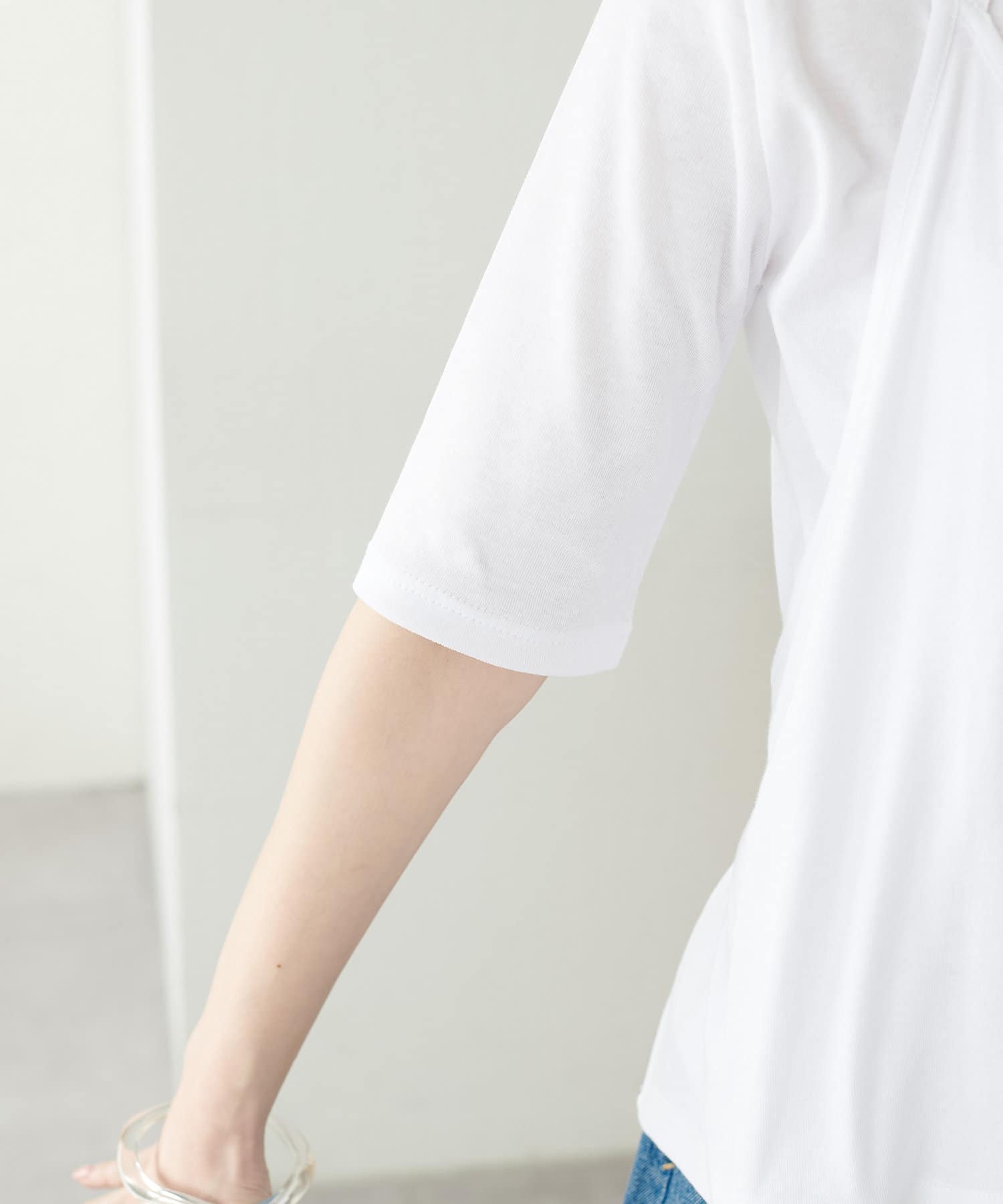 二の腕太いけど気にならずシュッと見えて嬉しい。生地もサラサラしているから暑い夏にも良さそうです。