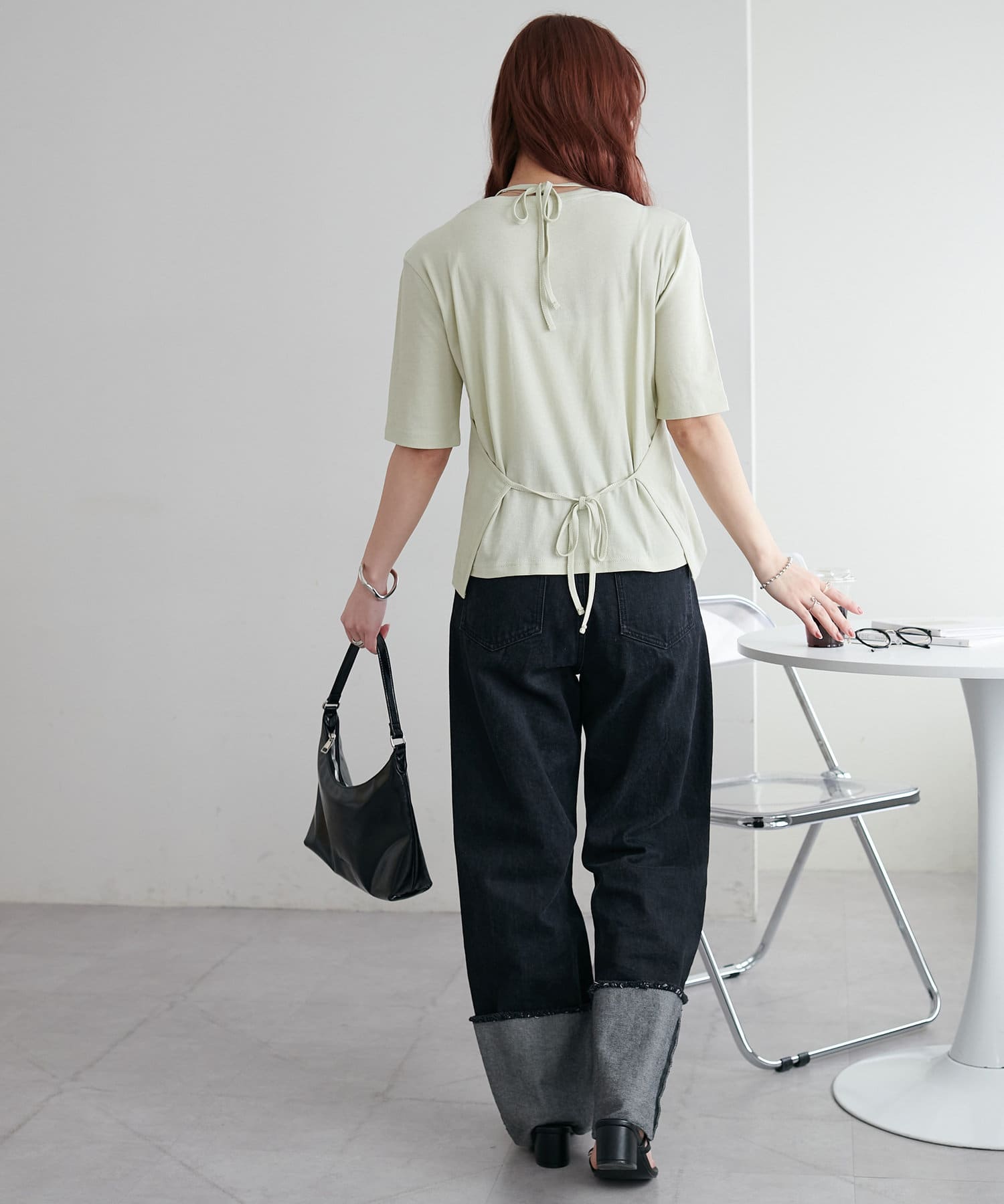 155cmスタッフ:簡単にトレンドコーデができちゃうのが嬉しいポイント◎リボンデザインで後ろ姿も抜かりなく可愛い一枚です。