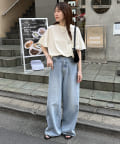 やや甘めのアイテムなのでデニムやワイドパンツなどのカジュアルなアイテムと合わせたスタイルがおすすめ♩