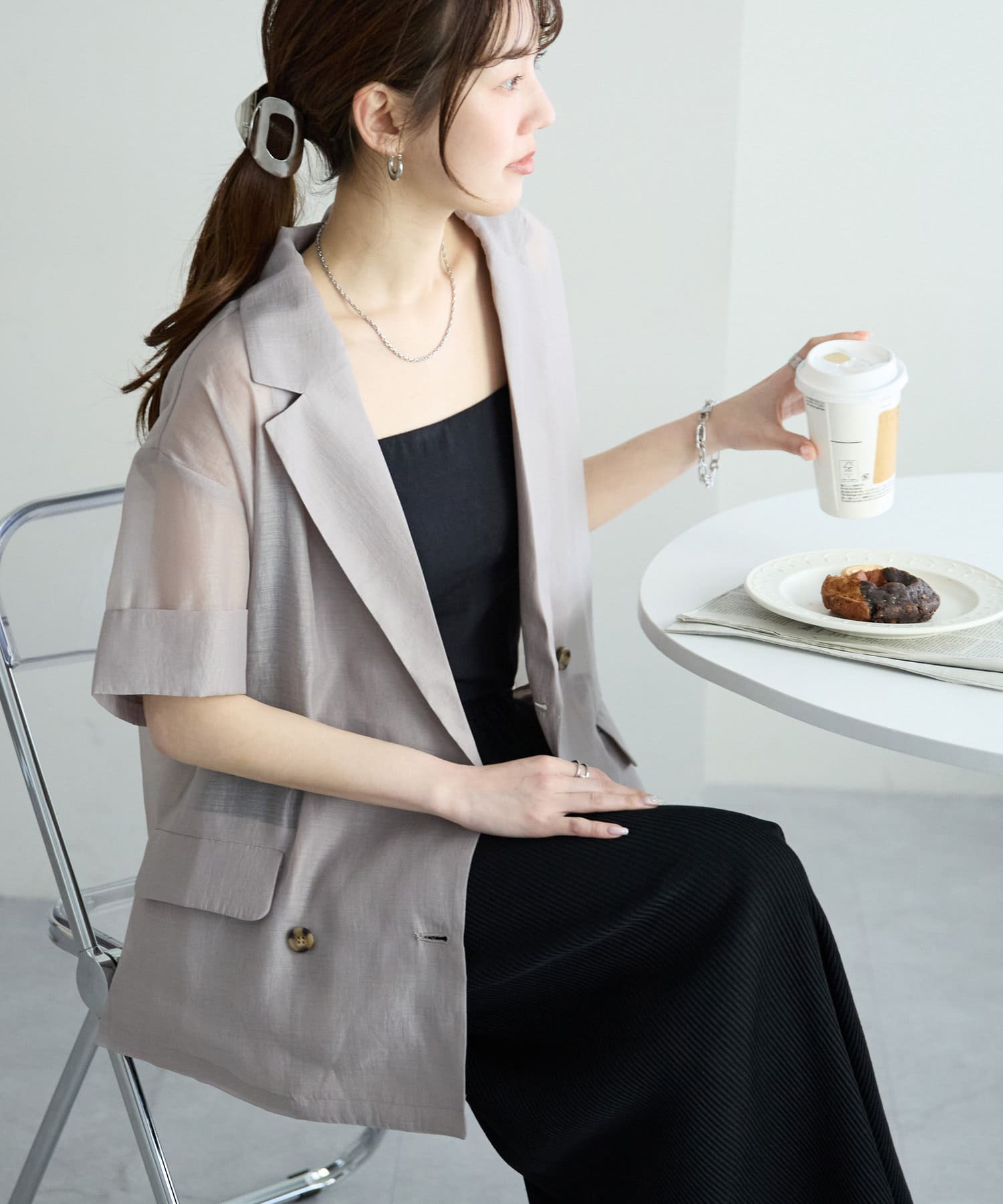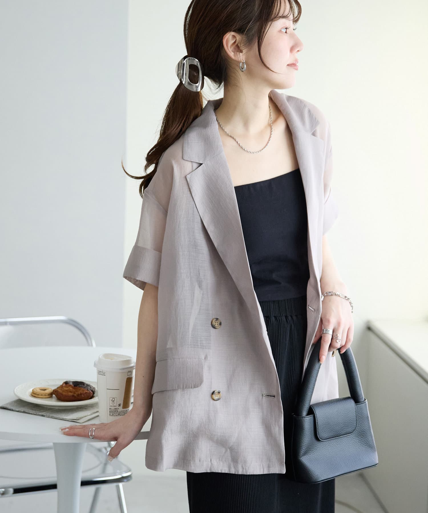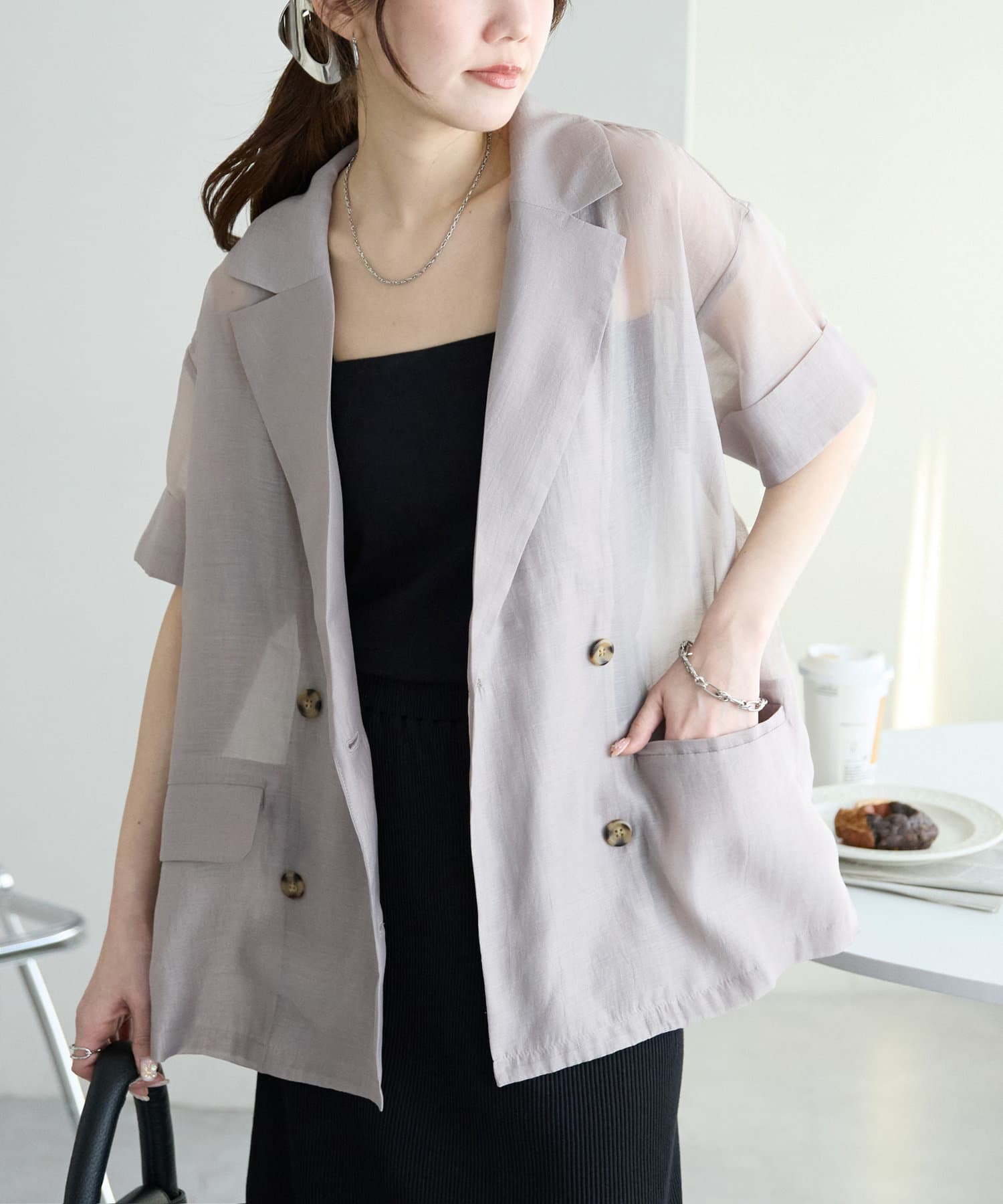 【程よい透け感】半袖シアーテーラードジャケット《WEB限定》