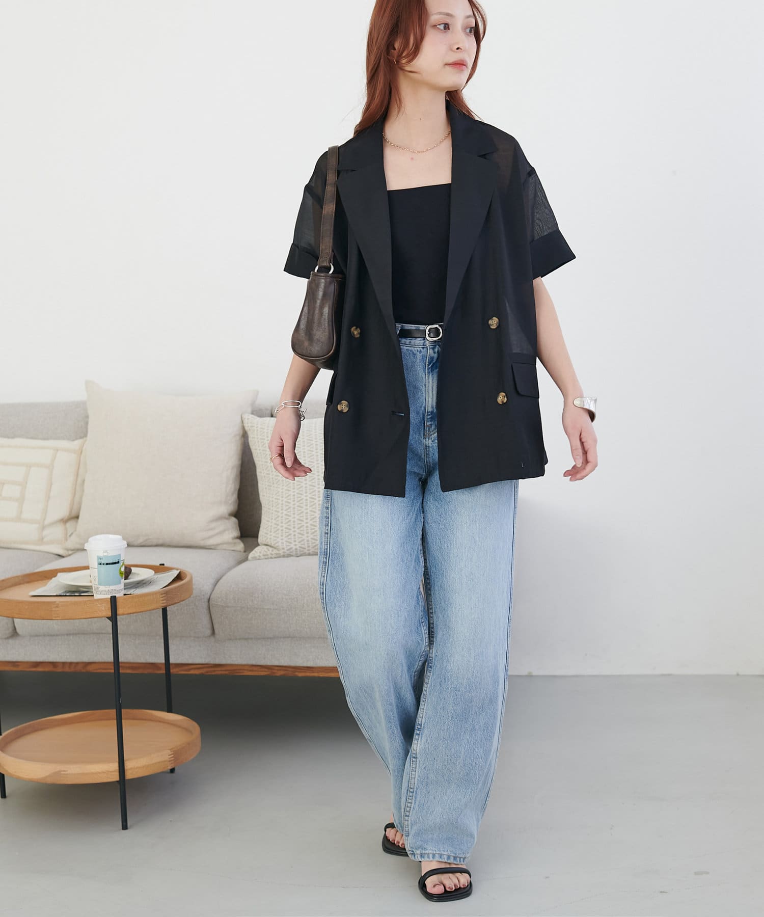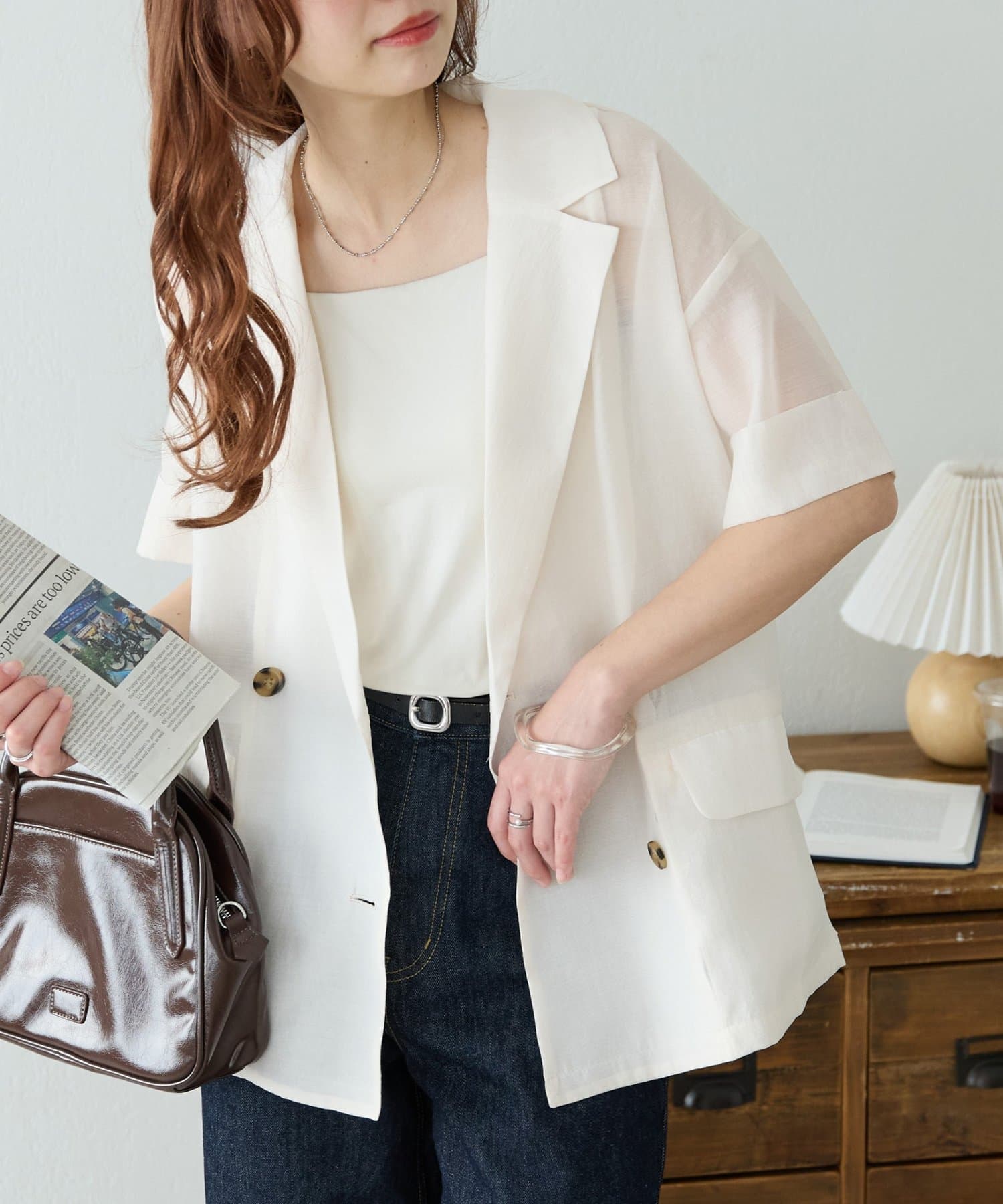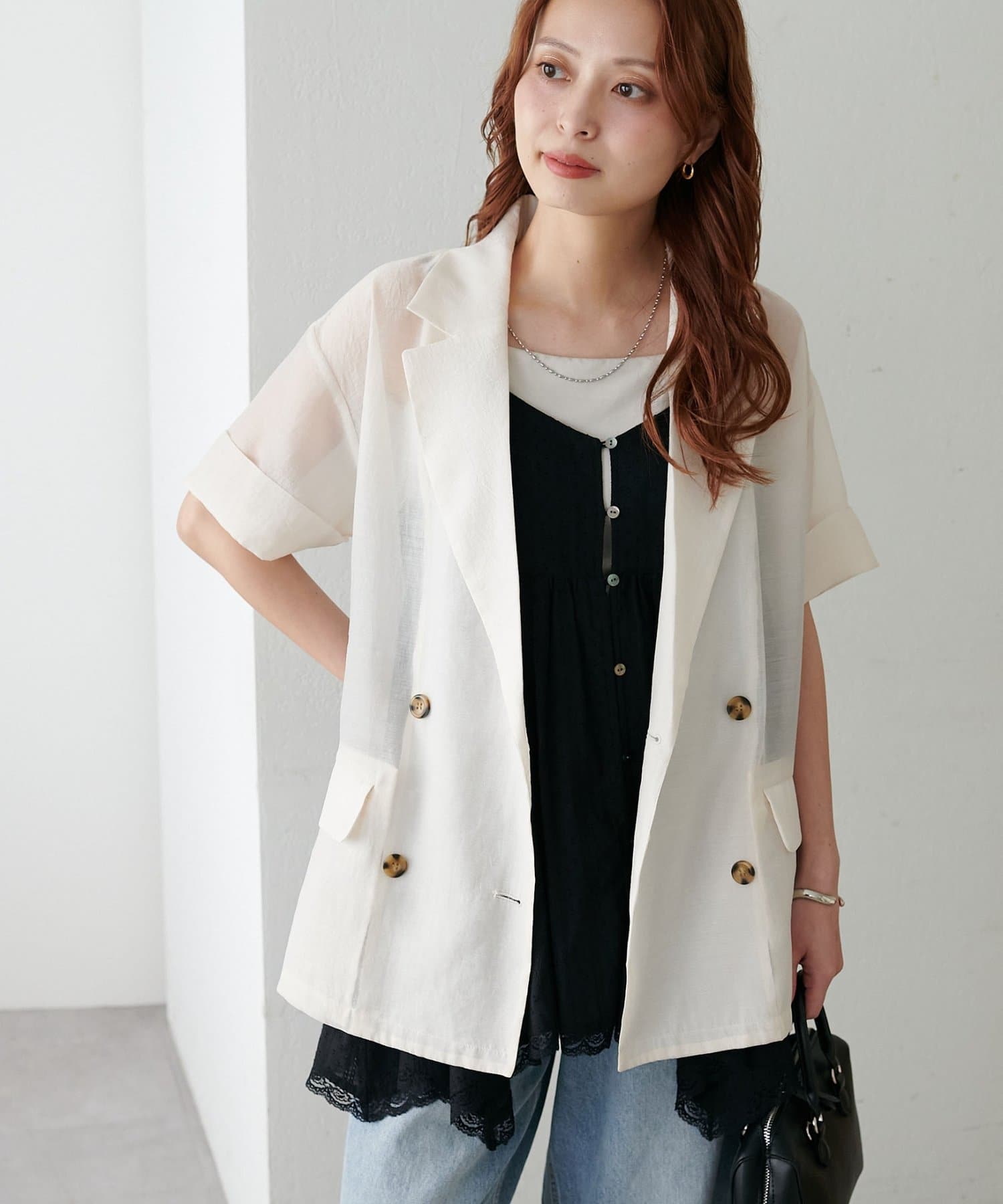 【程よい透け感】半袖シアーテーラードジャケット《WEB限定》