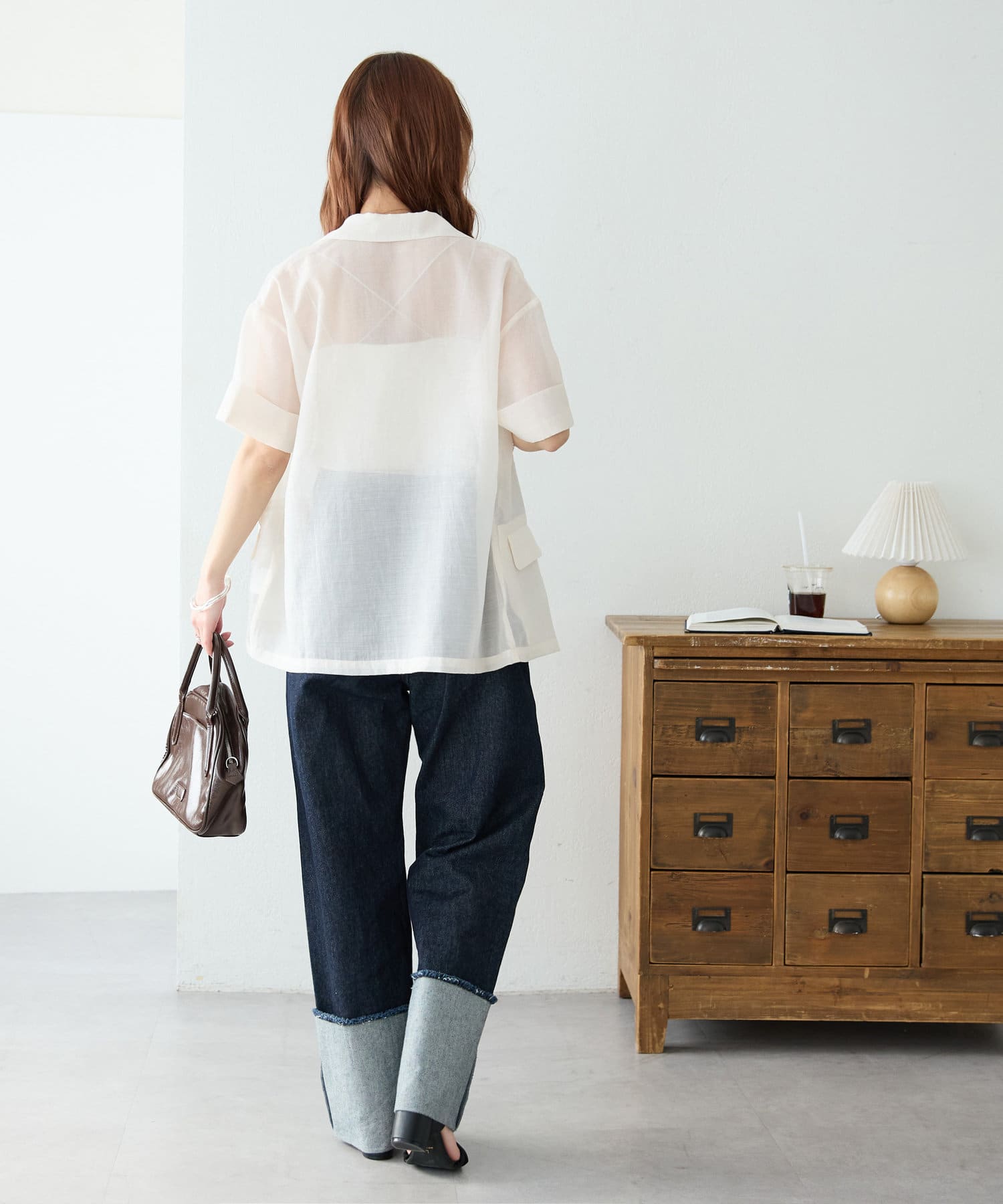 158cmスタッフ:軽くて風通しがよく、真夏でも羽織れるのが嬉しいです!ヒップが隠れる丈で、体型カバーにも◎