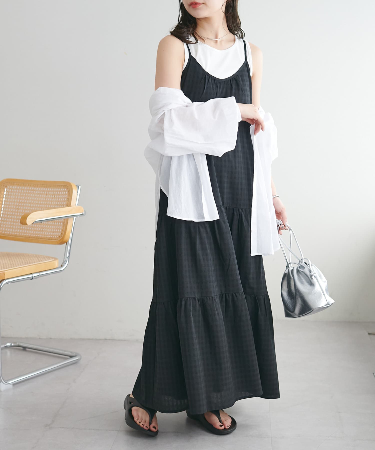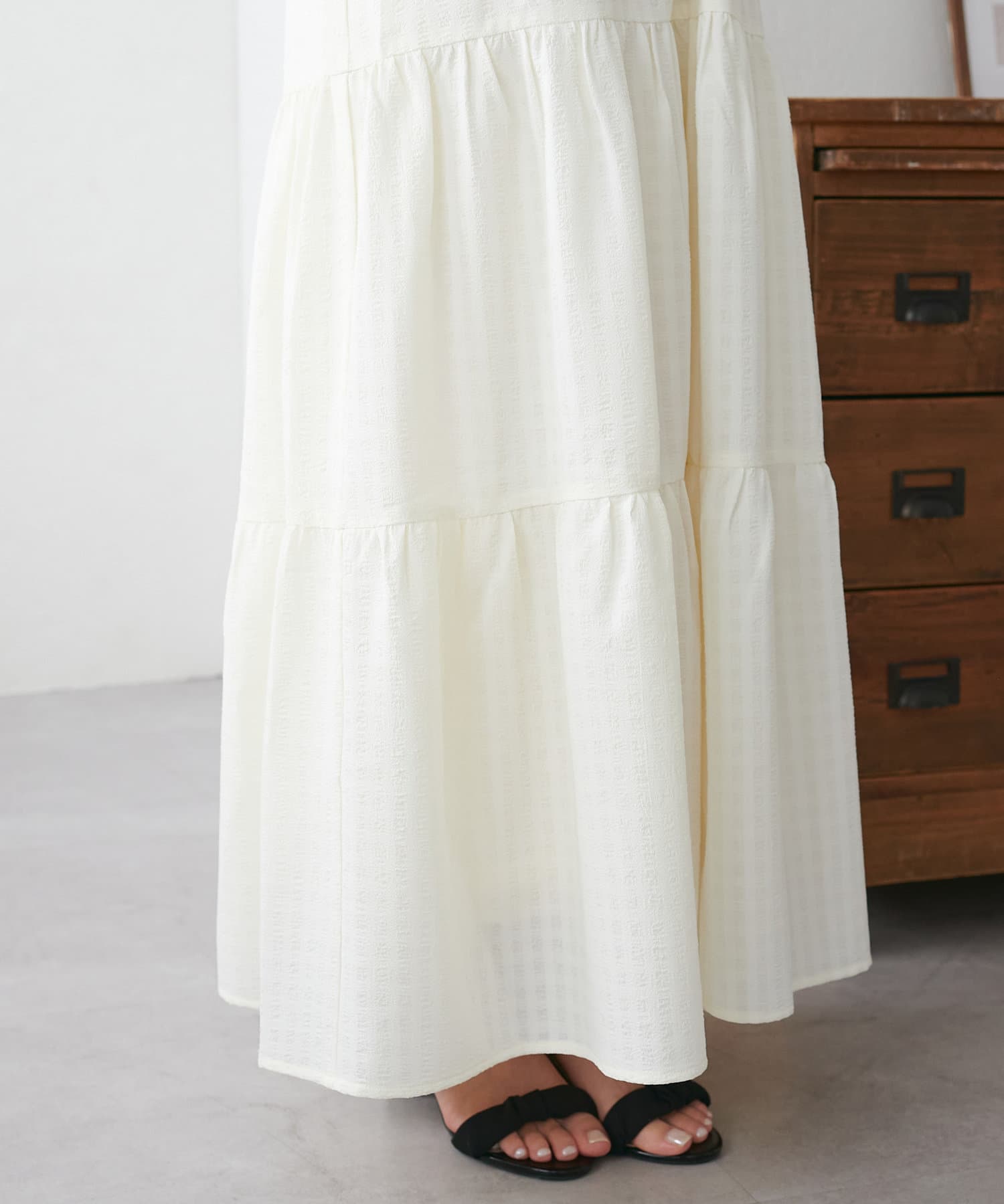 ふんわりと広がるティアードデザインが、女性らしい柔らかな雰囲気を演出。