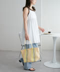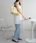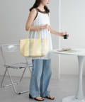 夏らしい素材のチューブハンドルストライプトートバッグ。
