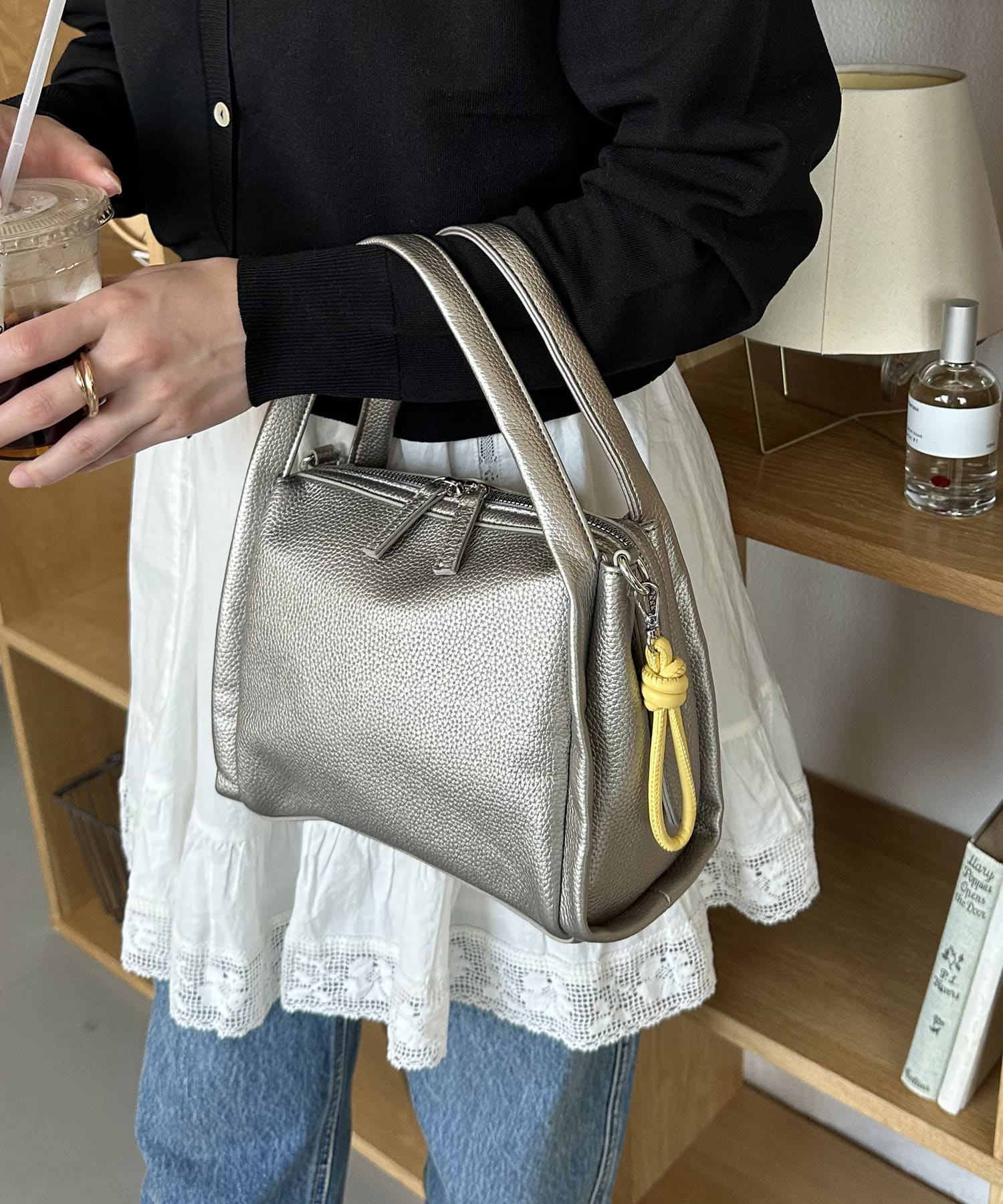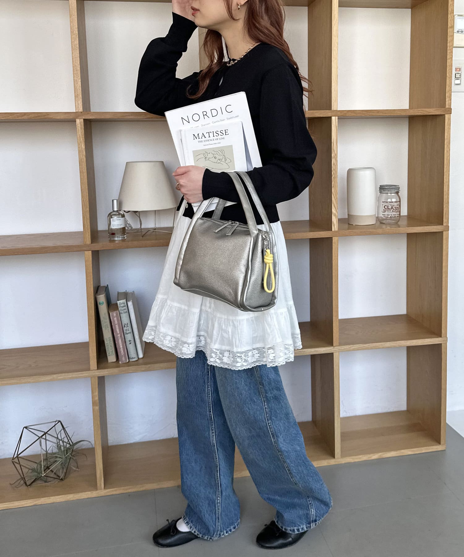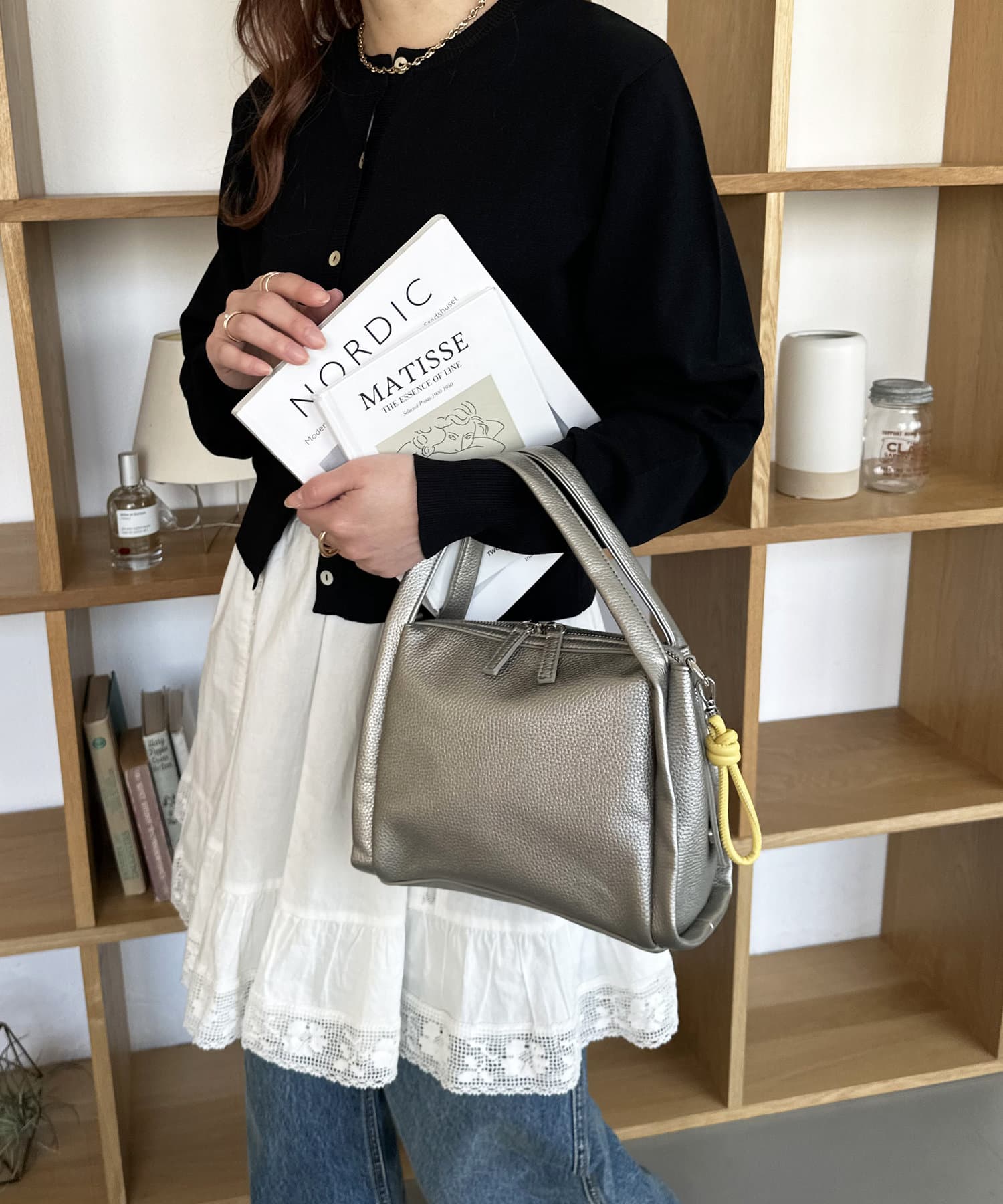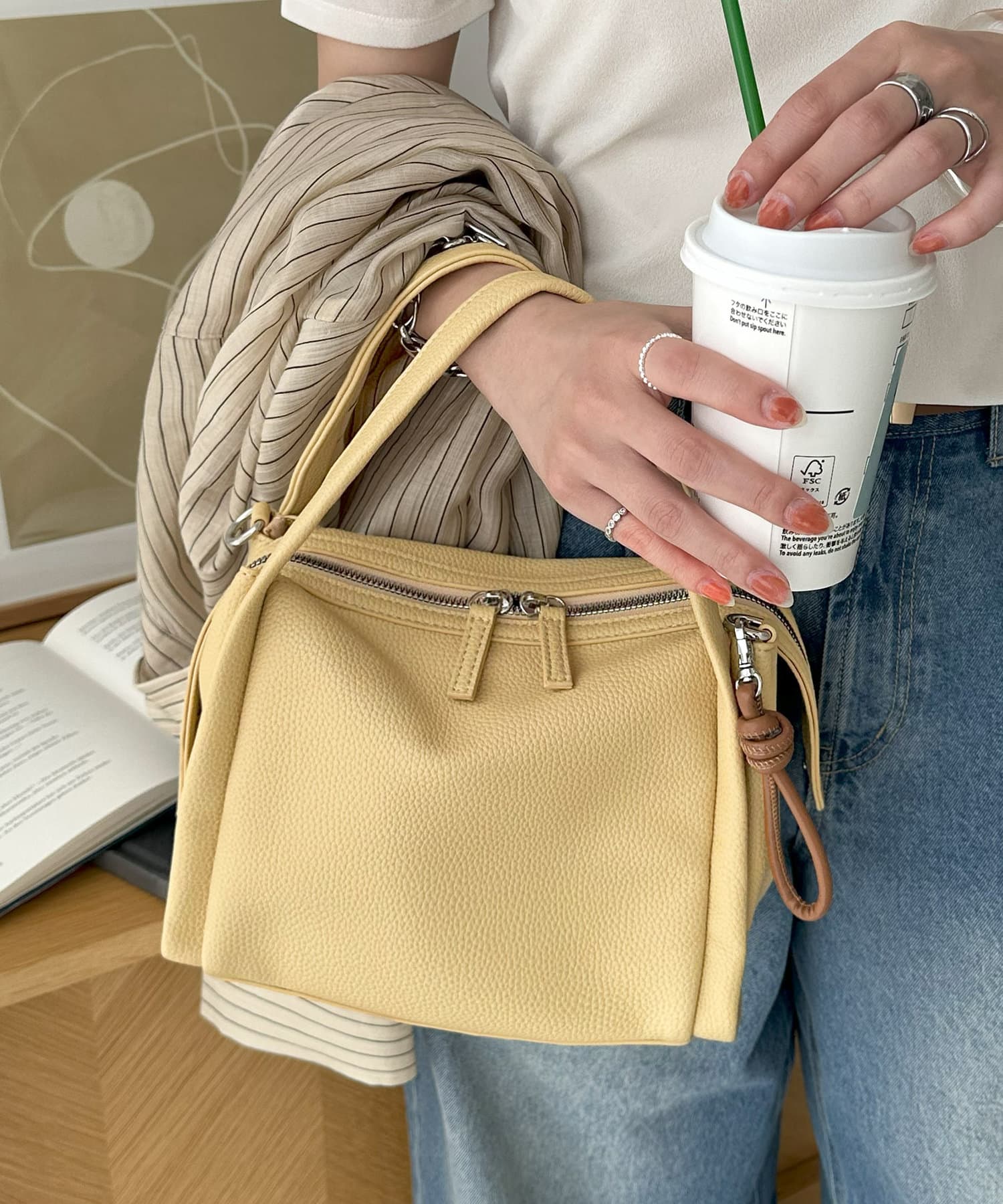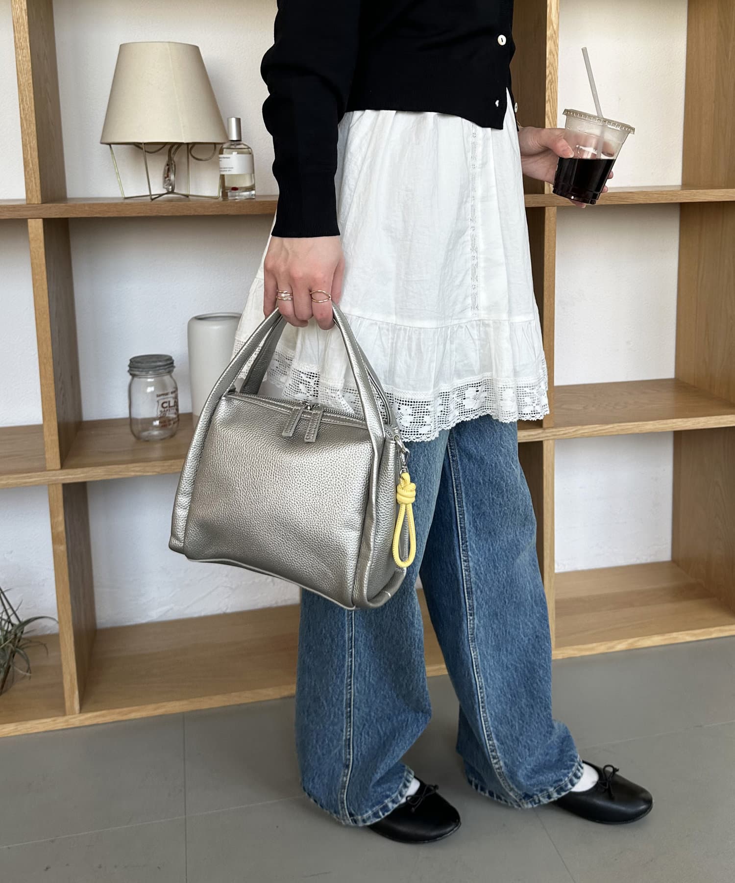 ベーシックなスクエアデザインで季節や系統問わず使えるチャーム付ソフトスクエアショルダーバッグ。付属のチャームがアクセントに♪また、コンパクトな見た目ながら、500mlペットボトルと長財布を一緒に収納できるほどたくさん入ります◎マチがしっかりとあるので自立してくれるのも嬉しいポイントです!カラー展開はブラック・ブラウンのベーシックカラー2色、大人っぽい色味のシルバー、今季春トレンドのイエローの4色です♪