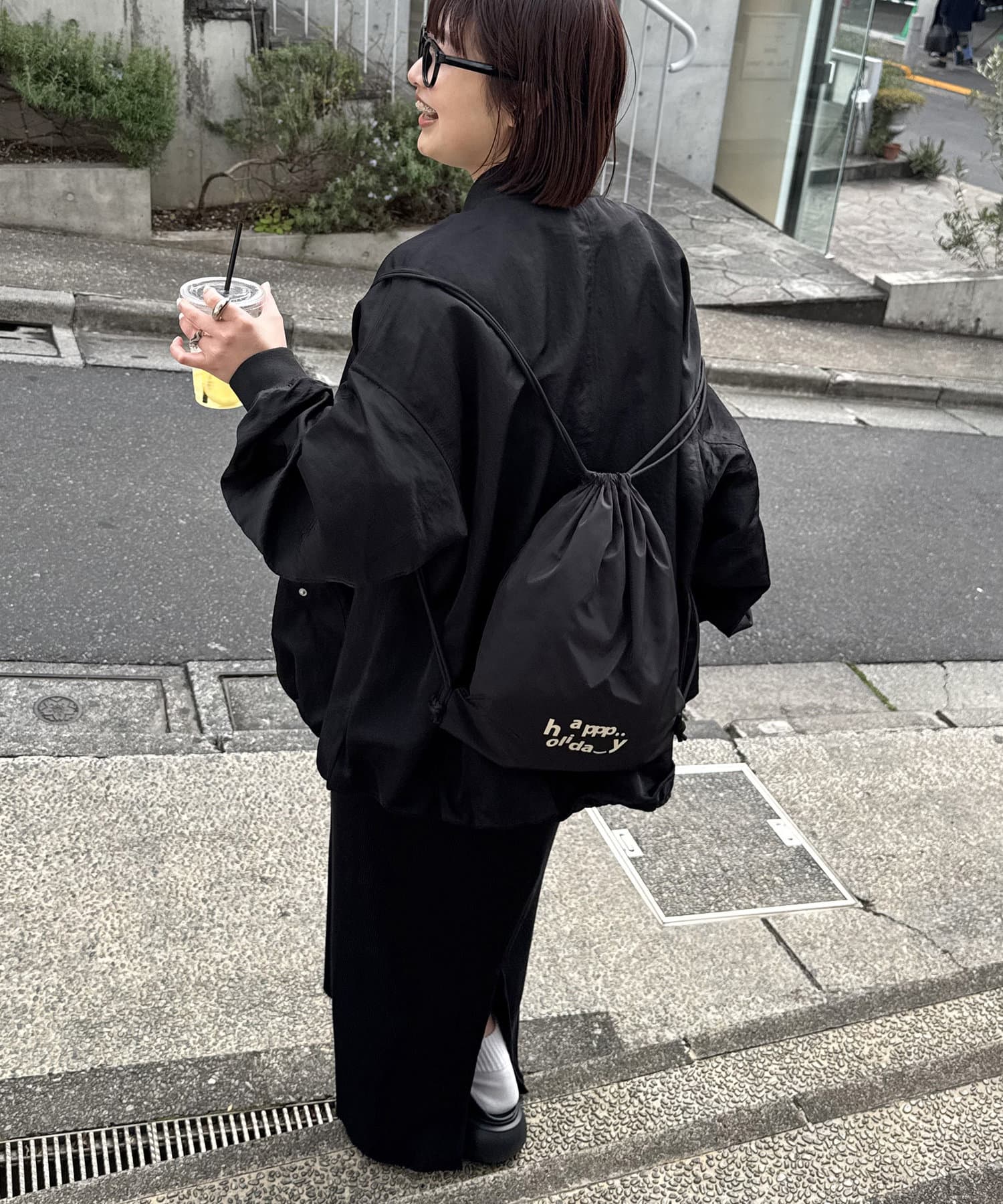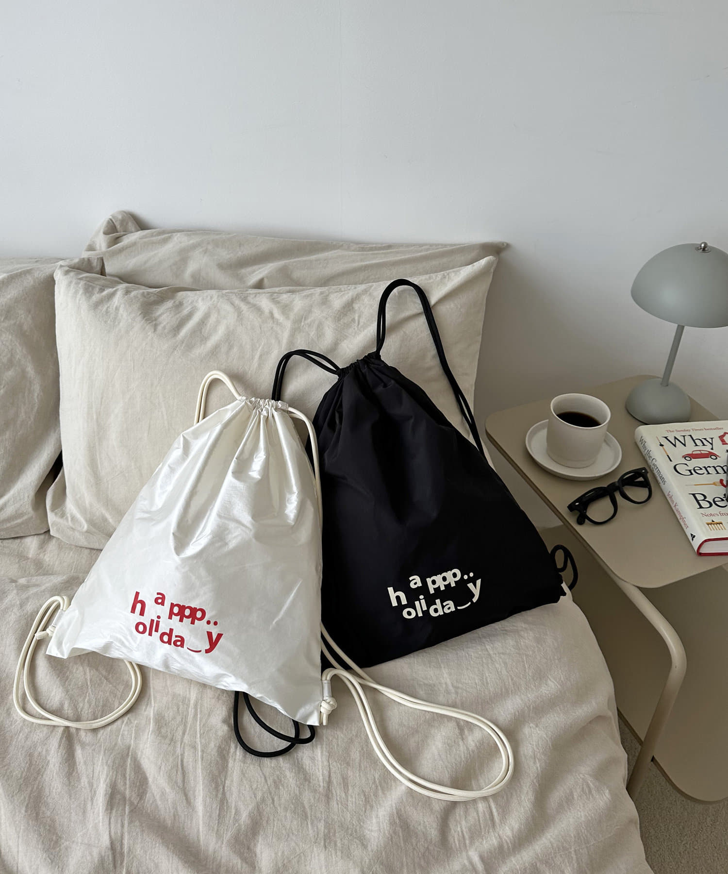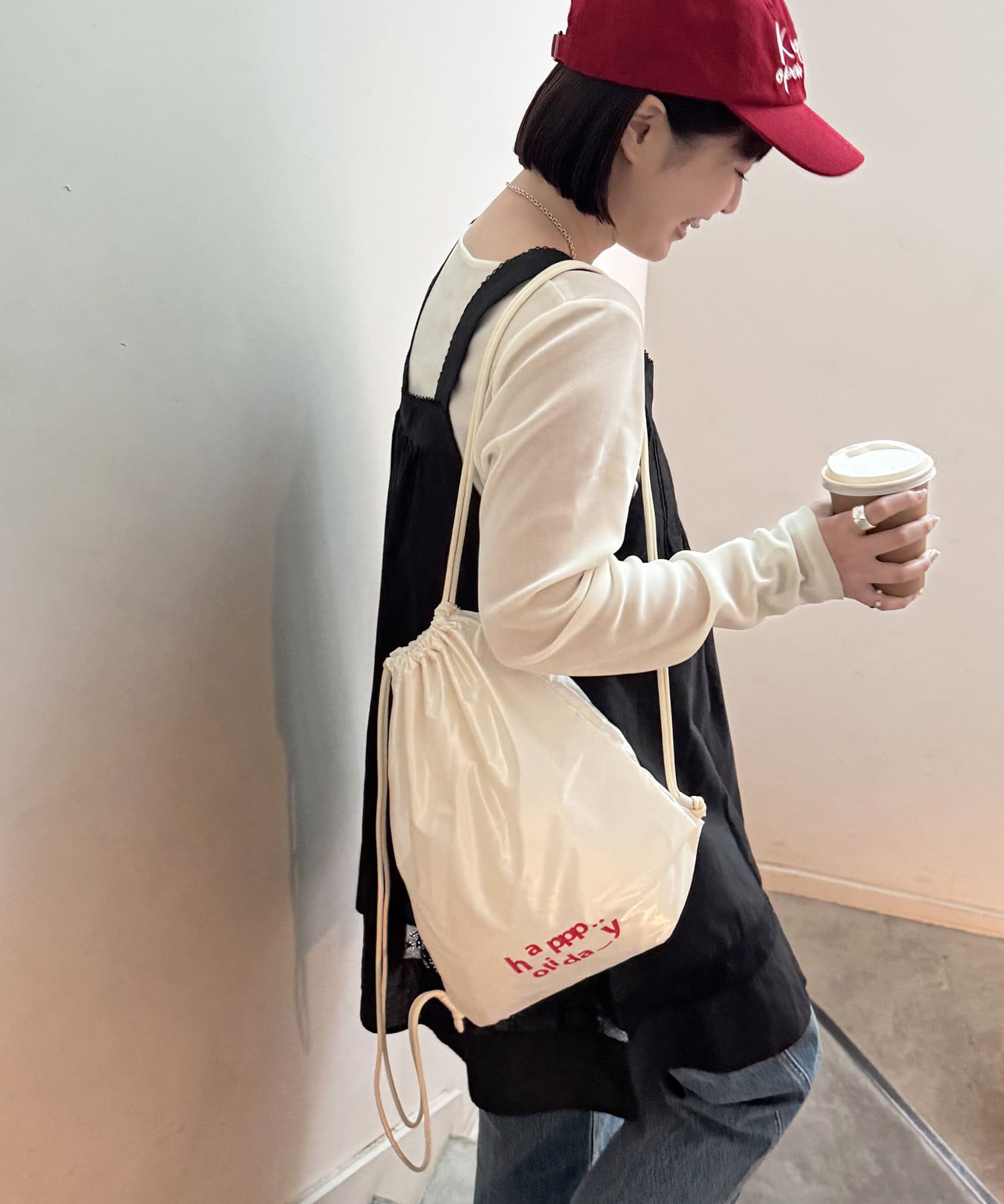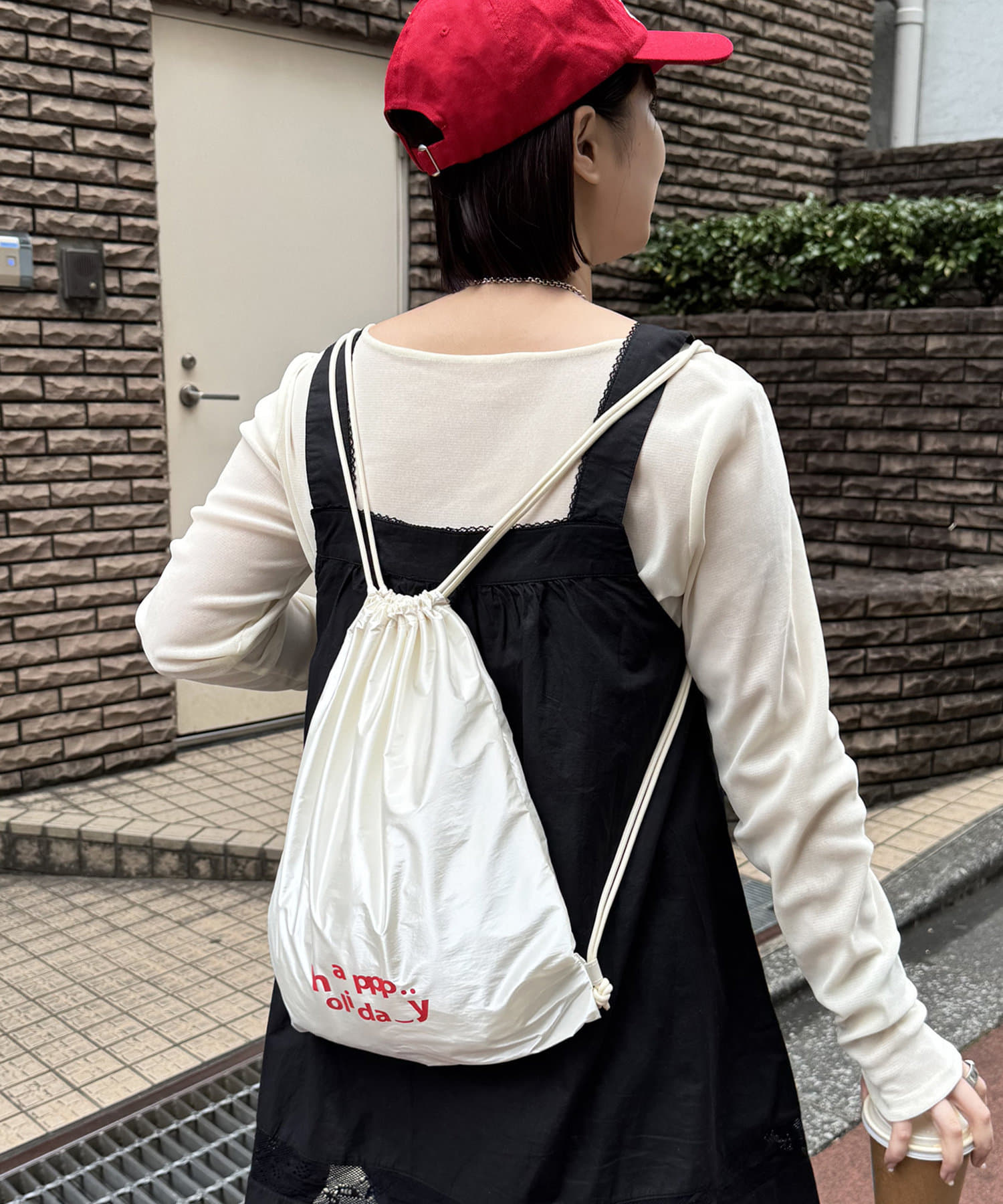 私自身、サッと気軽に持てるナップサックが欲しかったので今回企画しました!!ロゴは“happy holiday”を少しアレンジさせたもので、ニコちゃんマークを入れたり、文字の位置はバランスを考えながら自分自身で決めたこだわりです♩ロゴの意味のように、皆さんの素敵な休日のお供にしてもらえたら嬉しいです♡また、今回は生地にもこだわっているので、カラーによって素材が若干異なります。(ホワイトの方が薄く柔らかいイメージで、光沢感があります)なので、2色とも全力でオススメです◎
