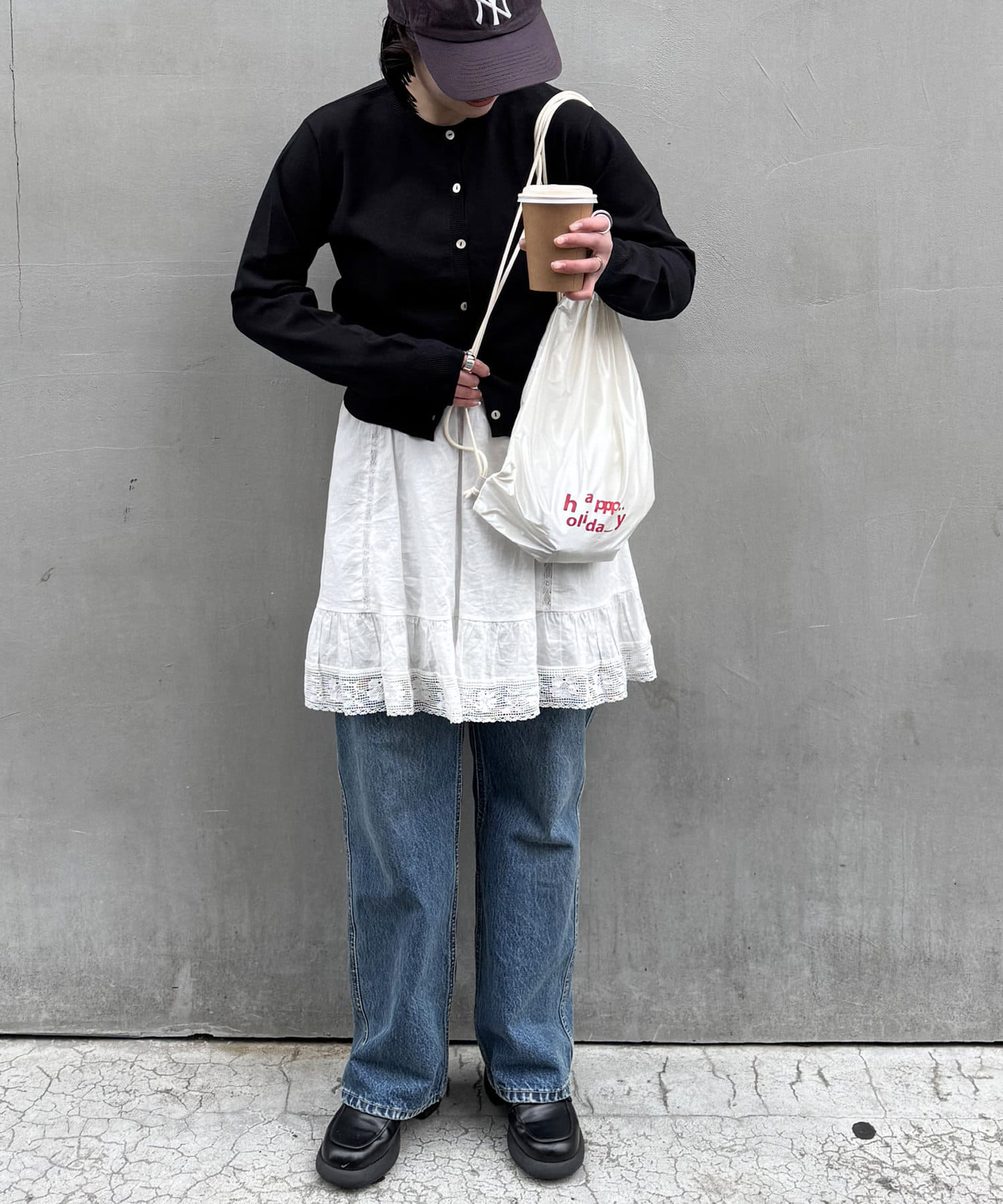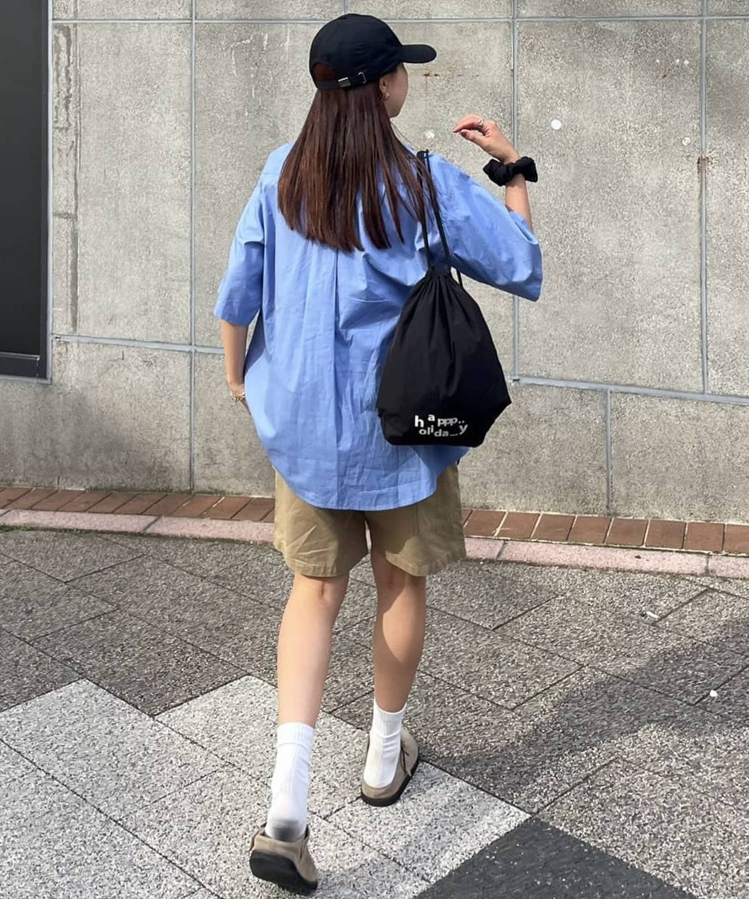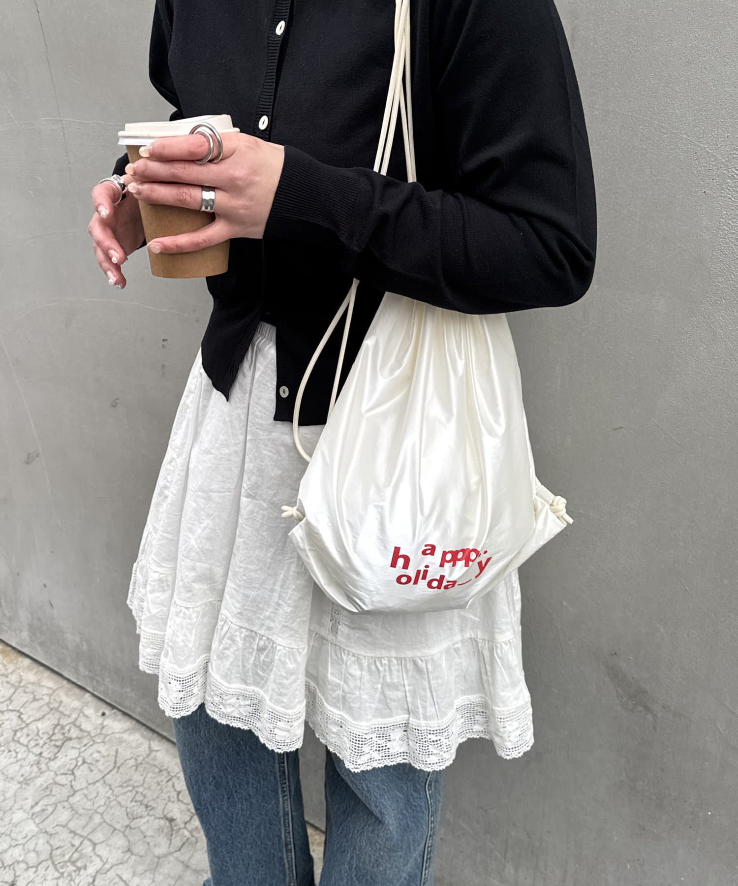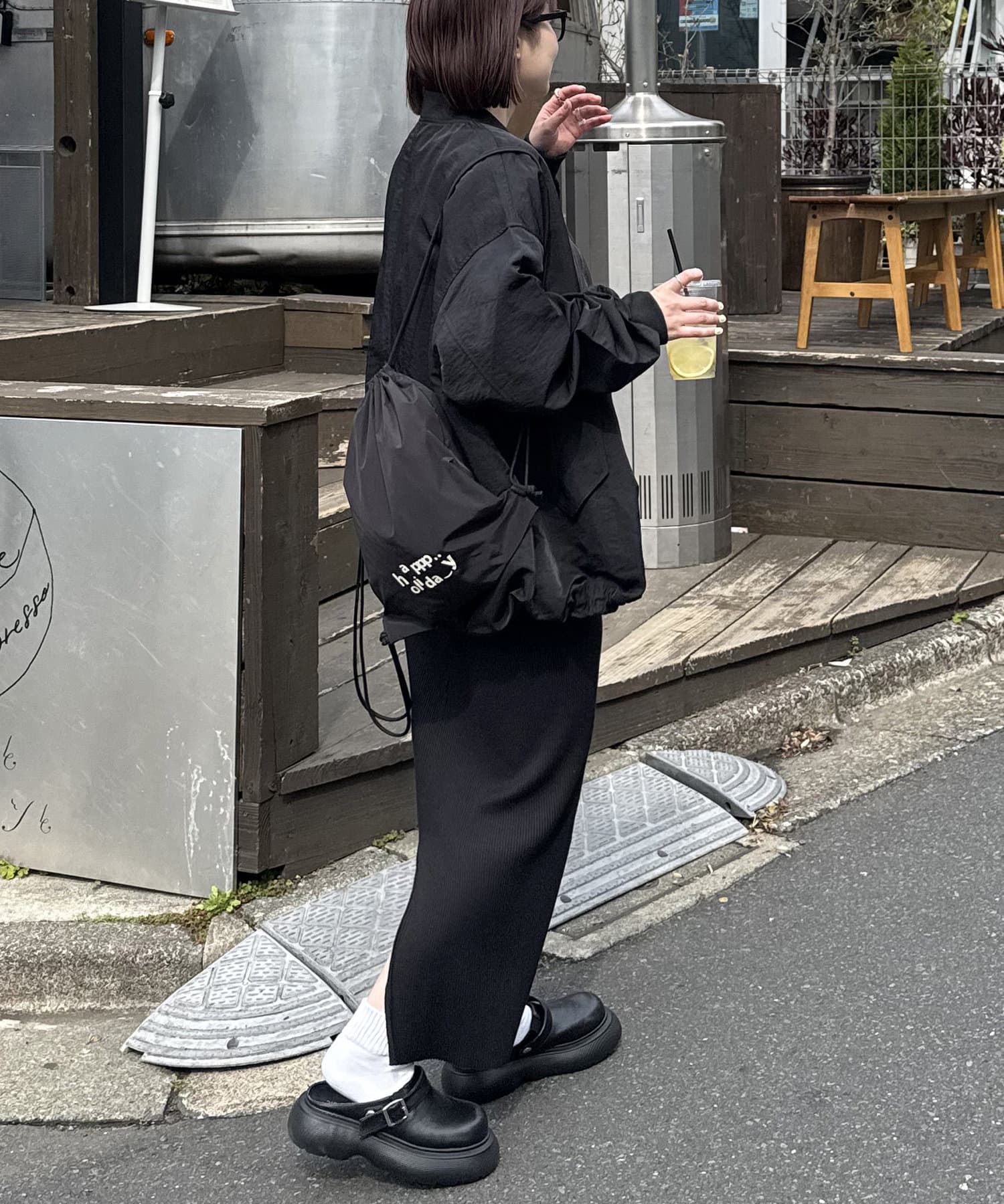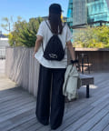 私自身、サッと気軽に持てるナップサックが欲しかったので今回企画しました!!ロゴは“happy holiday”を少しアレンジさせたもので、ニコちゃんマークを入れたり、文字の位置はバランスを考えながら自分自身で決めたこだわりです♩ロゴの意味のように、皆さんの素敵な休日のお供にしてもらえたら嬉しいです♡また、今回は生地にもこだわっているので、カラーによって素材が若干異なります。(ホワイトの方が薄く柔らかいイメージで、光沢感があります)なので、2色とも全力でオススメです◎
