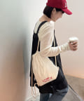オリジナルロゴが入ったシンプルなデザインかつ、オールシーズン使える素材のアイテムなので、いつでも、誰でも持てるナップサックです。コンパクトなシルエットですが、必要最低限の荷物は問題なく入ります◎また、80gと超軽量で、コンパクトに折りたたむことも可能なので旅行時にもピッタリです♪カラーは定番のブラックと、大人っぽい光沢感のあるホワイトの2色展開です。
