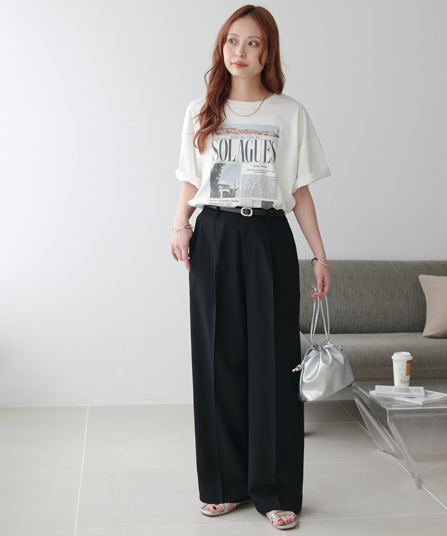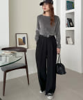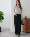 ゆったりとしたワイドストレートラインが、縦のラインを強調して脚長効果も◎