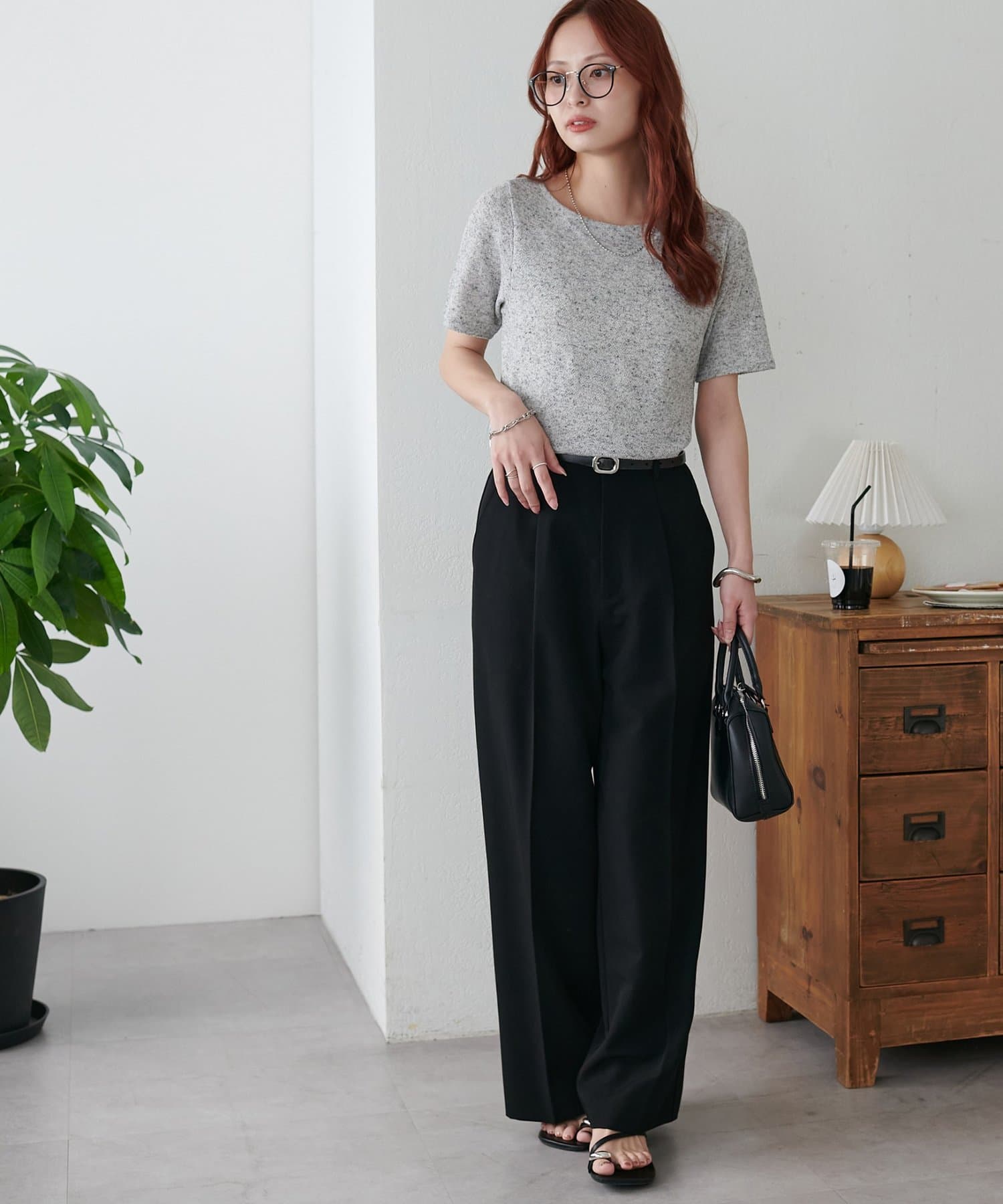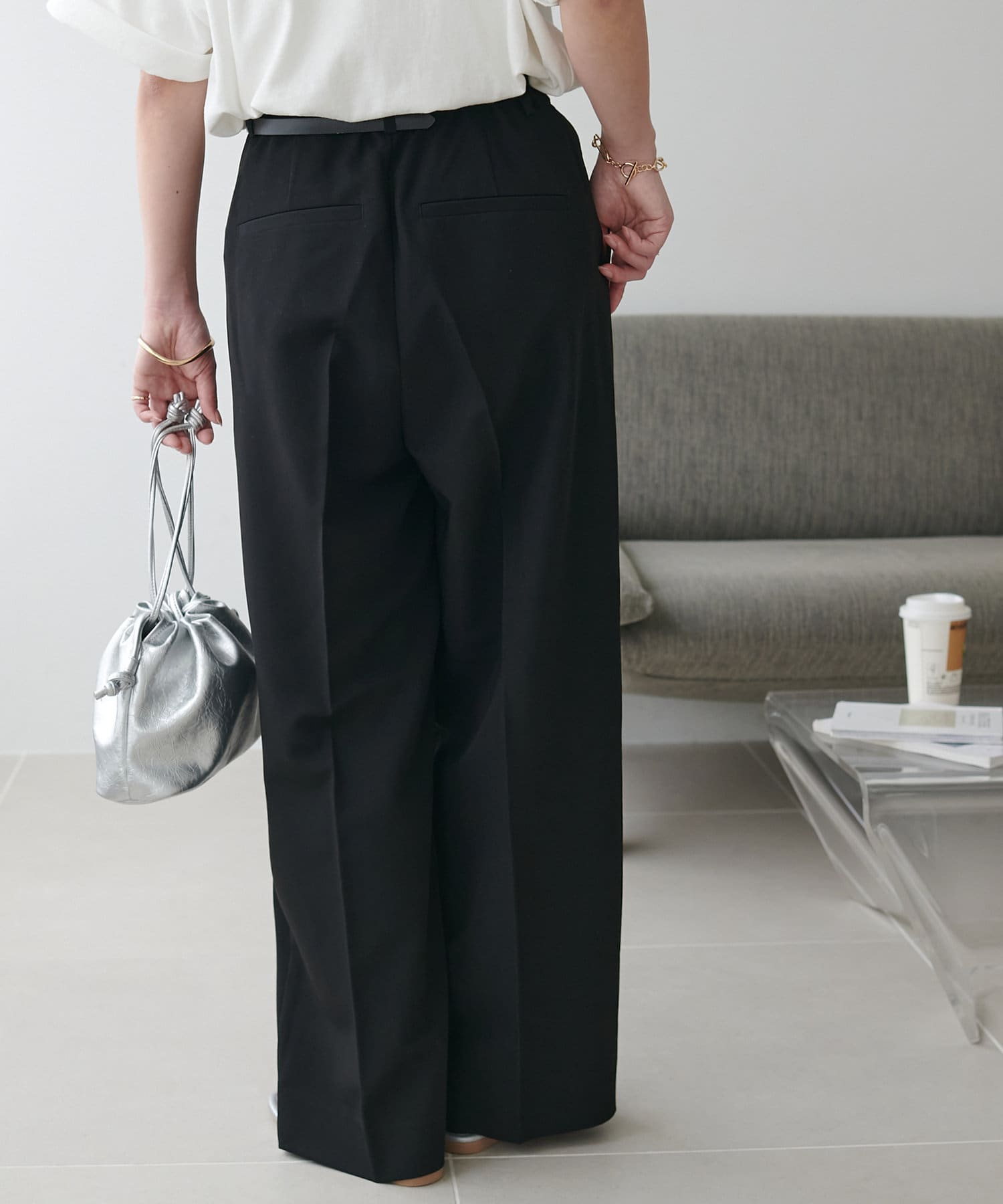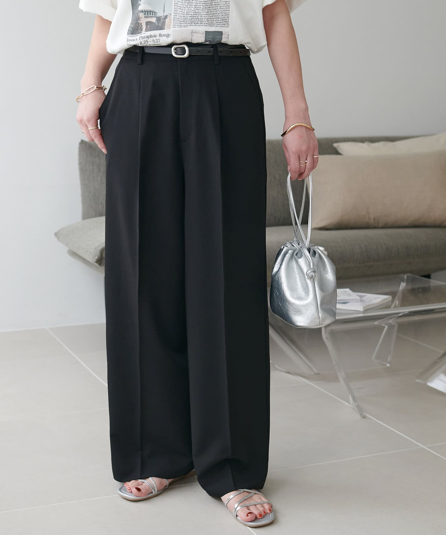 シルエットの美しさが際立つ、タック入りのストレートパンツ。