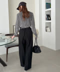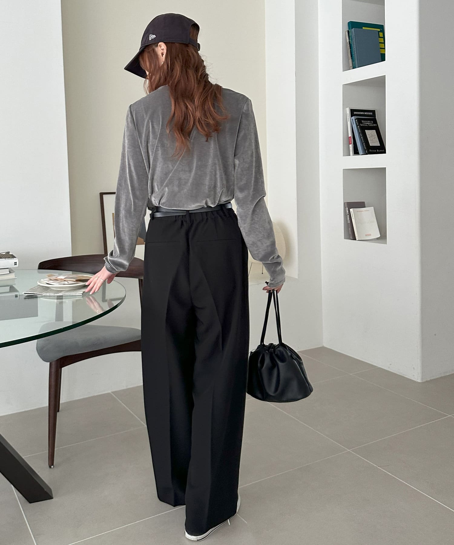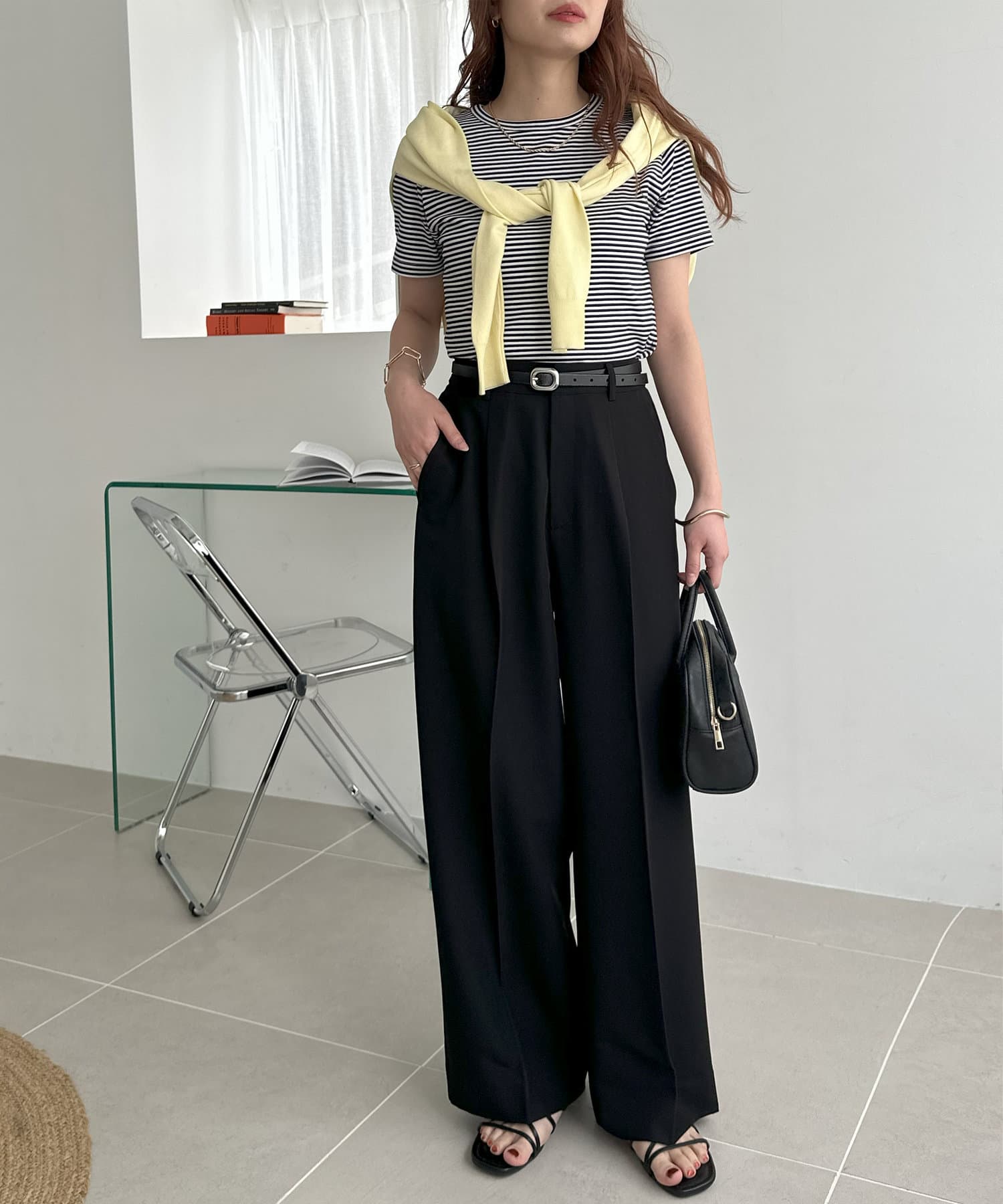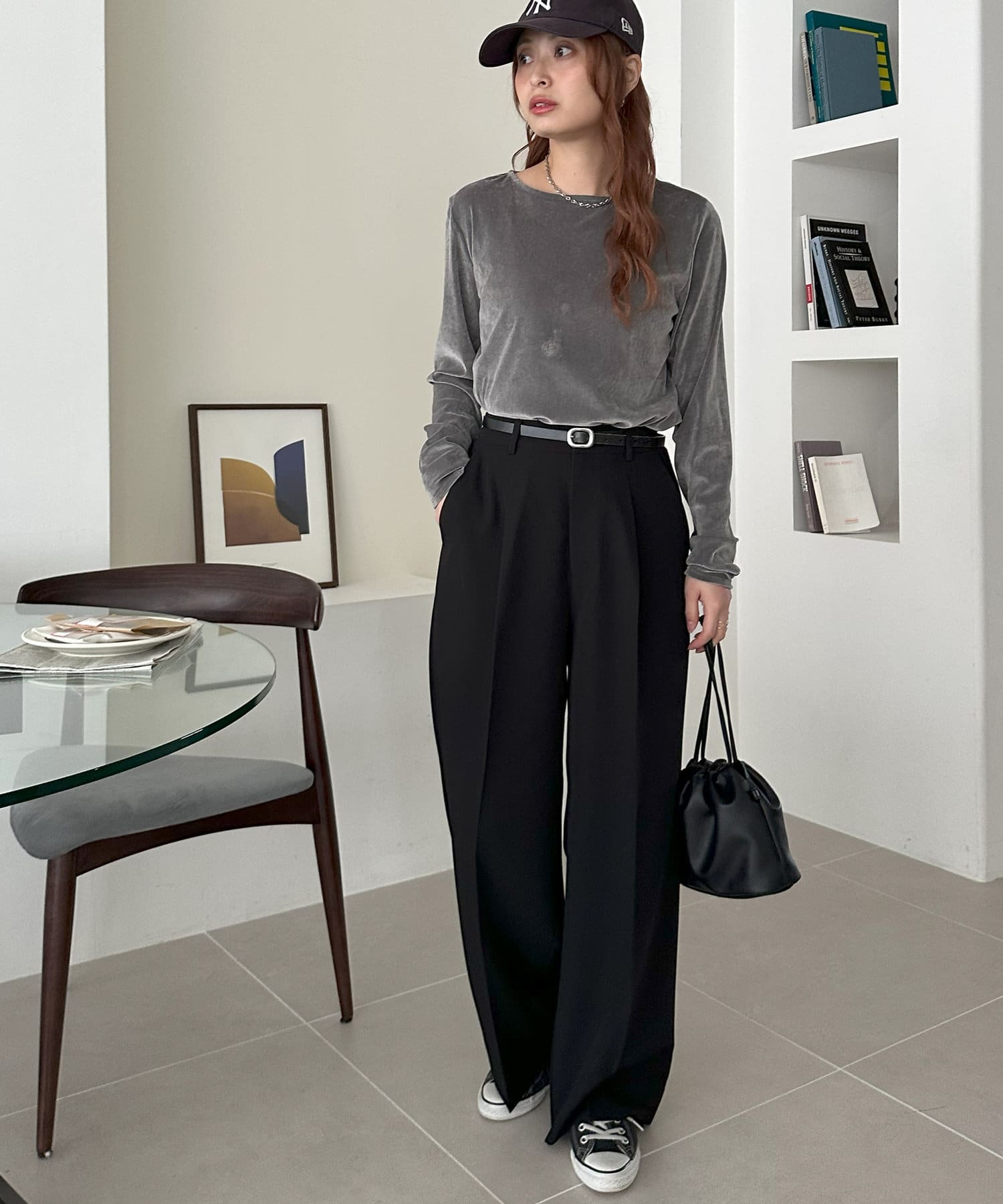 シルエットの美しさが際立つ、タック入りのストレートパンツ。