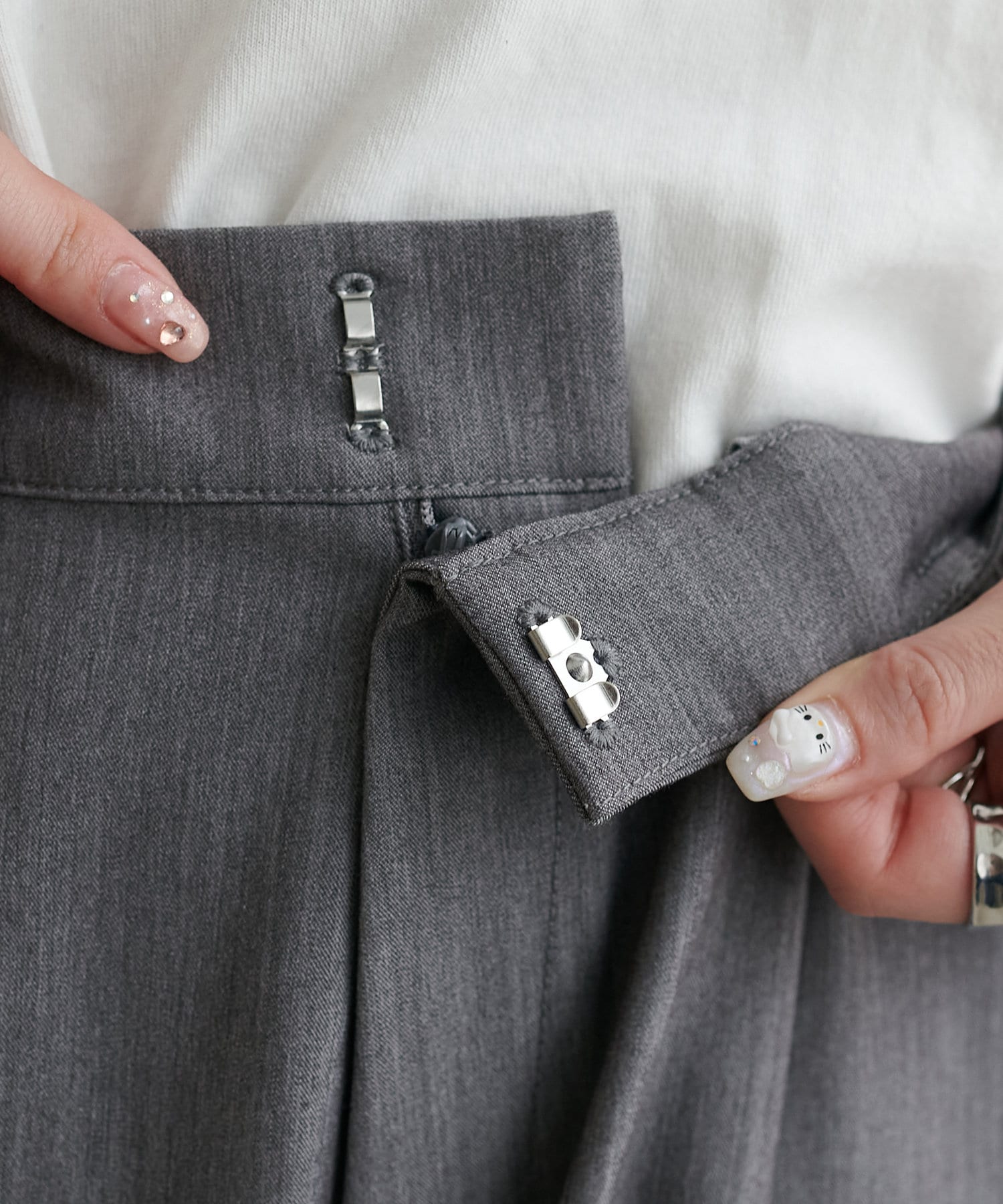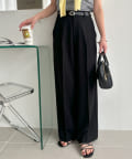 タックを施すことで立体感を生み出し、気になる腰まわりを自然にカバー。