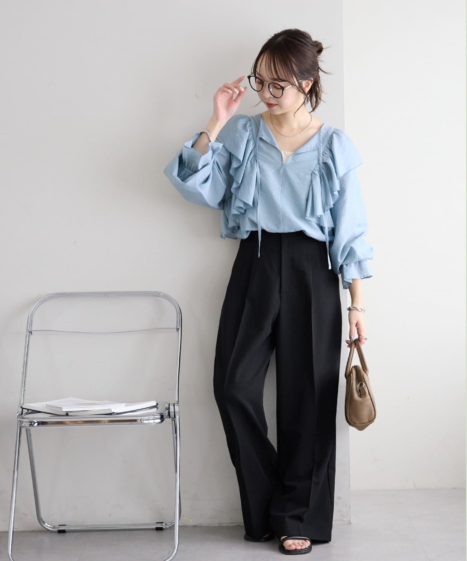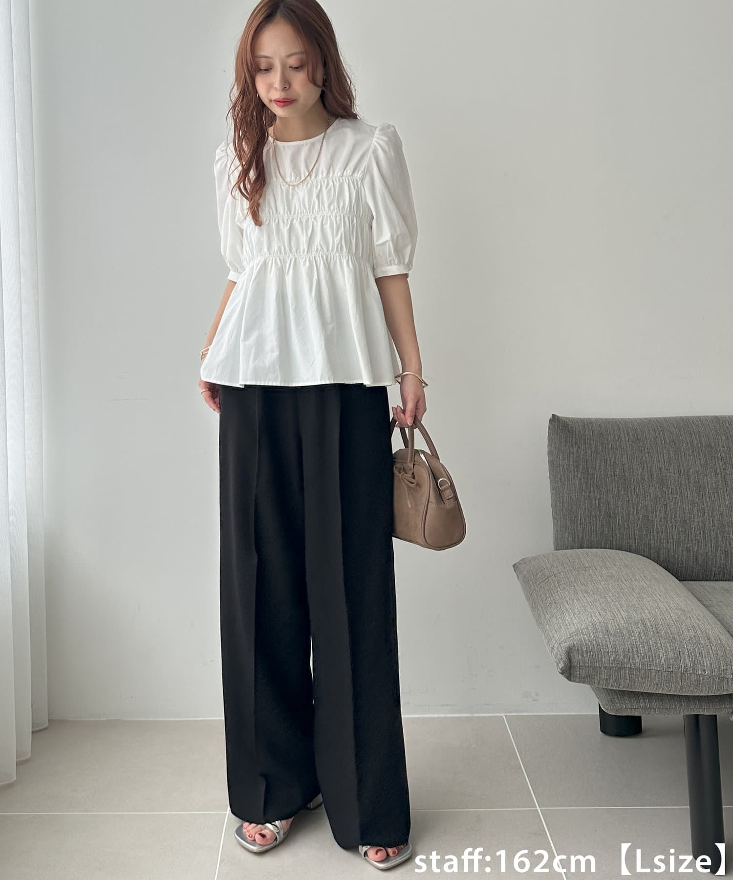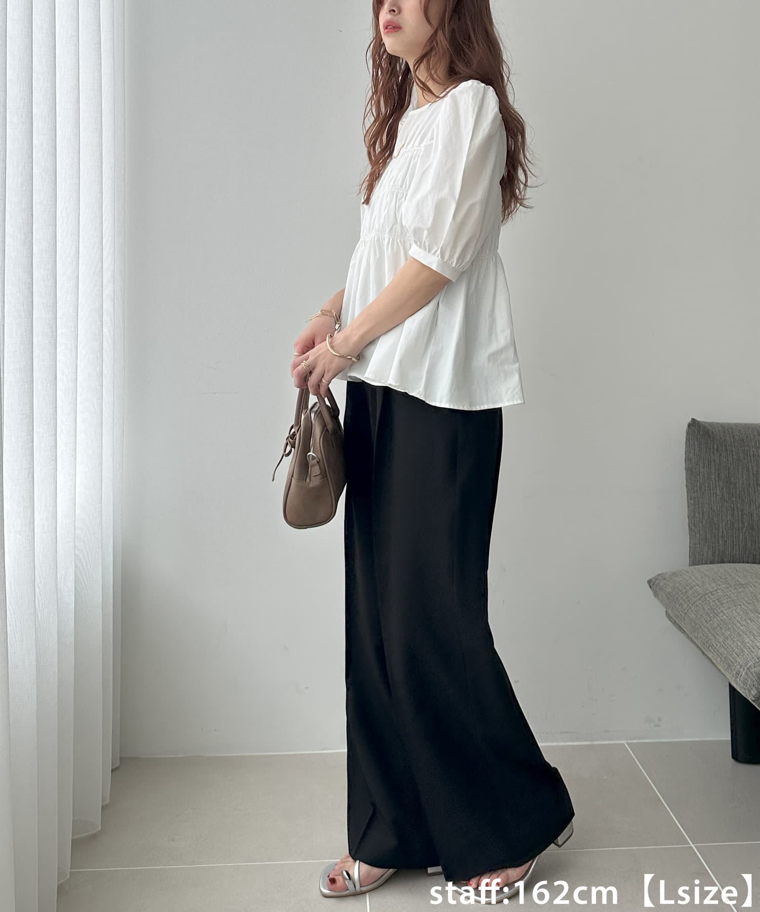 落ち感のある素材で、シワになりにくいのも嬉しいポイントです◎