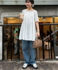 163cmスタッフ:甘さ控えめなデザインで大人も着やすいチュニックです!細身のパンツと合わせるとバランス◎