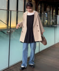 低身長の方はフレアパンツと合わせることで、スッキリとした着こなしが完成〇