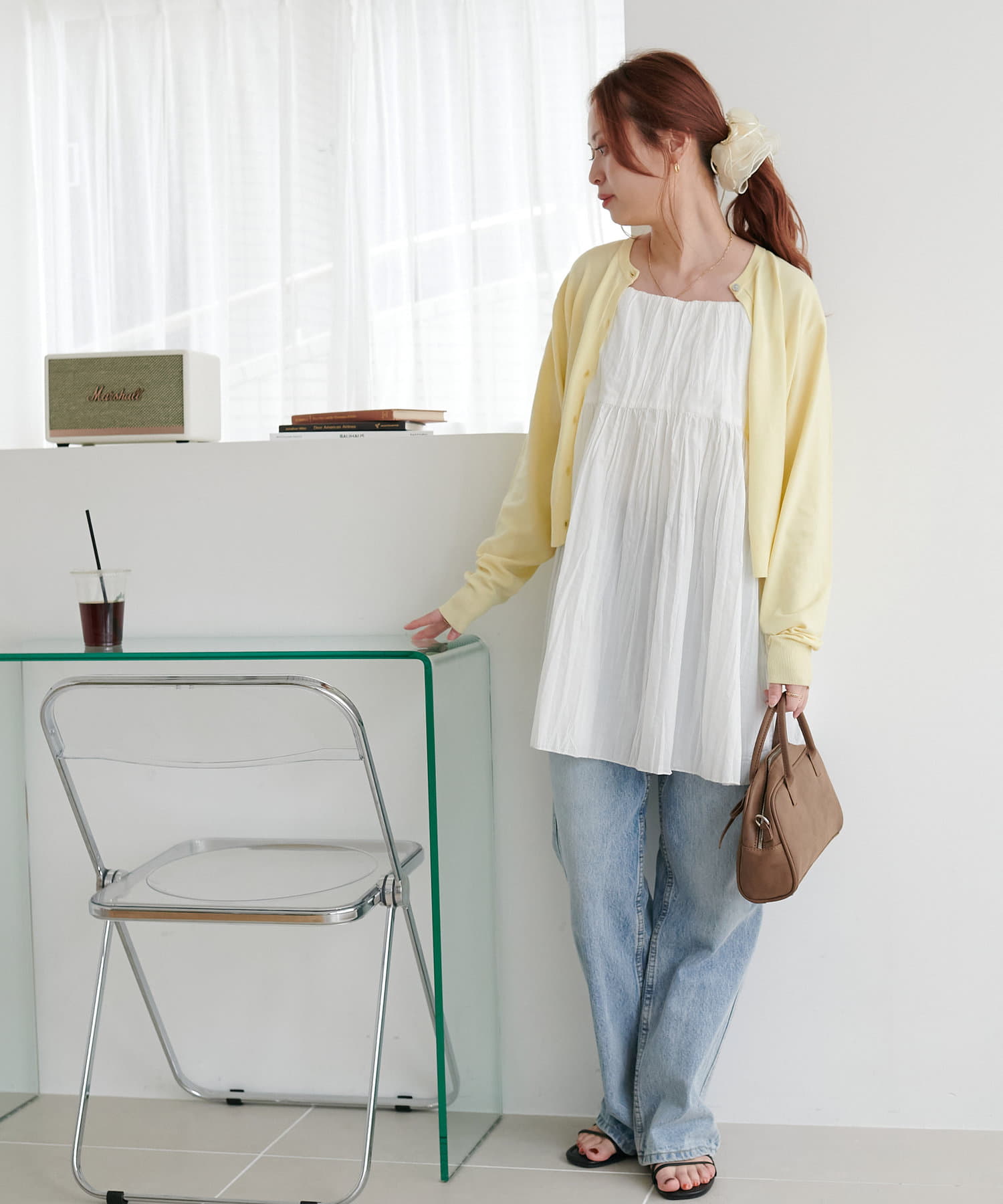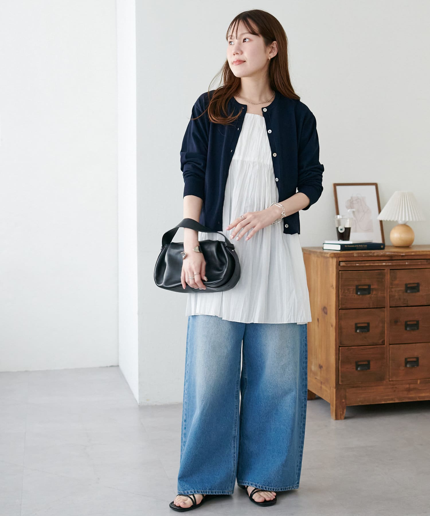 インナーはロンTから半袖、キャミソールまで合わせられるので、季節問わず楽しめます。