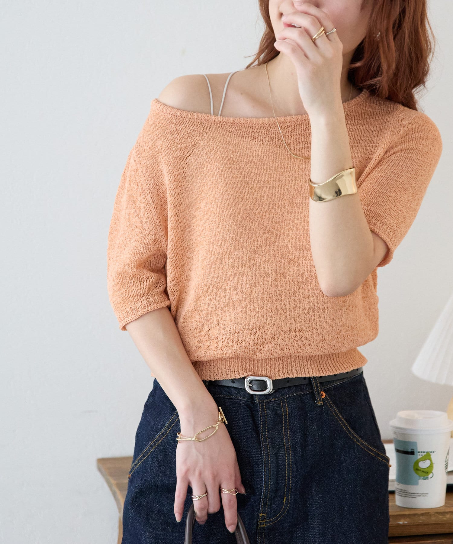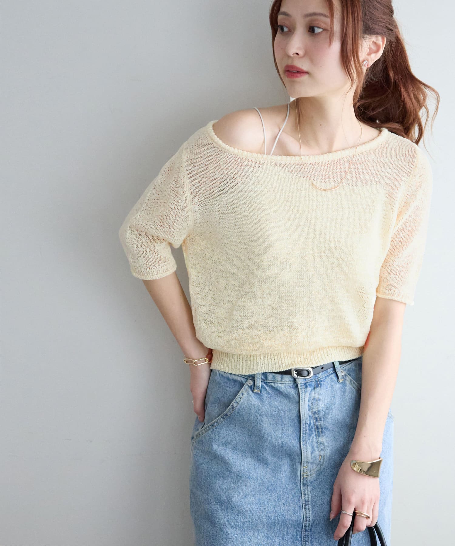 スラブワンショル5分袖