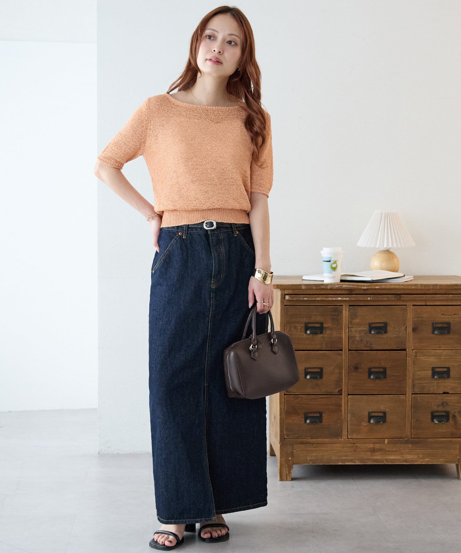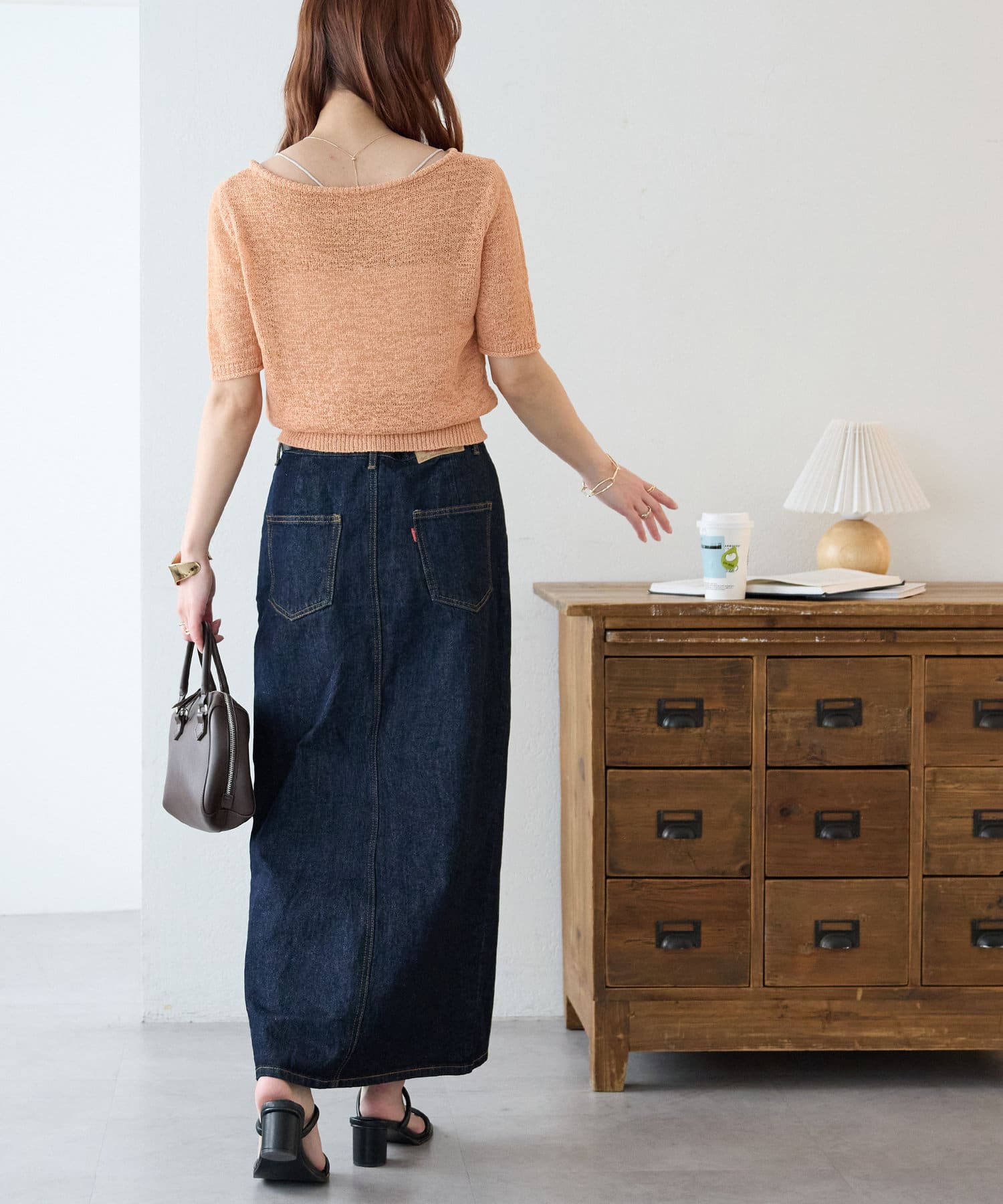 スカートと合わせれば、フェミニンな雰囲気も楽しめます。