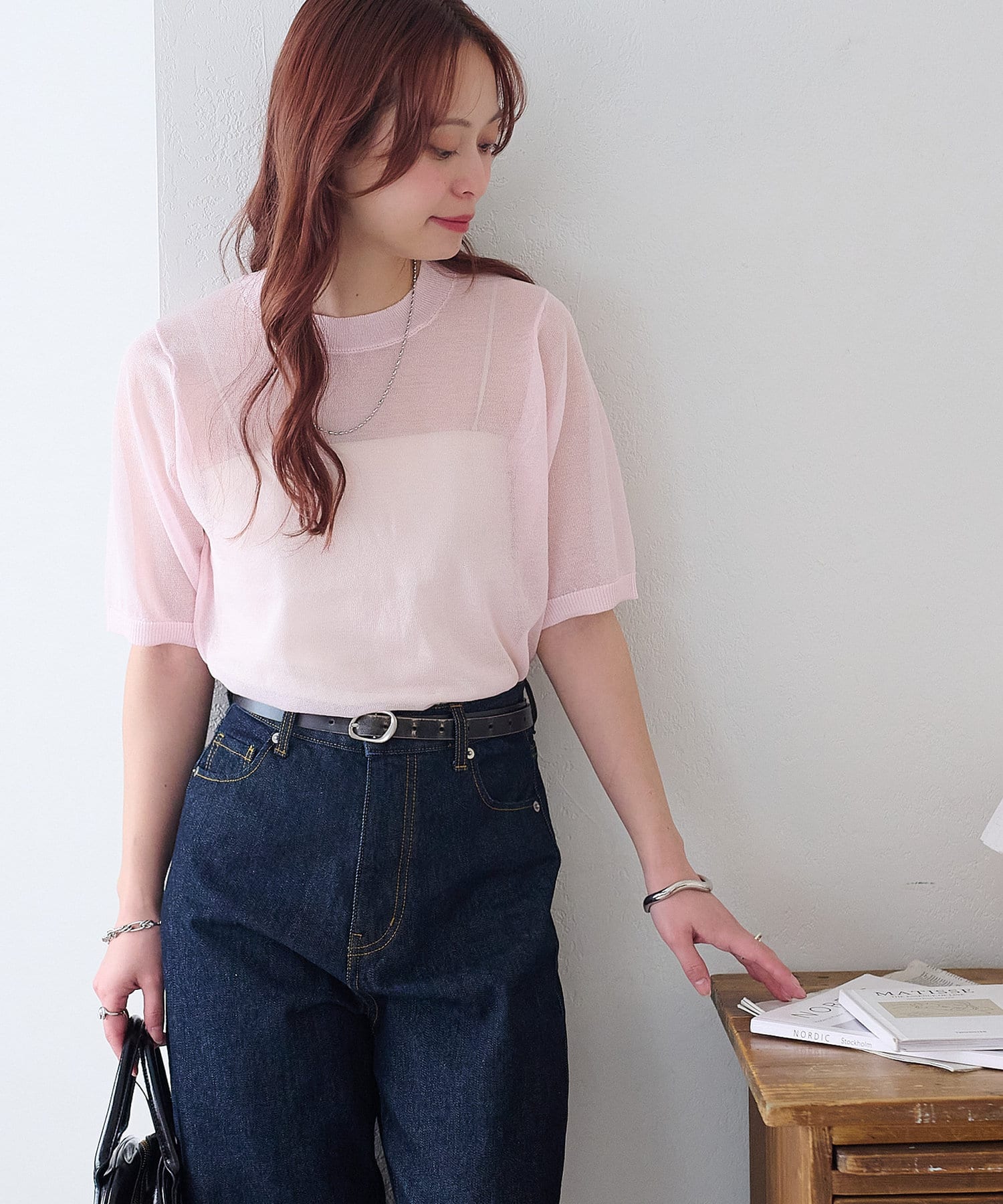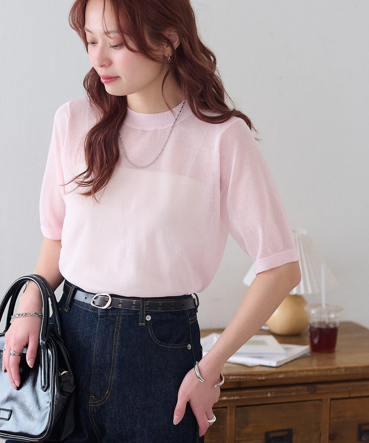 透け感のあるシアー素材を活かした、上品で抜け感のある半袖プルオーバー。