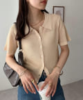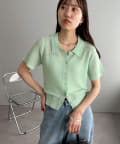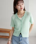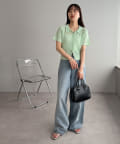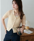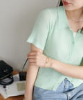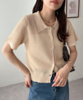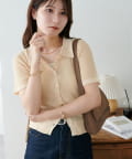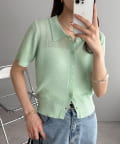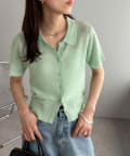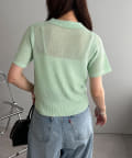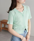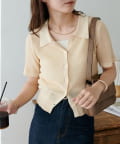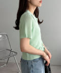 シアー感が涼しげな、半袖ニットシャツトップス