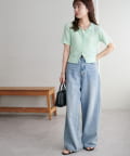 149cmスタッフ:肌離れがよく、風通しのいいニット素材でとても軽やかな着心地です。透け感がありますが、上品さを損なわず、インナー合わせで調整できるのが嬉しいポイント◎