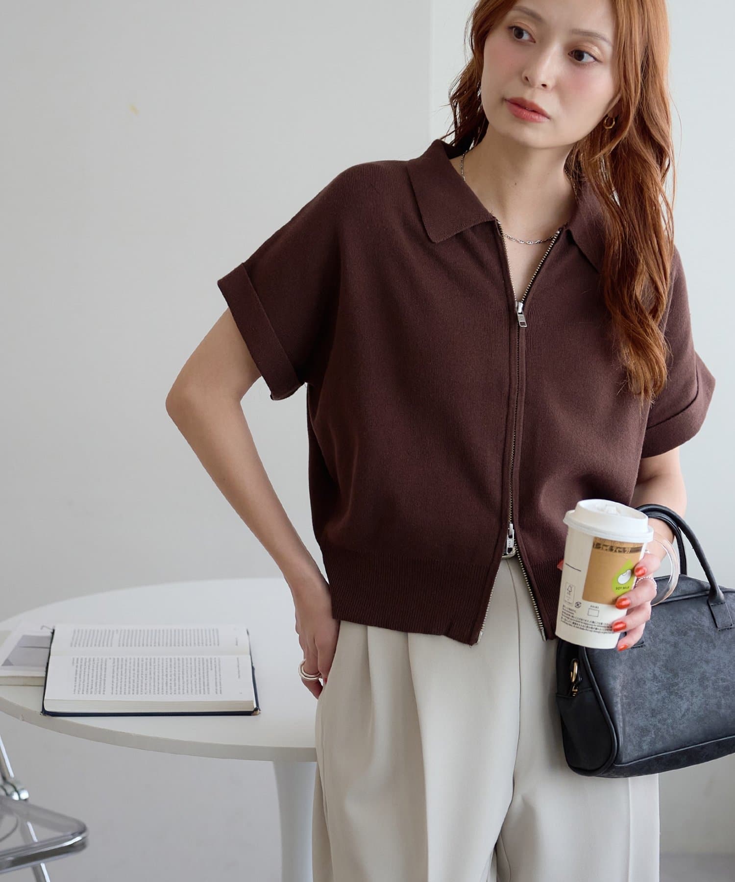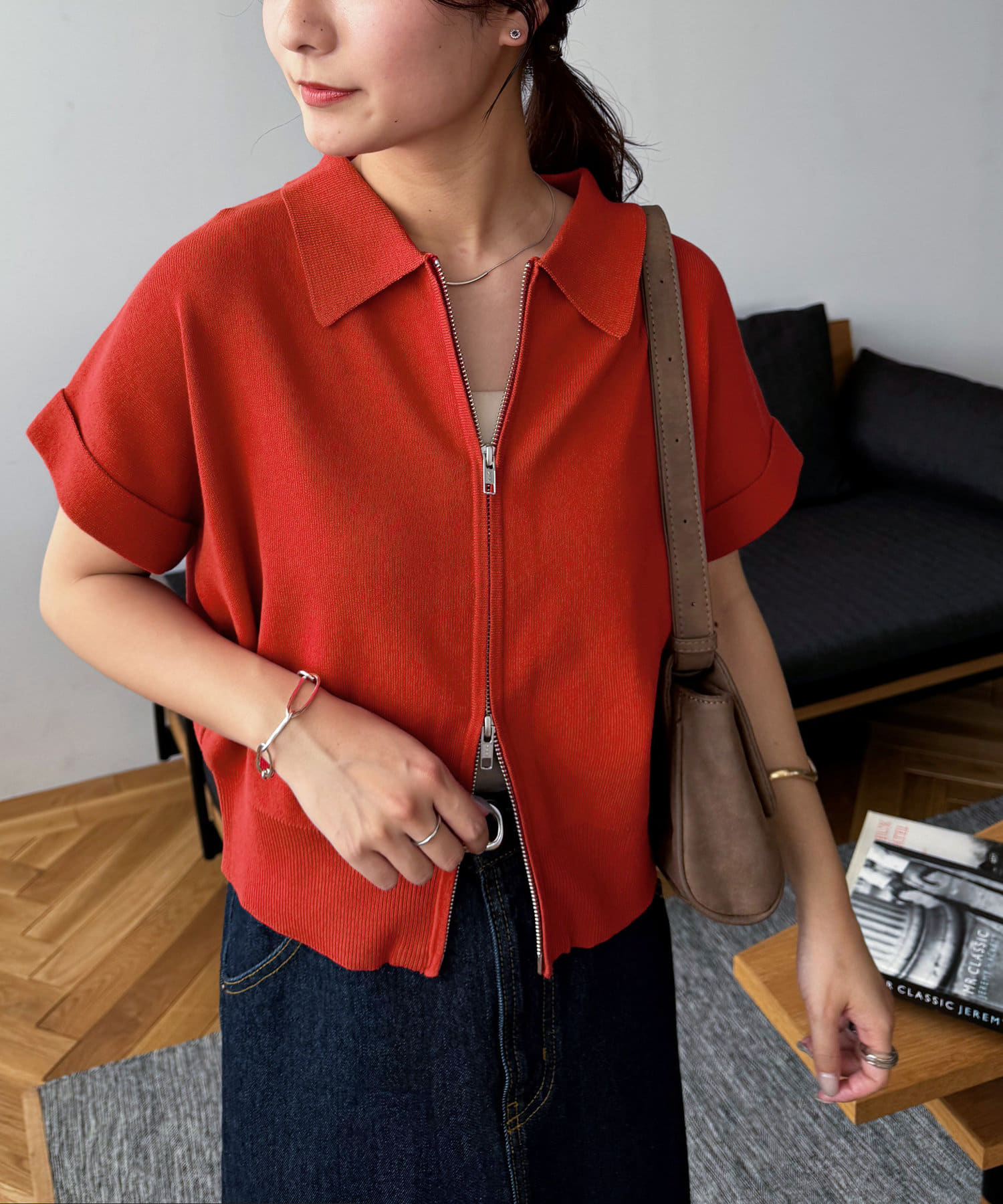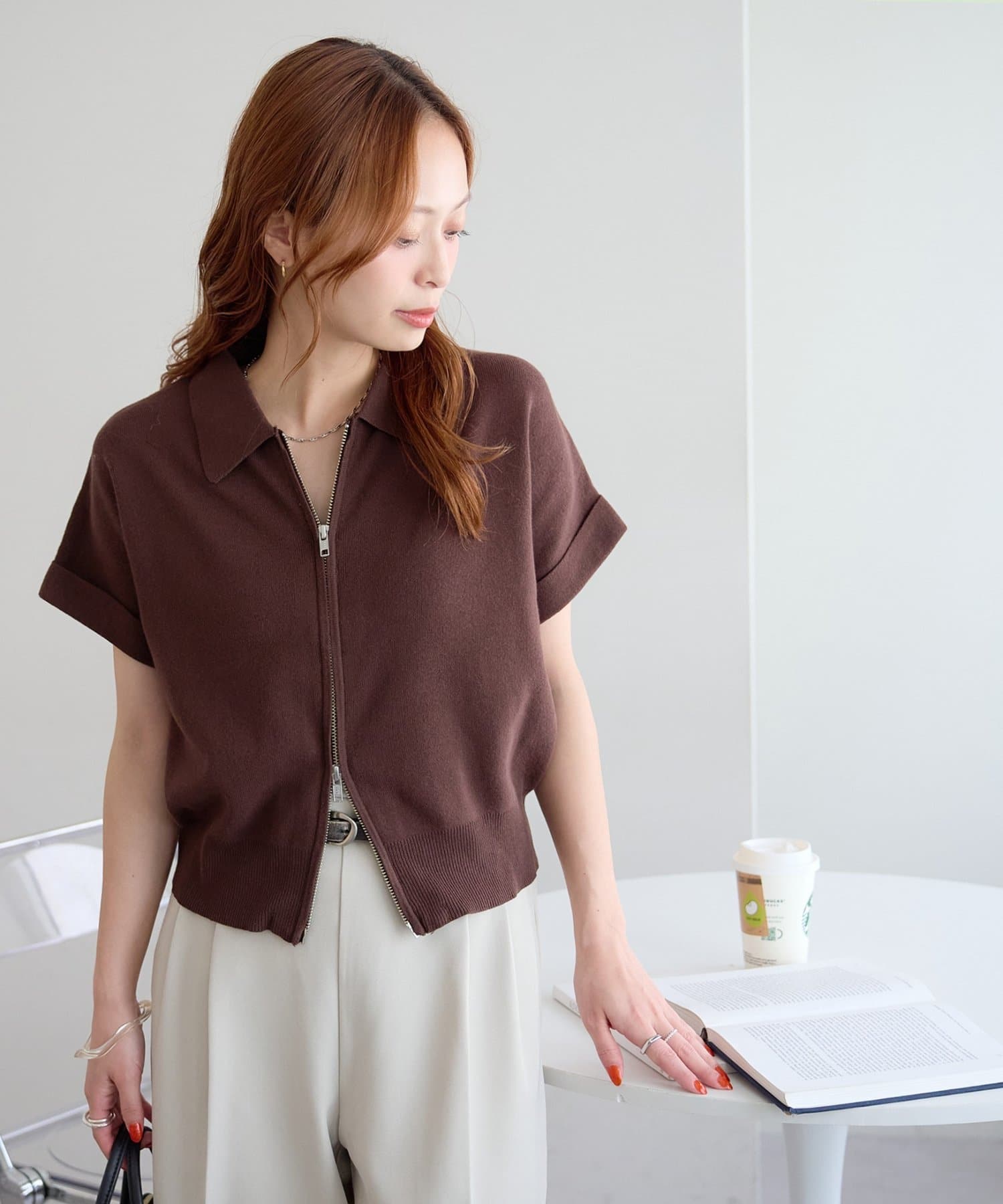 【着回し動画あり】衿付きWジップ半袖カーディガン