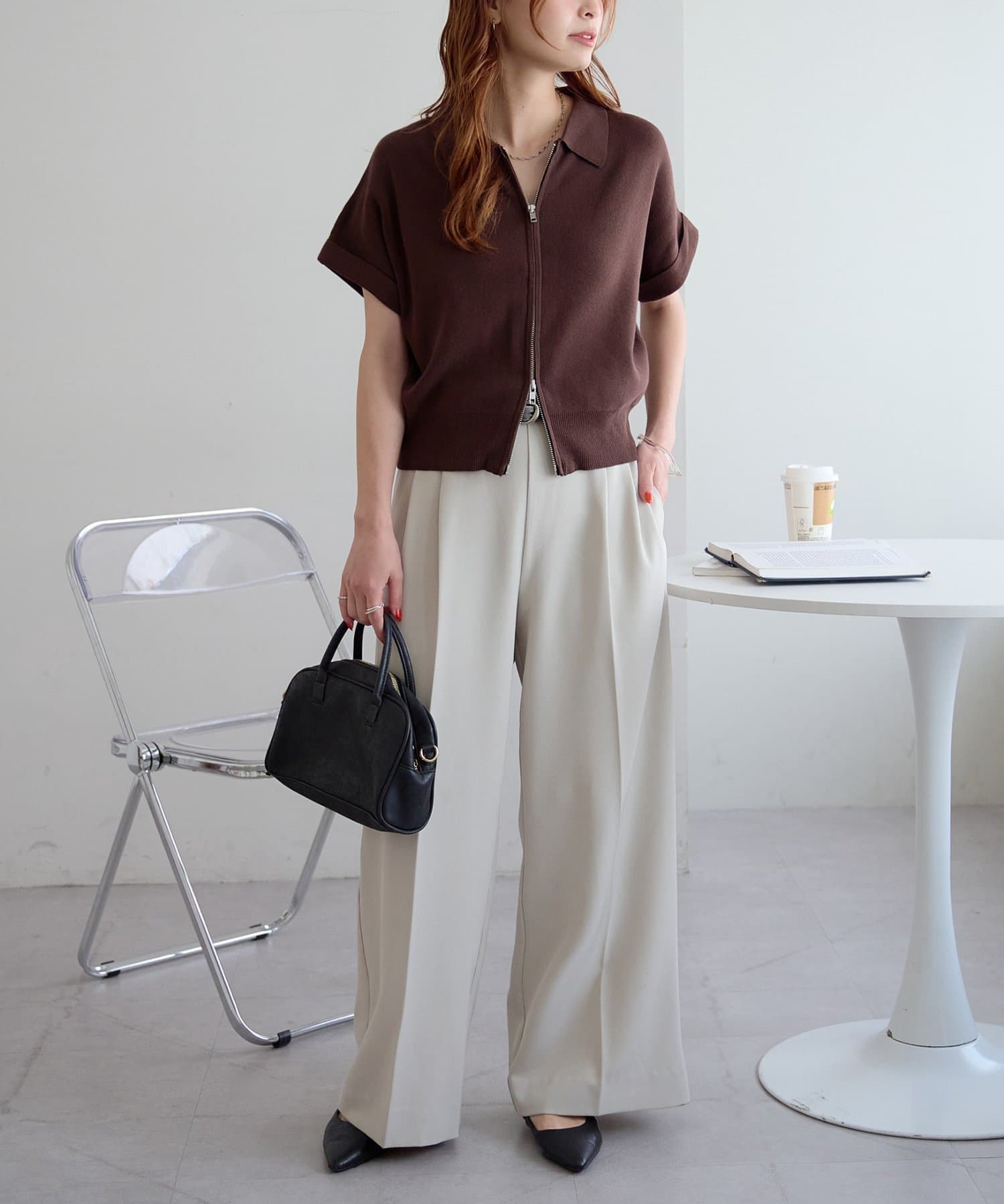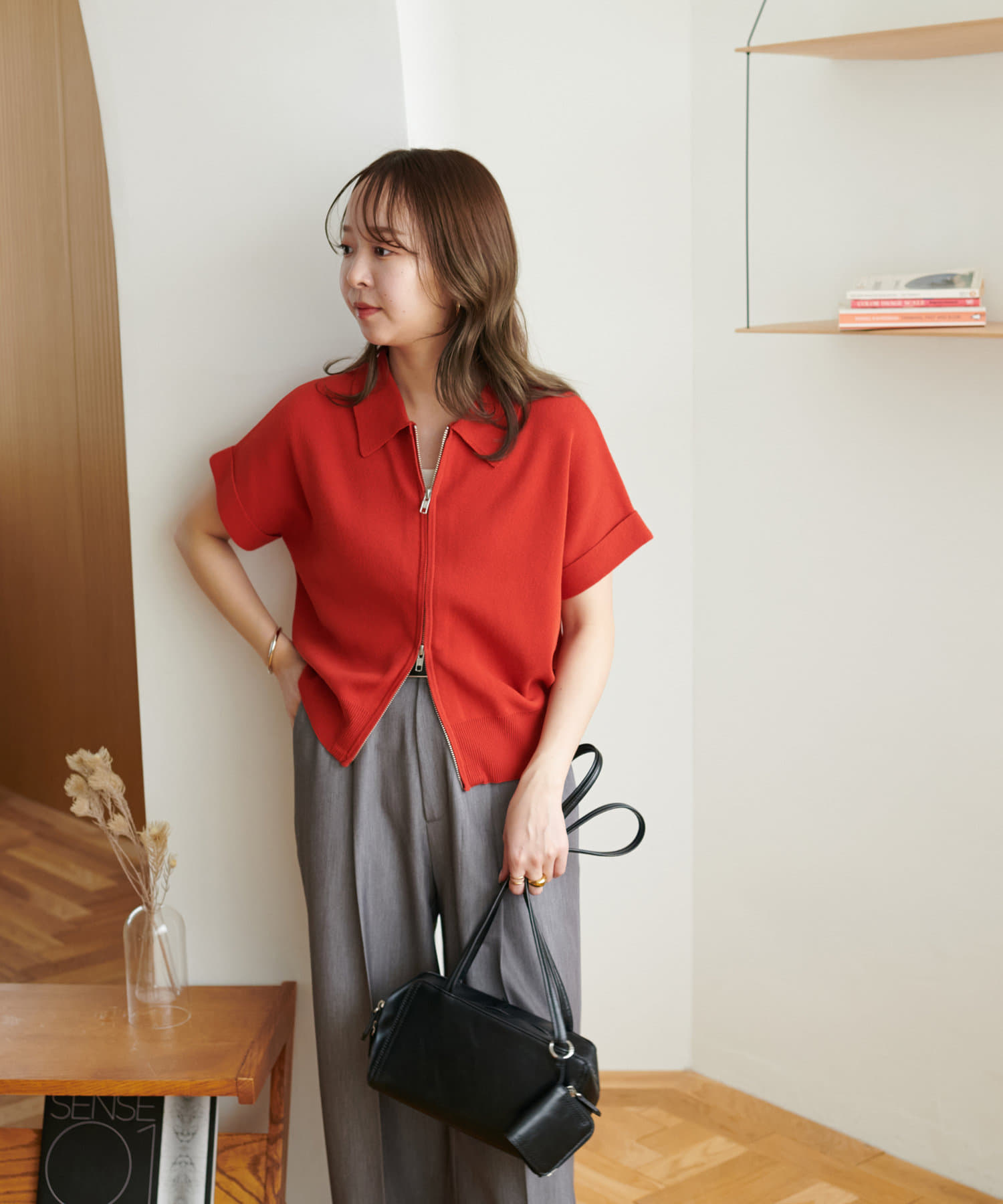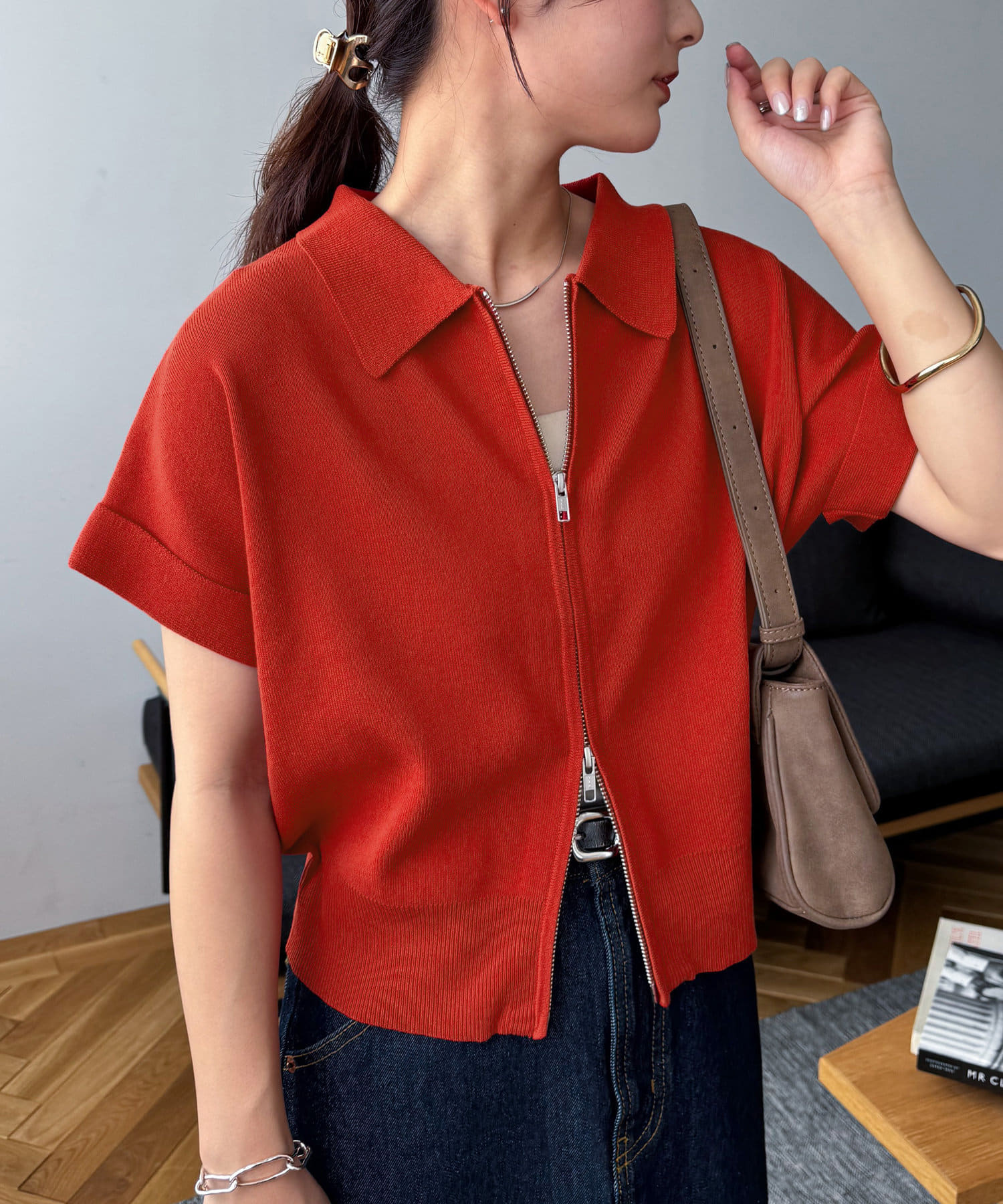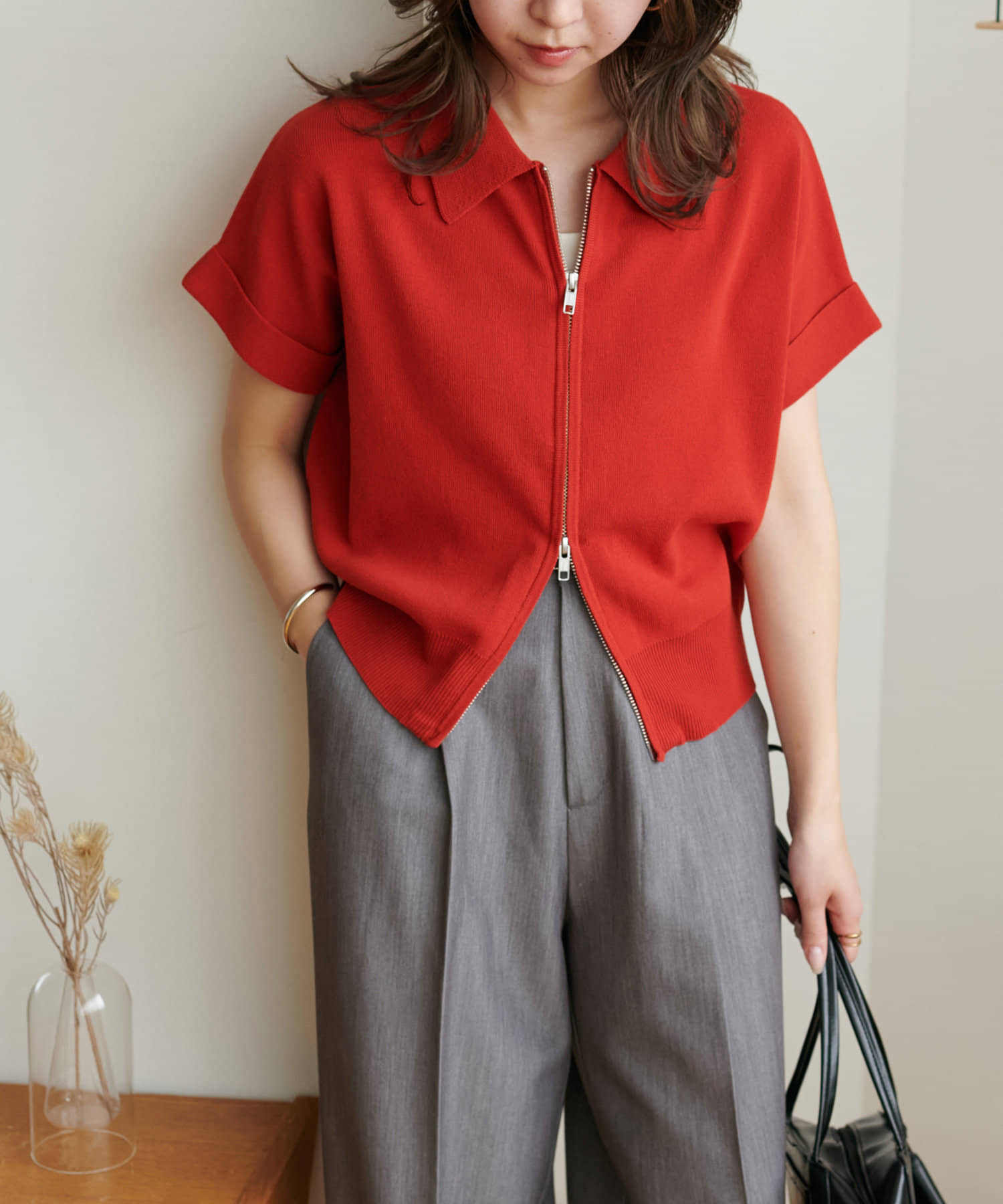【着回し動画あり】衿付きWジップ半袖カーディガン