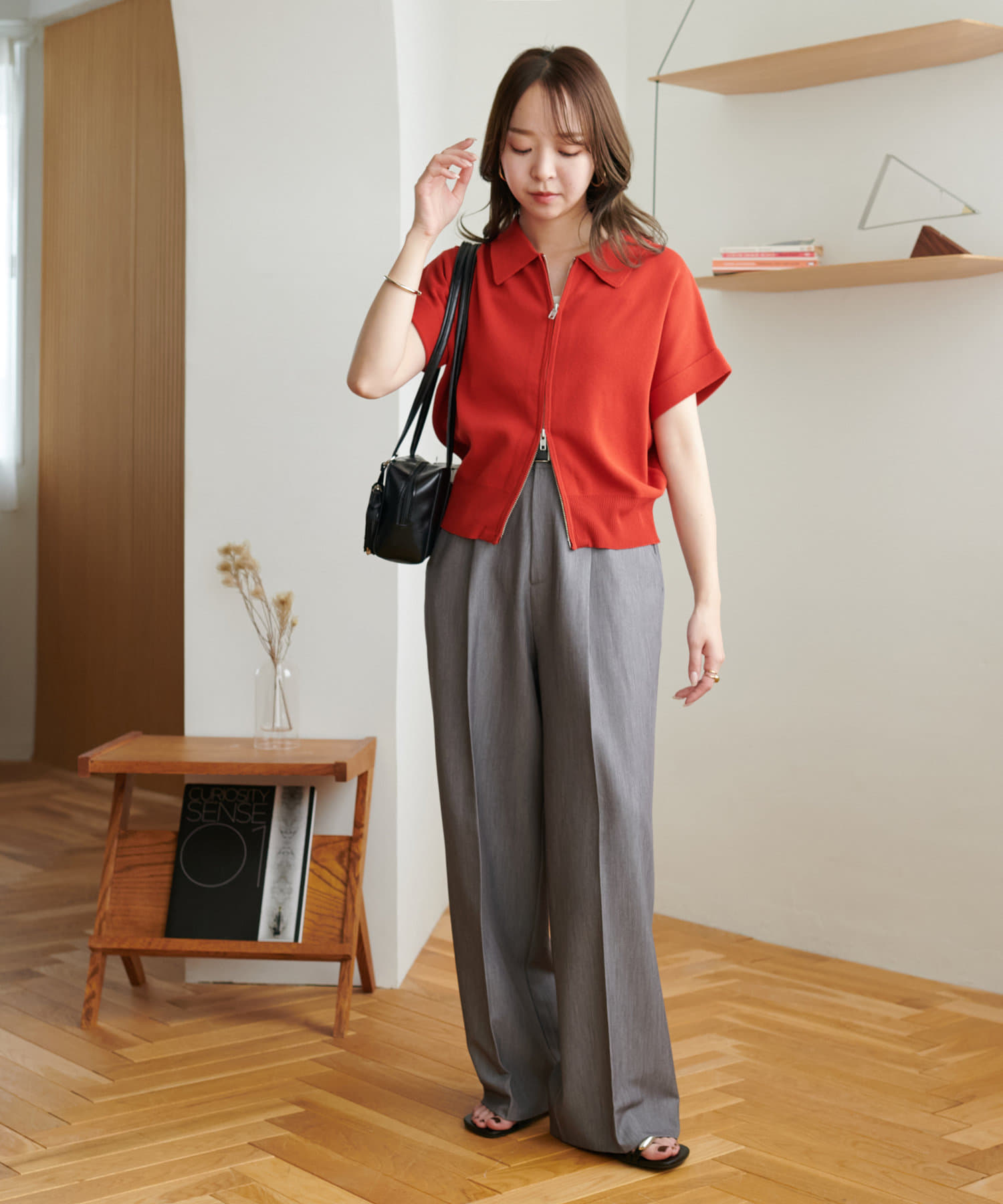 バランスが取りやすいWジップカーディガンなので、ストレートパンツやナロースカートからボリューム感のあるワイドパンツ、フレアスカートなど幅広いシルエットの