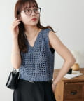 透かし編みなので重たくならず、涼しげな印象に。カップ付きキャミやタンクと合わせると、すっきり着られておすすめです!