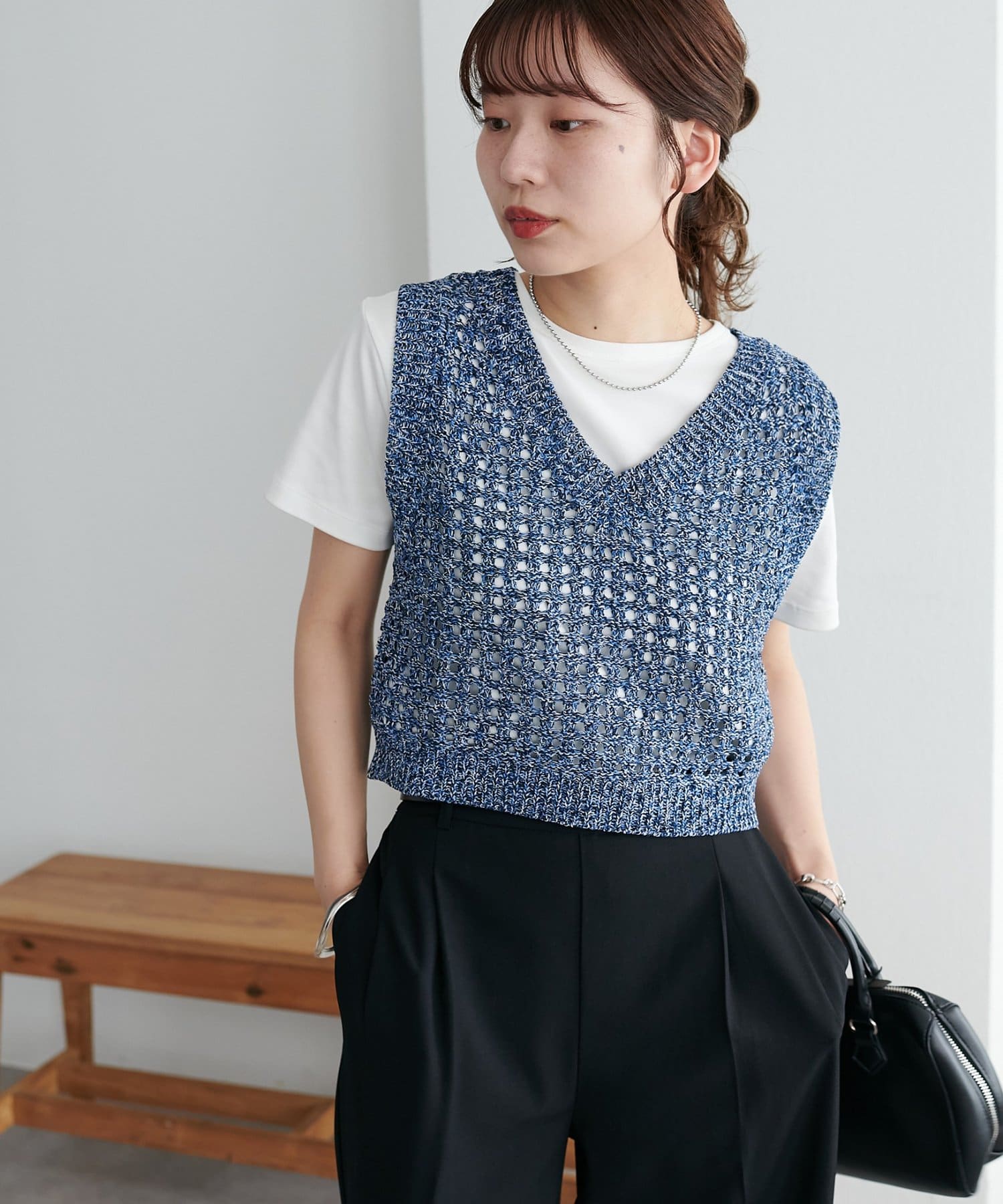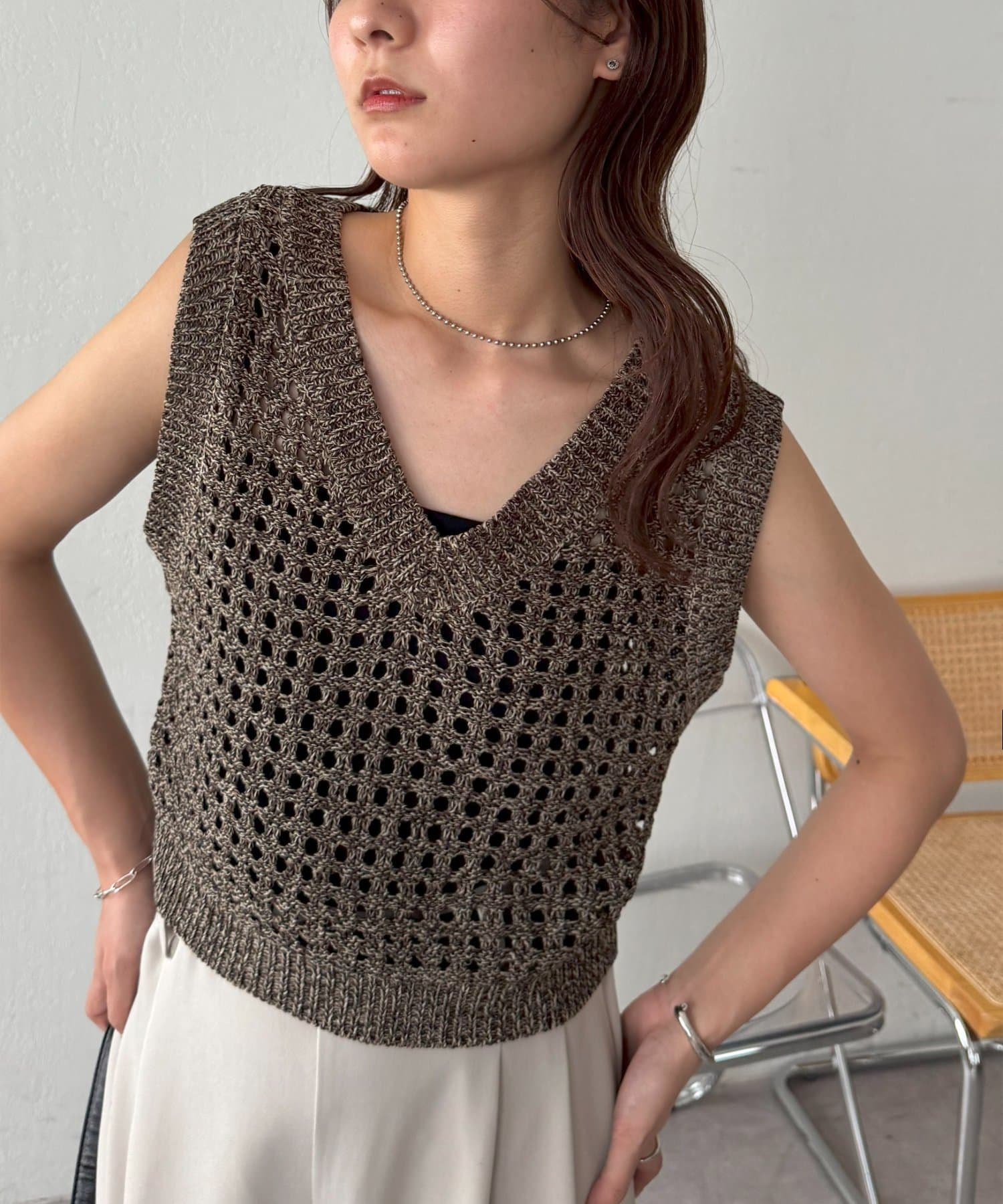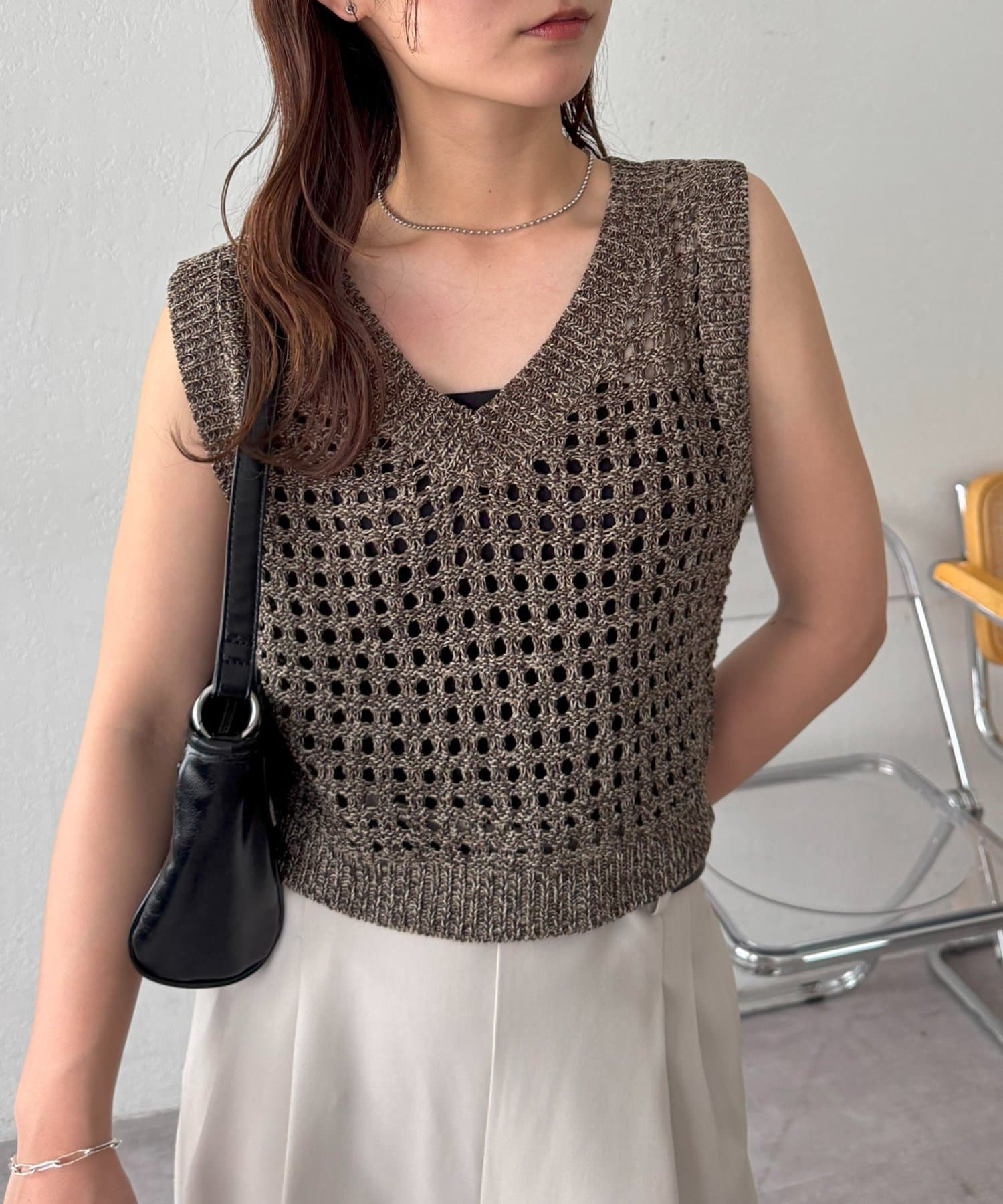 ・透かし編みで軽やか&涼しげな印象のニットベスト