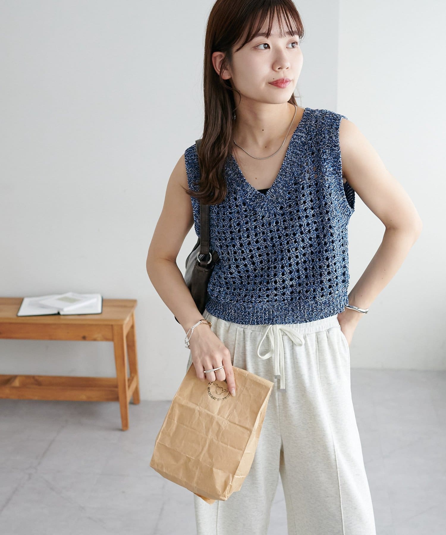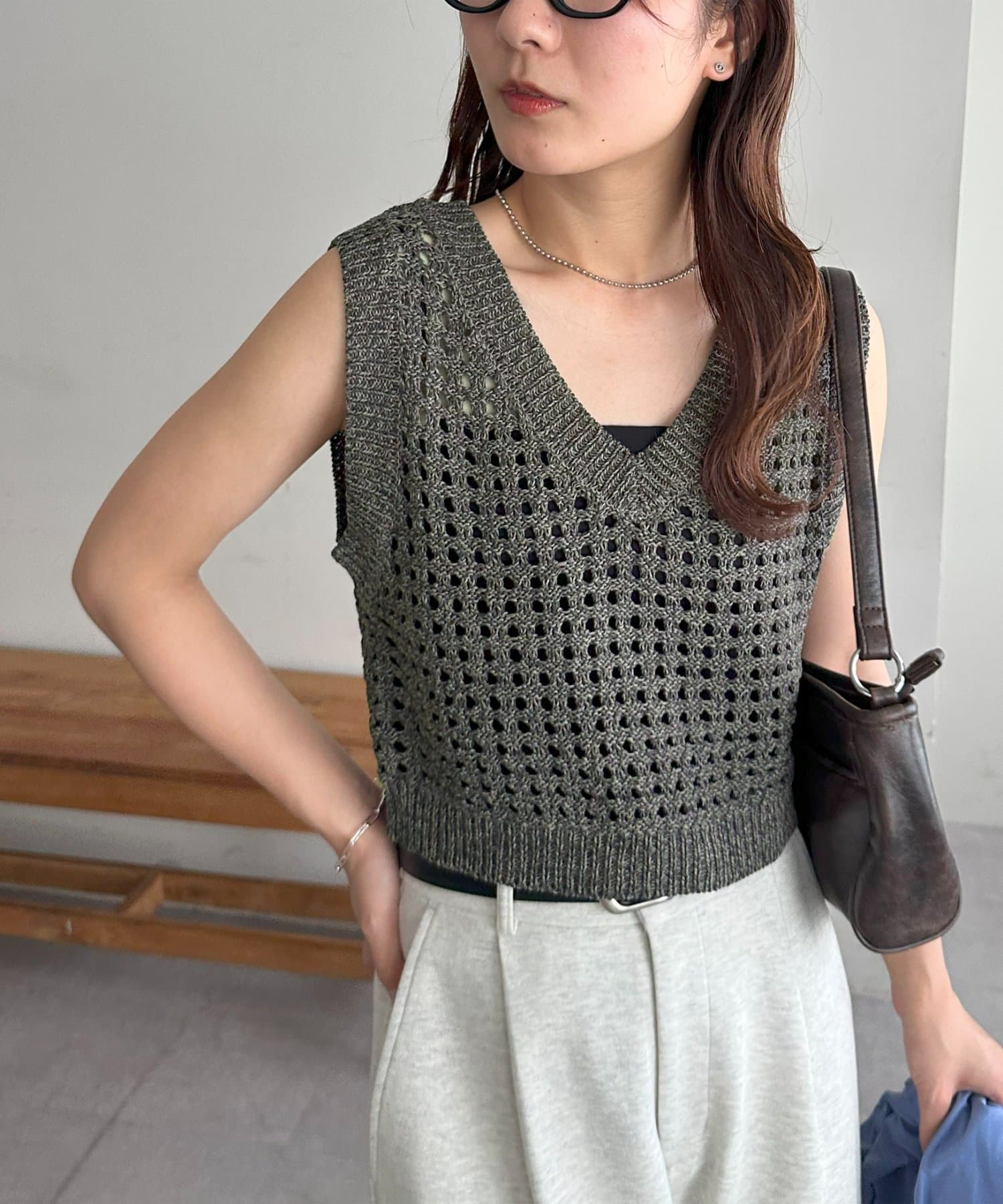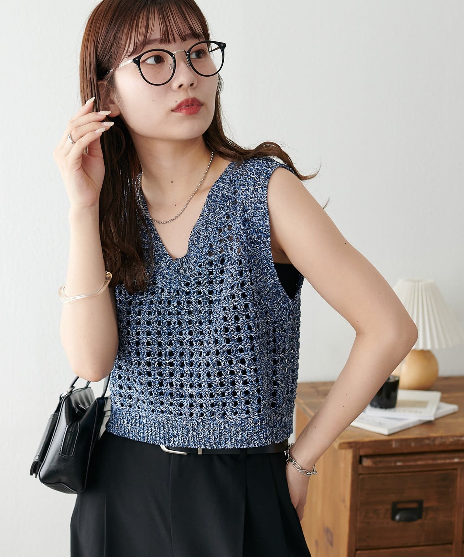・透かし編みで軽やか&涼しげな印象のニットベスト