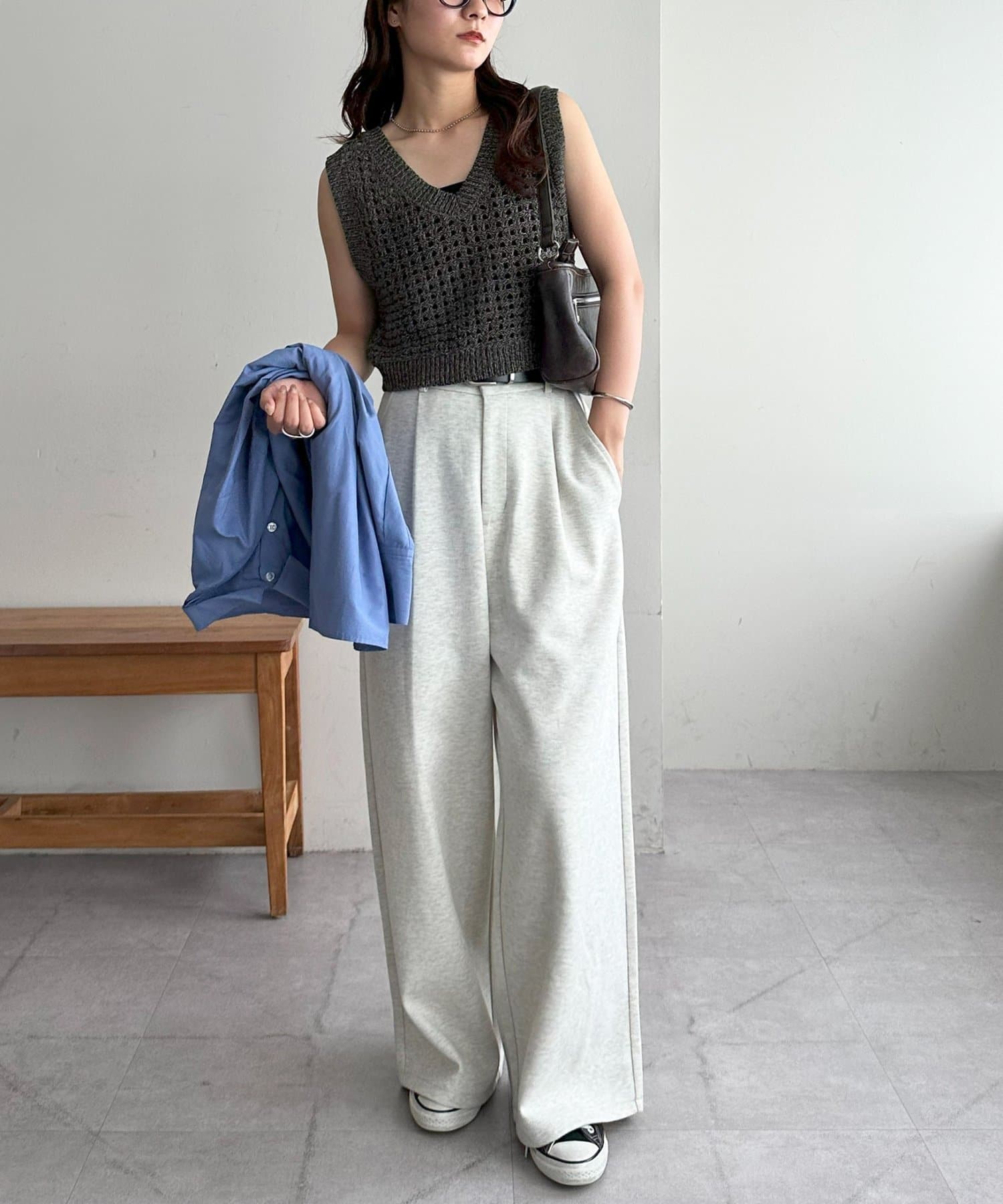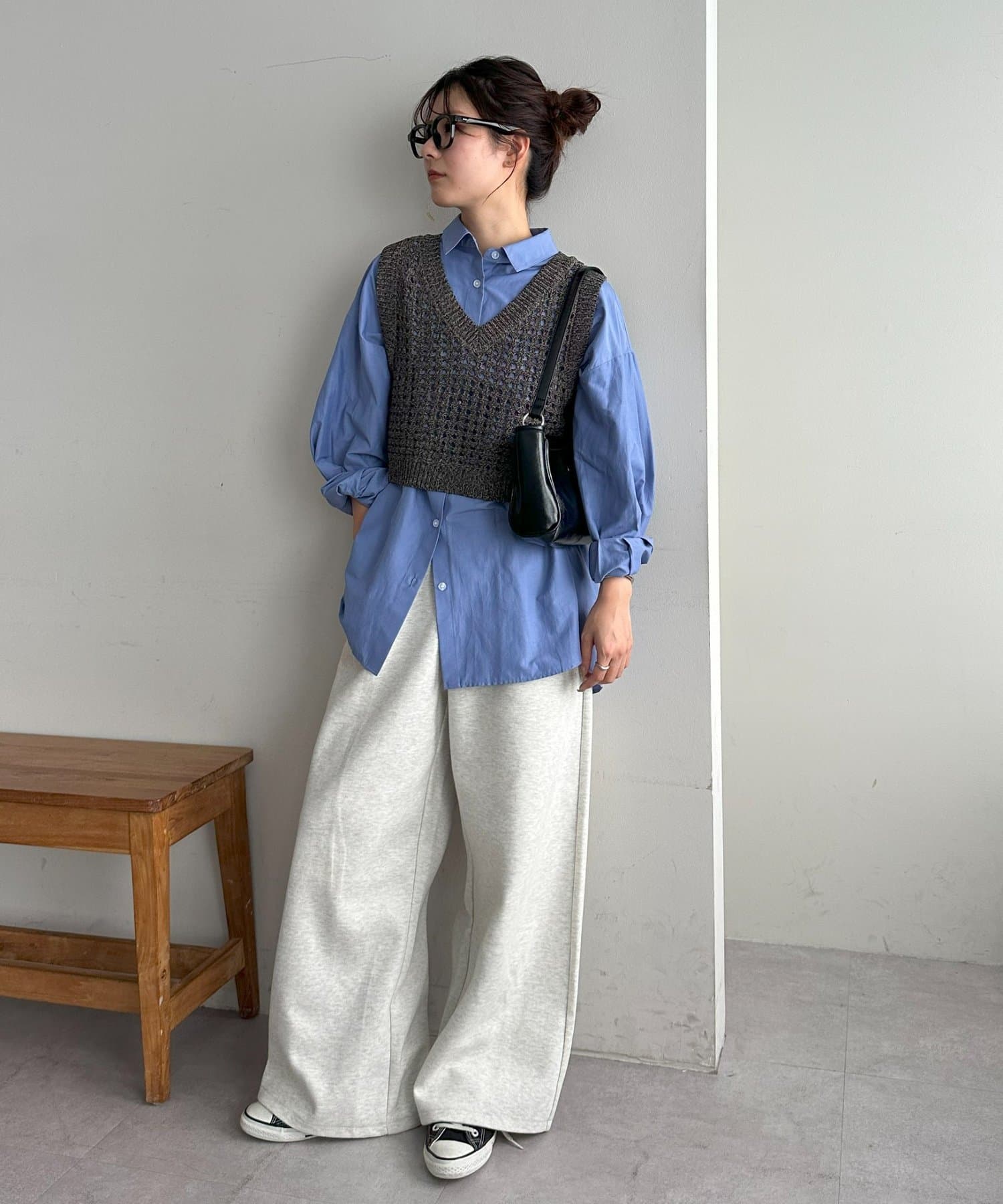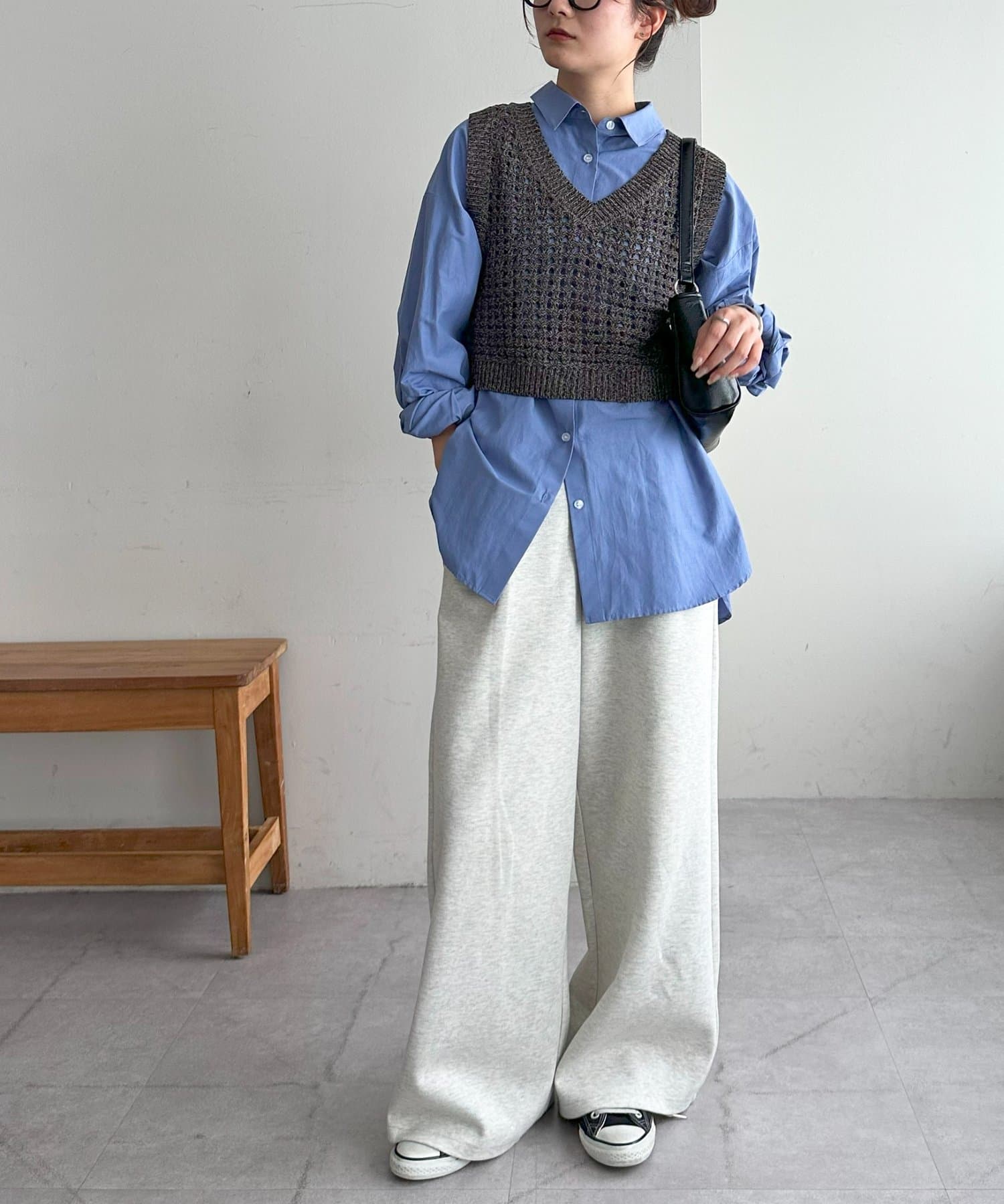 スウェットパンツと合わせたラフな着こなしも、どこかきちんと感が出るバランスが気に入っています。