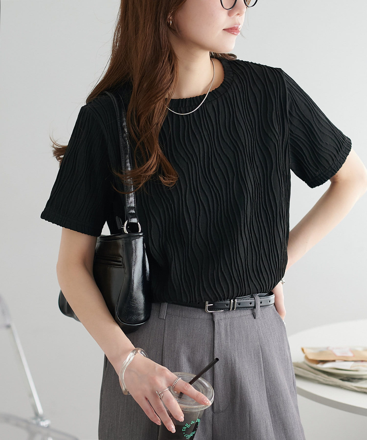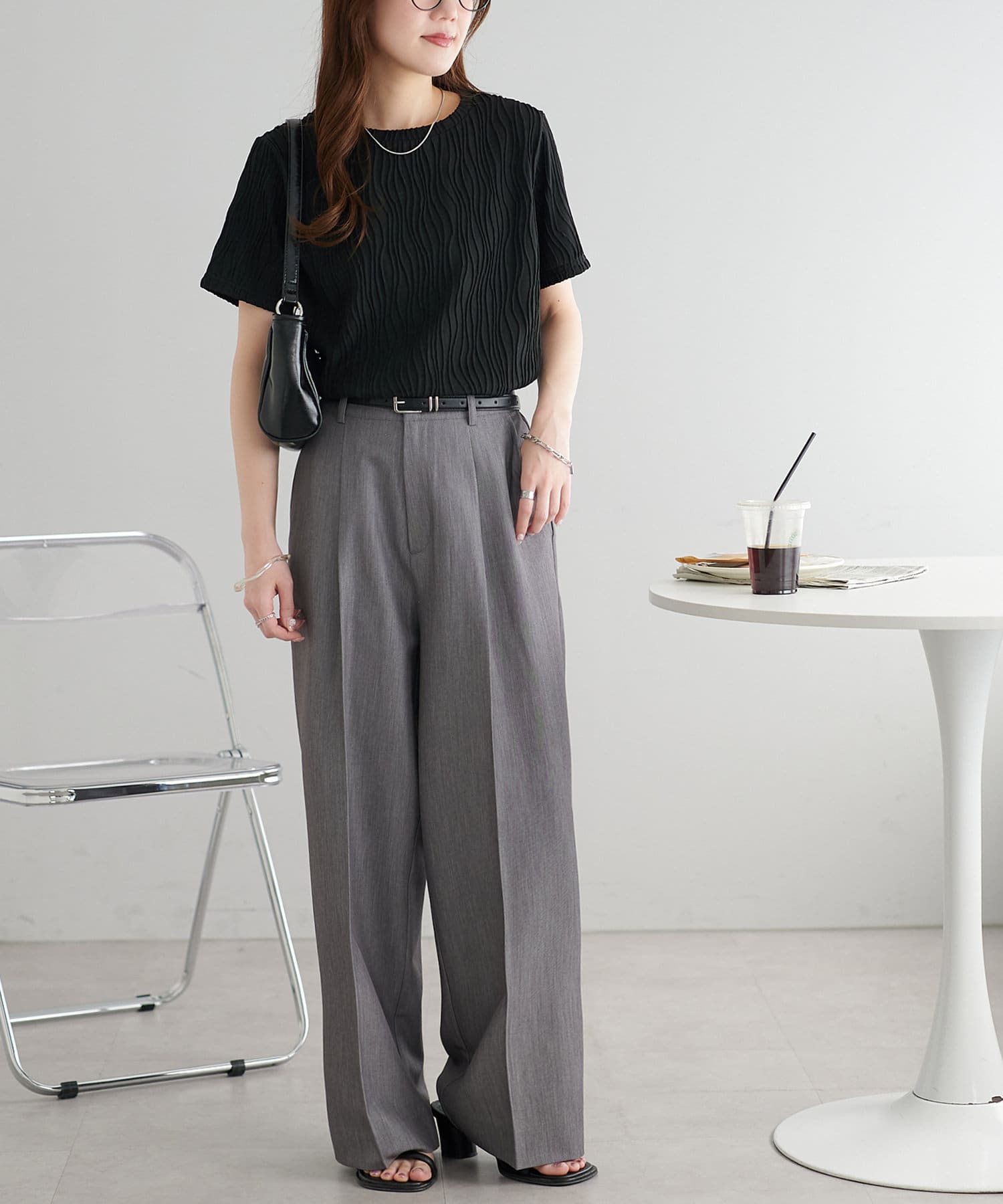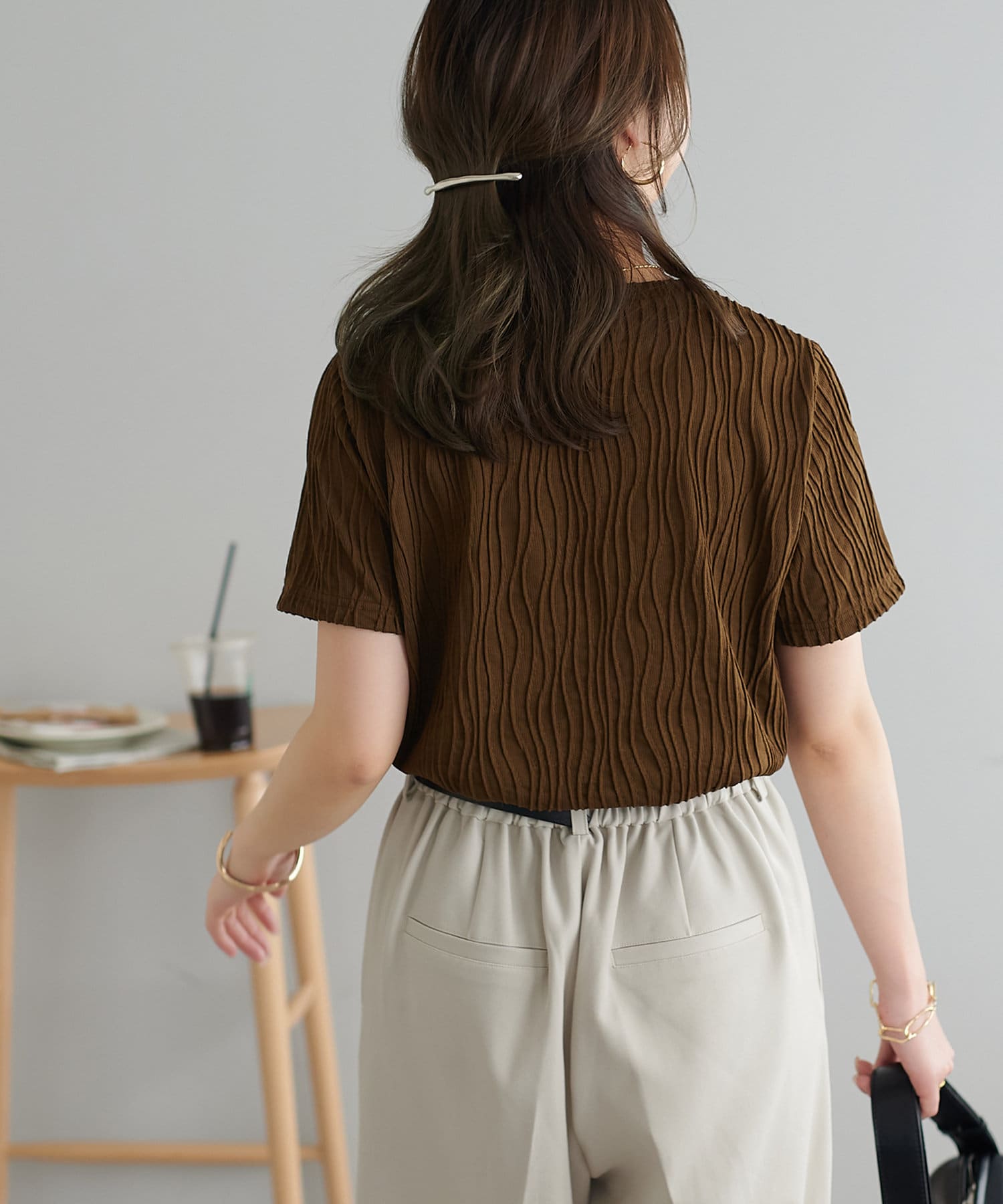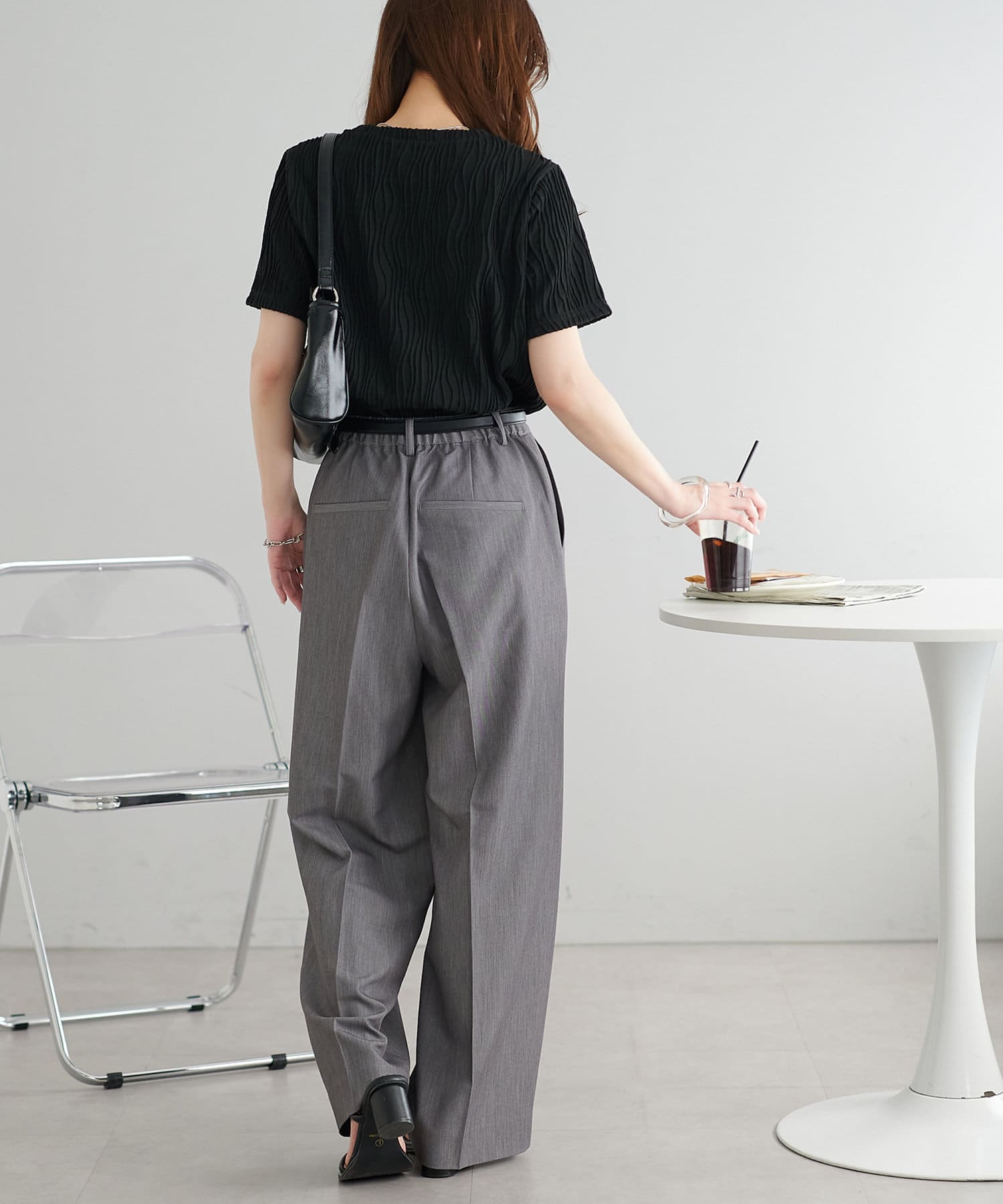 やや伸縮性のある素材感でストレスフリーで着用できます〇