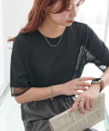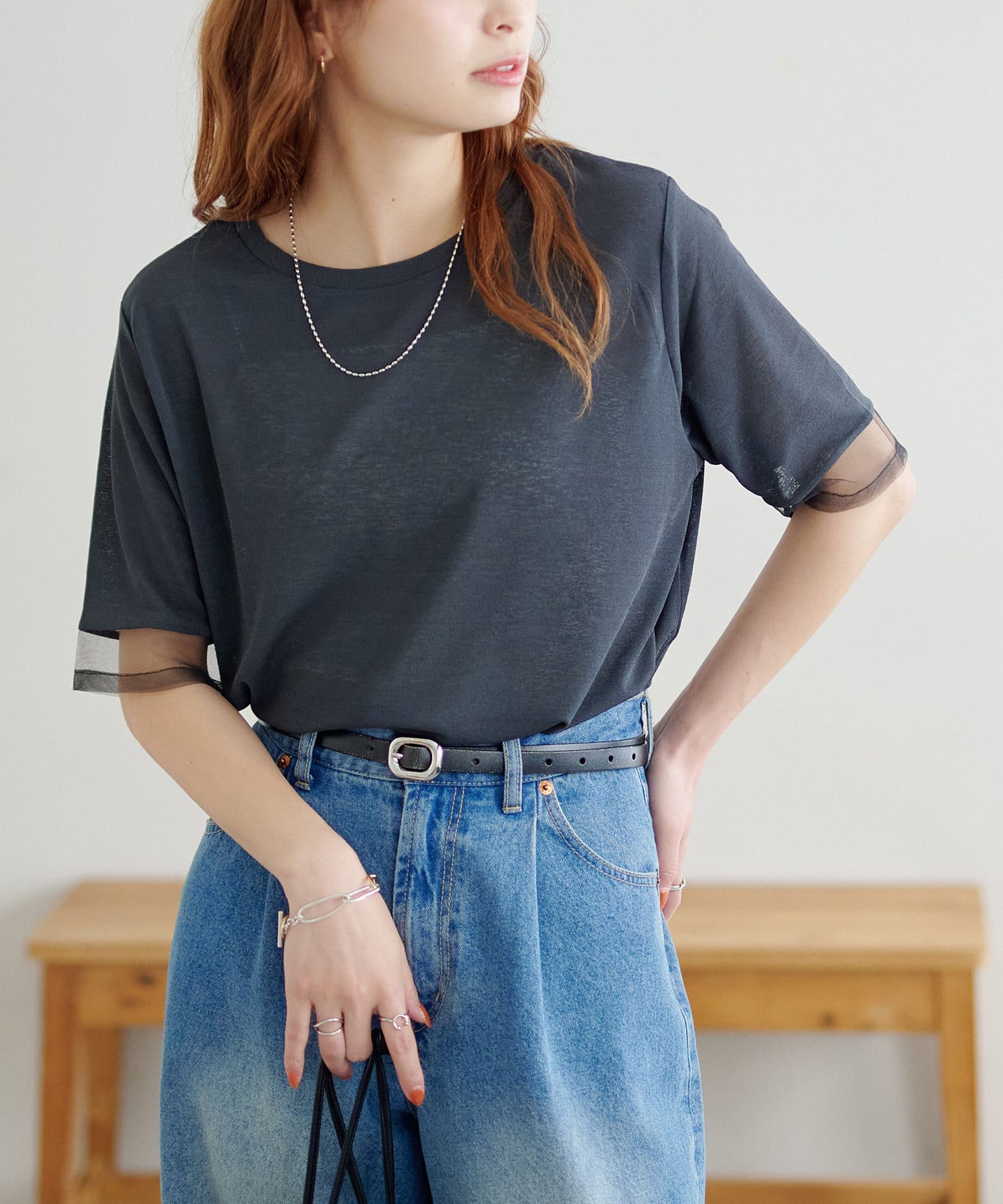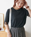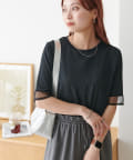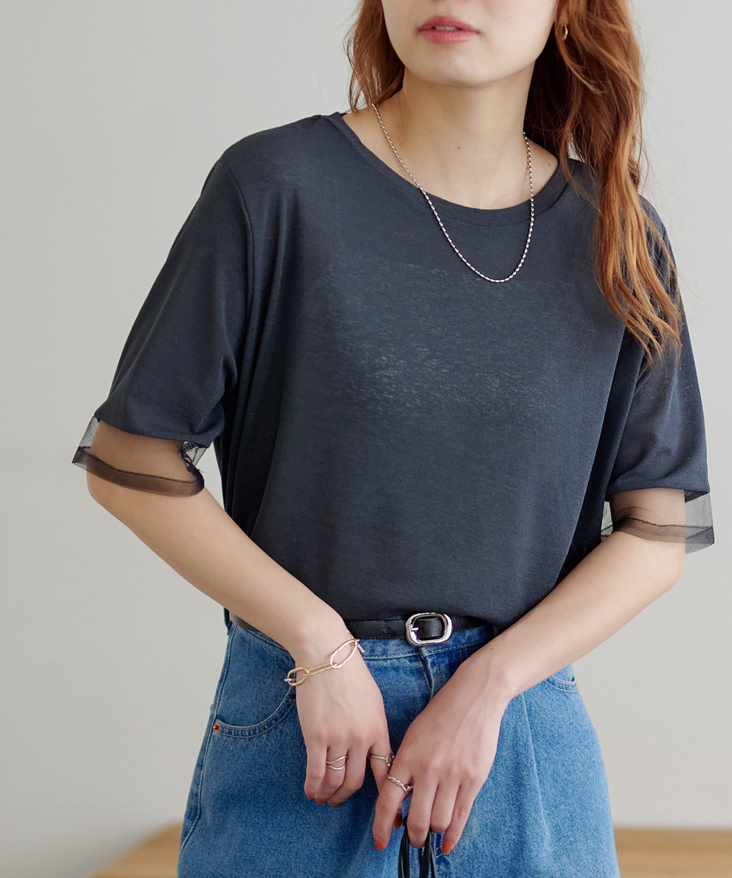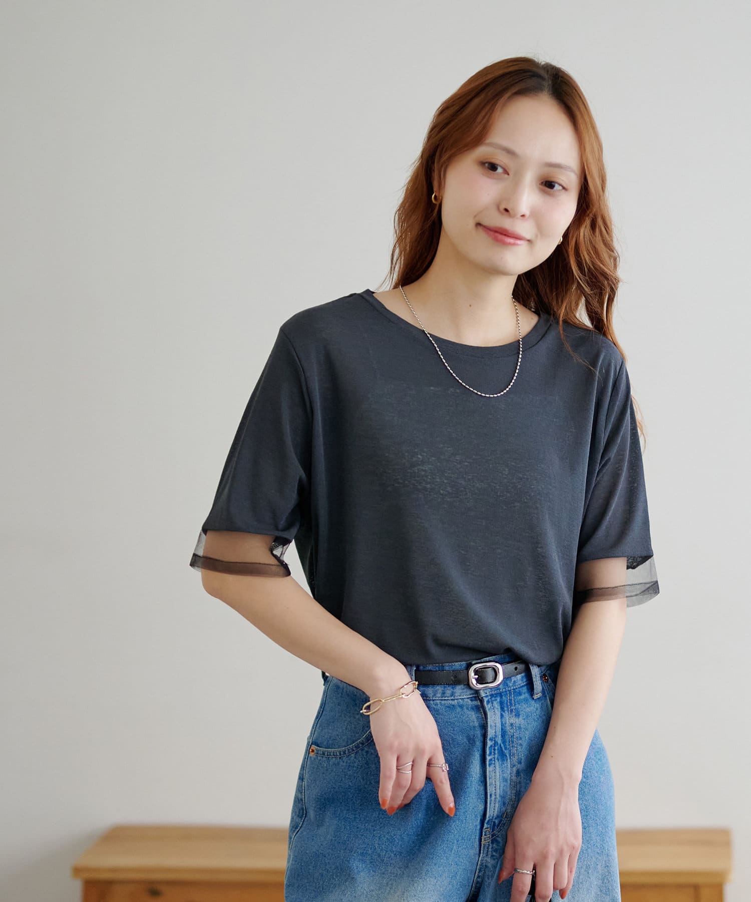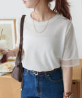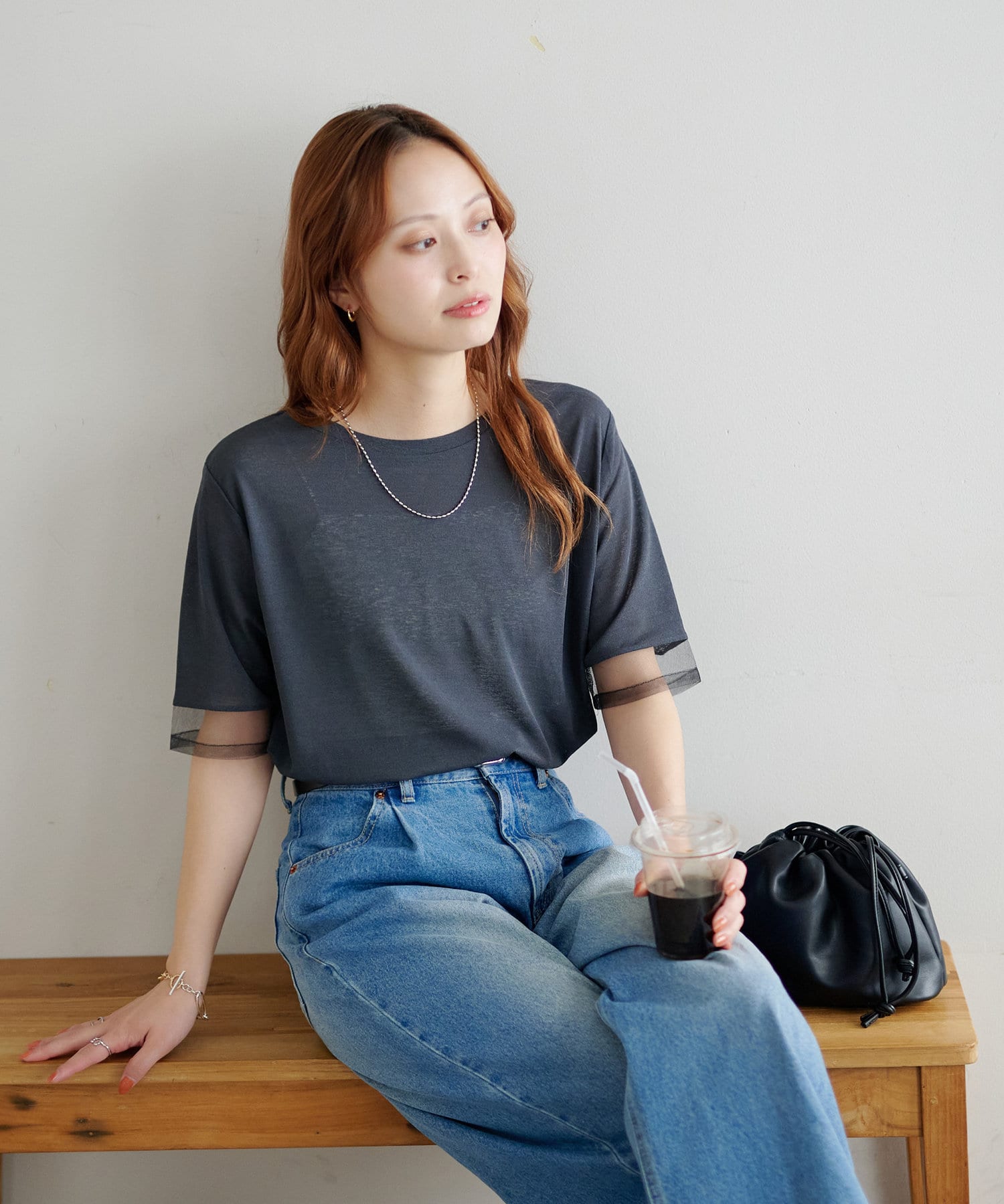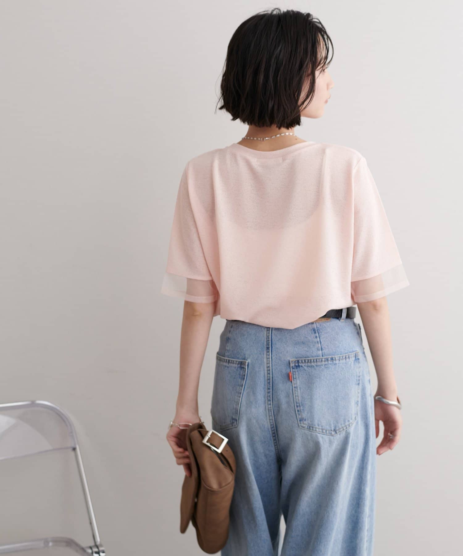 【万能トップス/毎年大人気】シアー袖切替5分袖Tシャツ