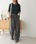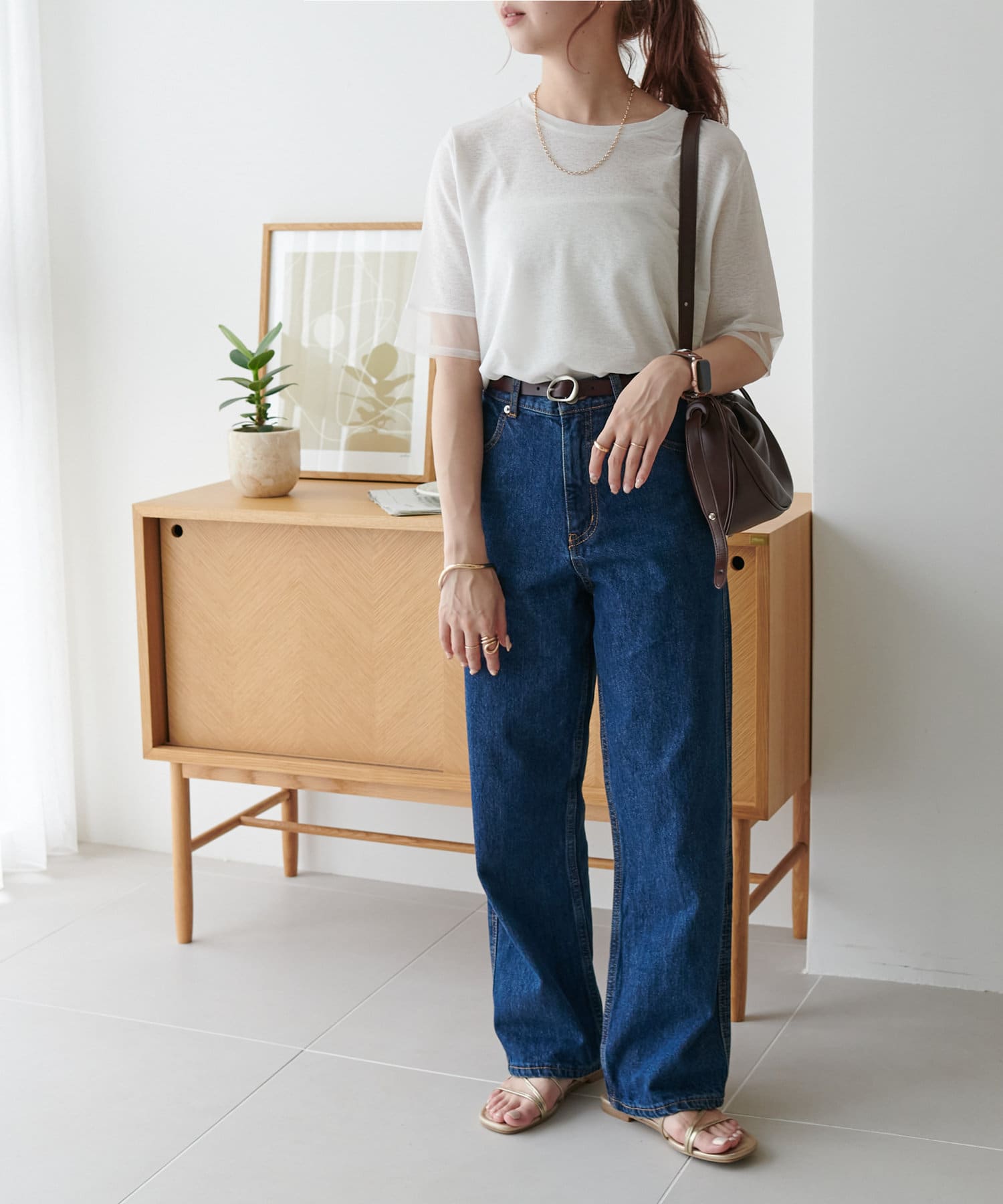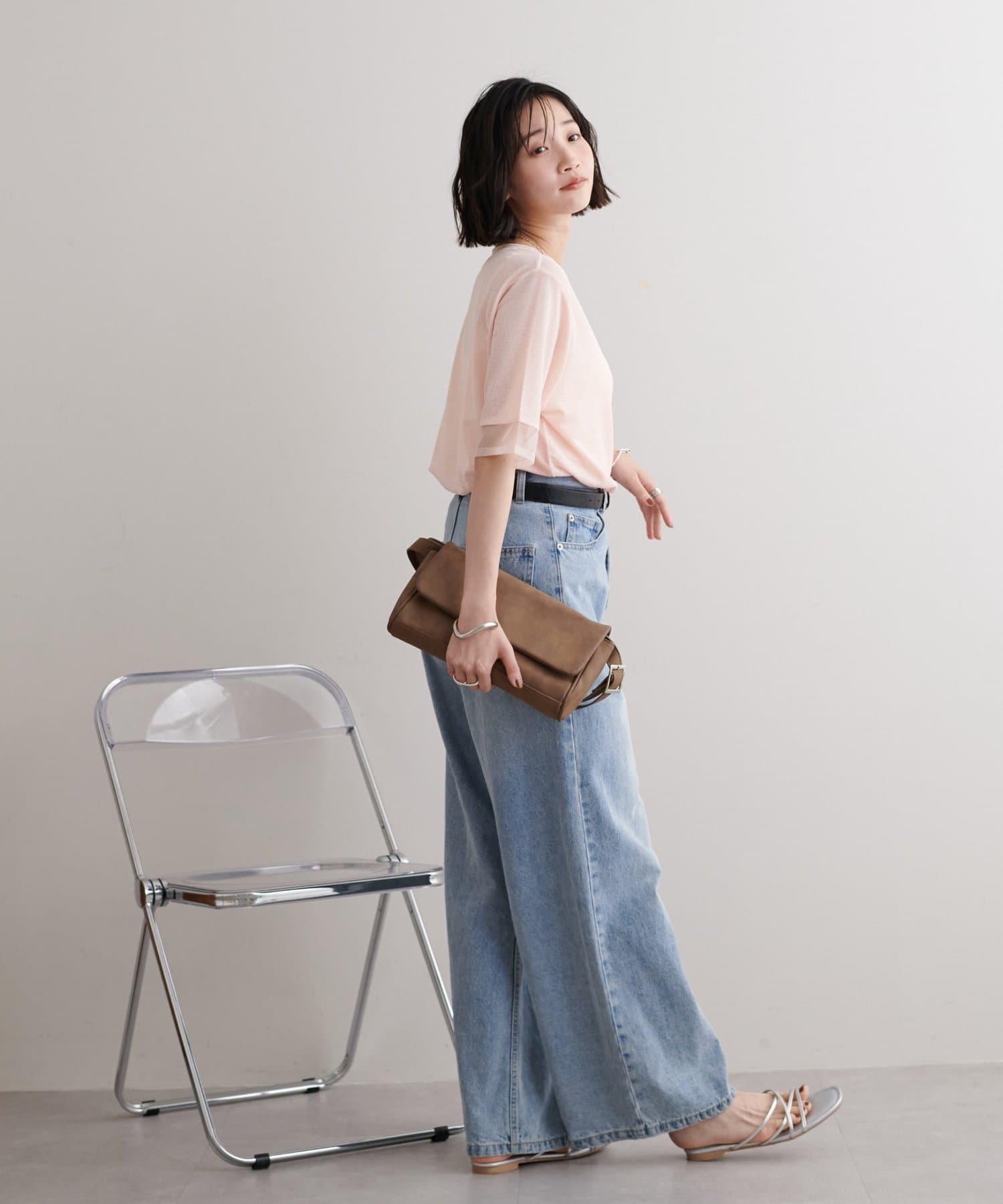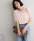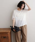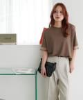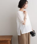 160cmスタッフ:ゆとりのあるシルエットで体のラインを拾いにくく、1枚でさらっと着ても安心。ラフにデニムと合わせるだけでサマになるトップスです。