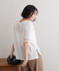 タックアウトしても様になる裾スリットのデザインで、一枚での着用はもちろん、キャミワンピースやサロペットのインナーとしても映えるマルチなアイテムです◎