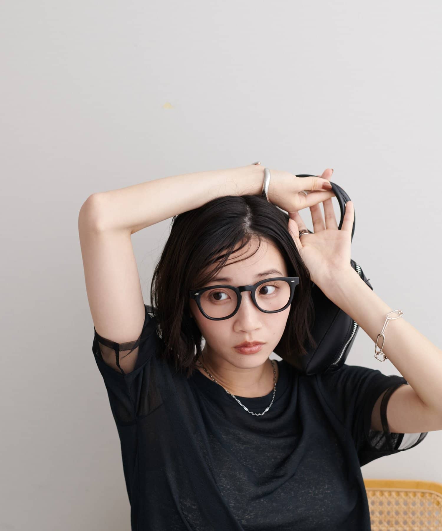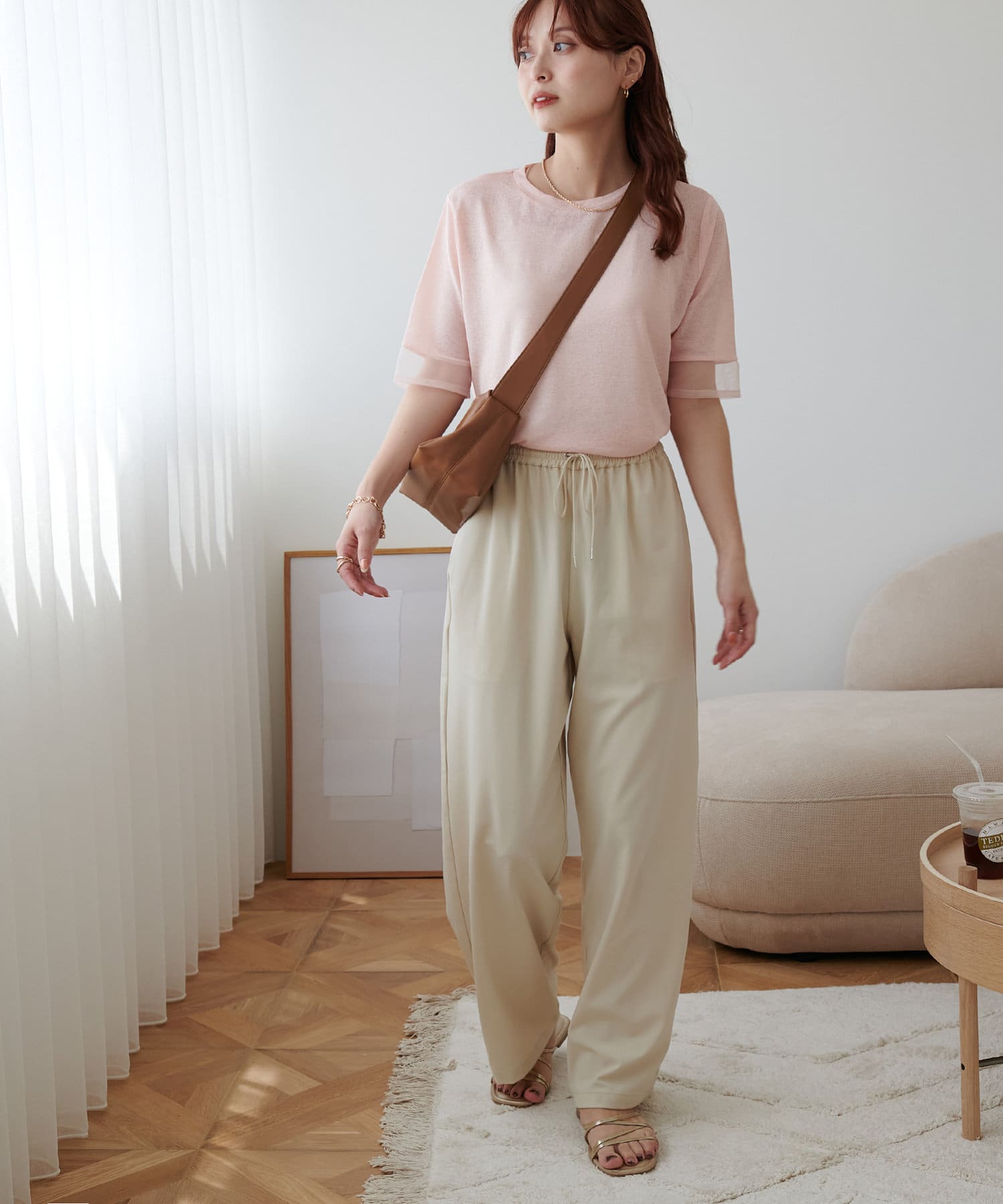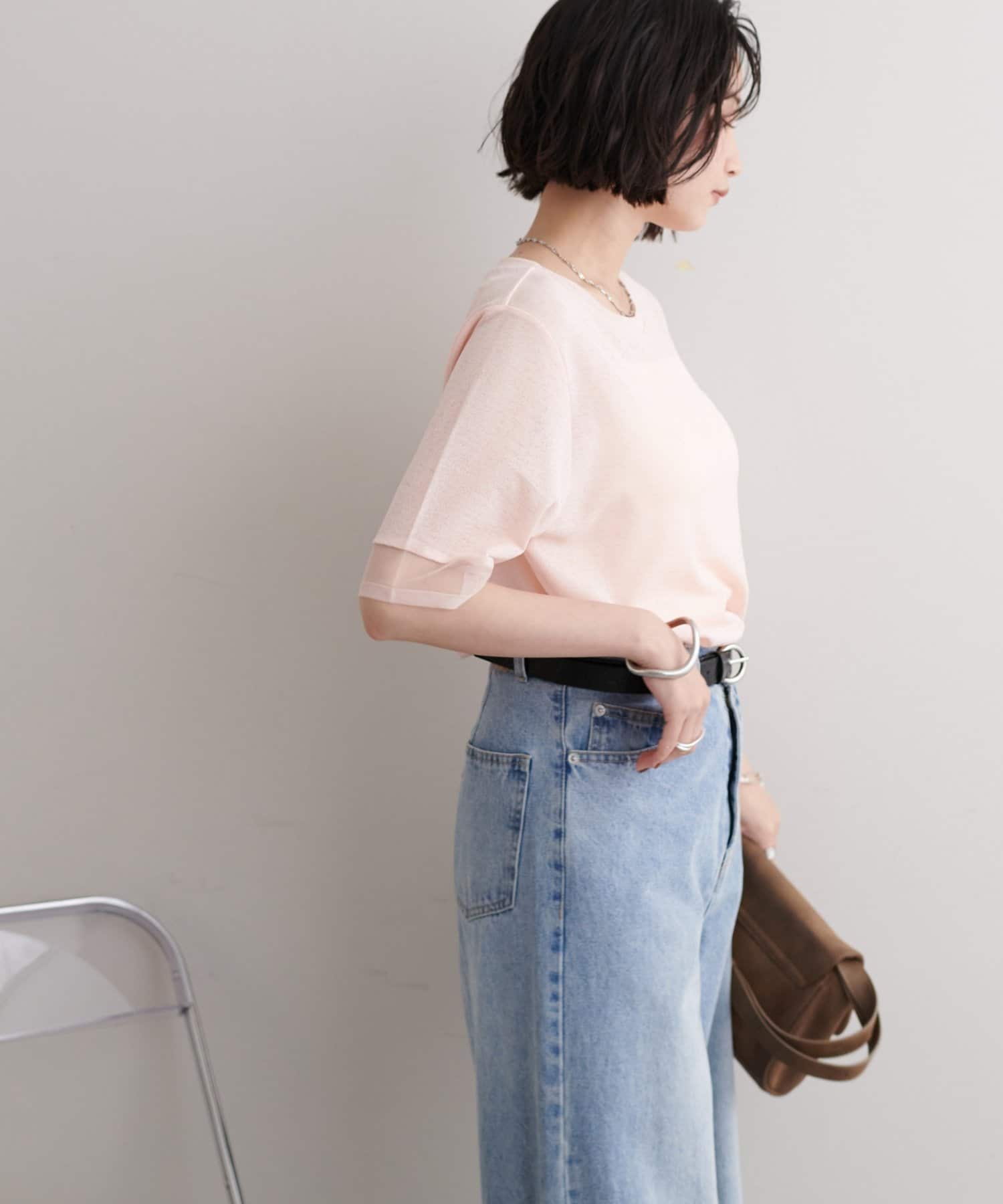 肩回りや二の腕をカバーしつつも、軽やかで涼しげな印象に仕上げています。