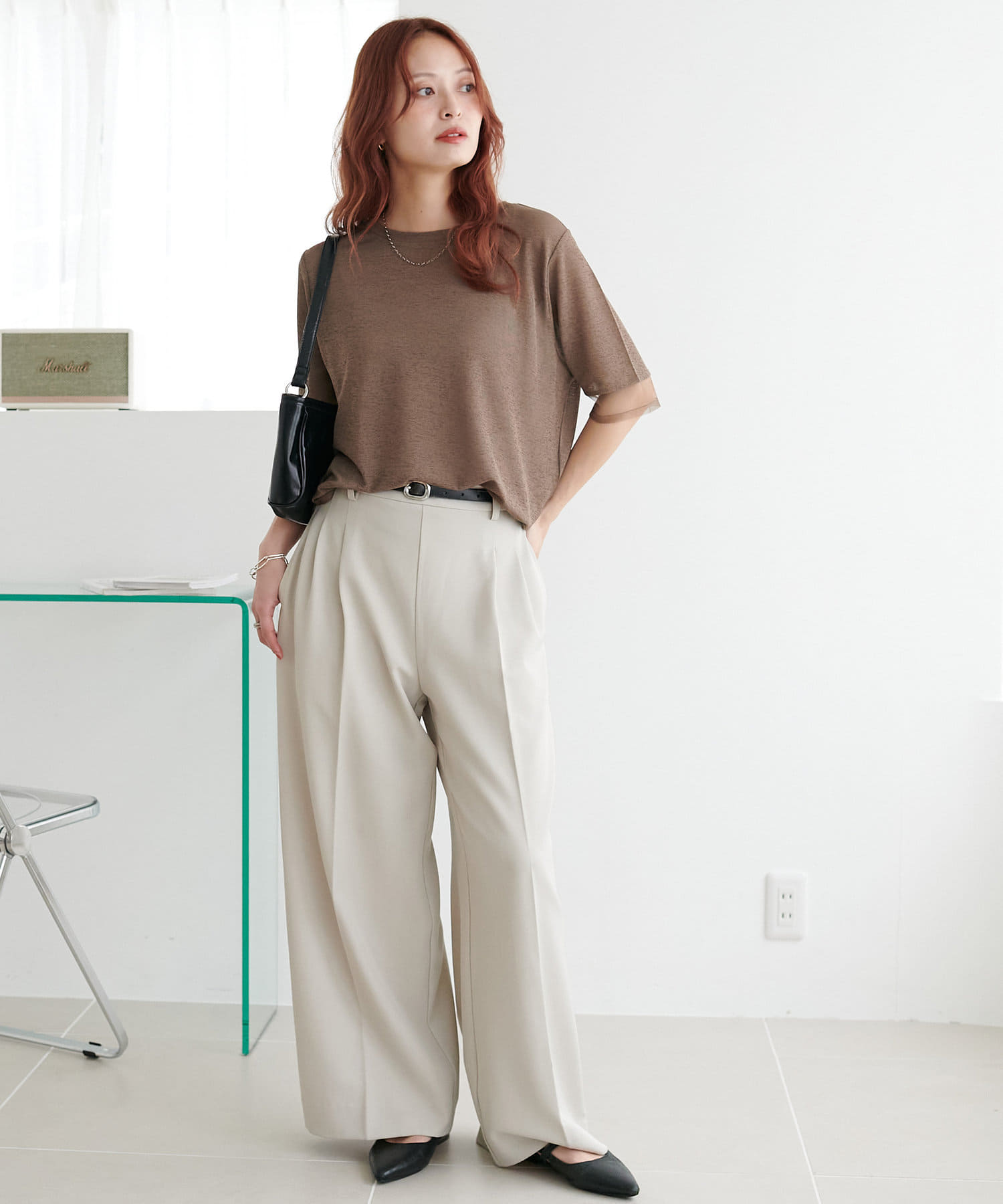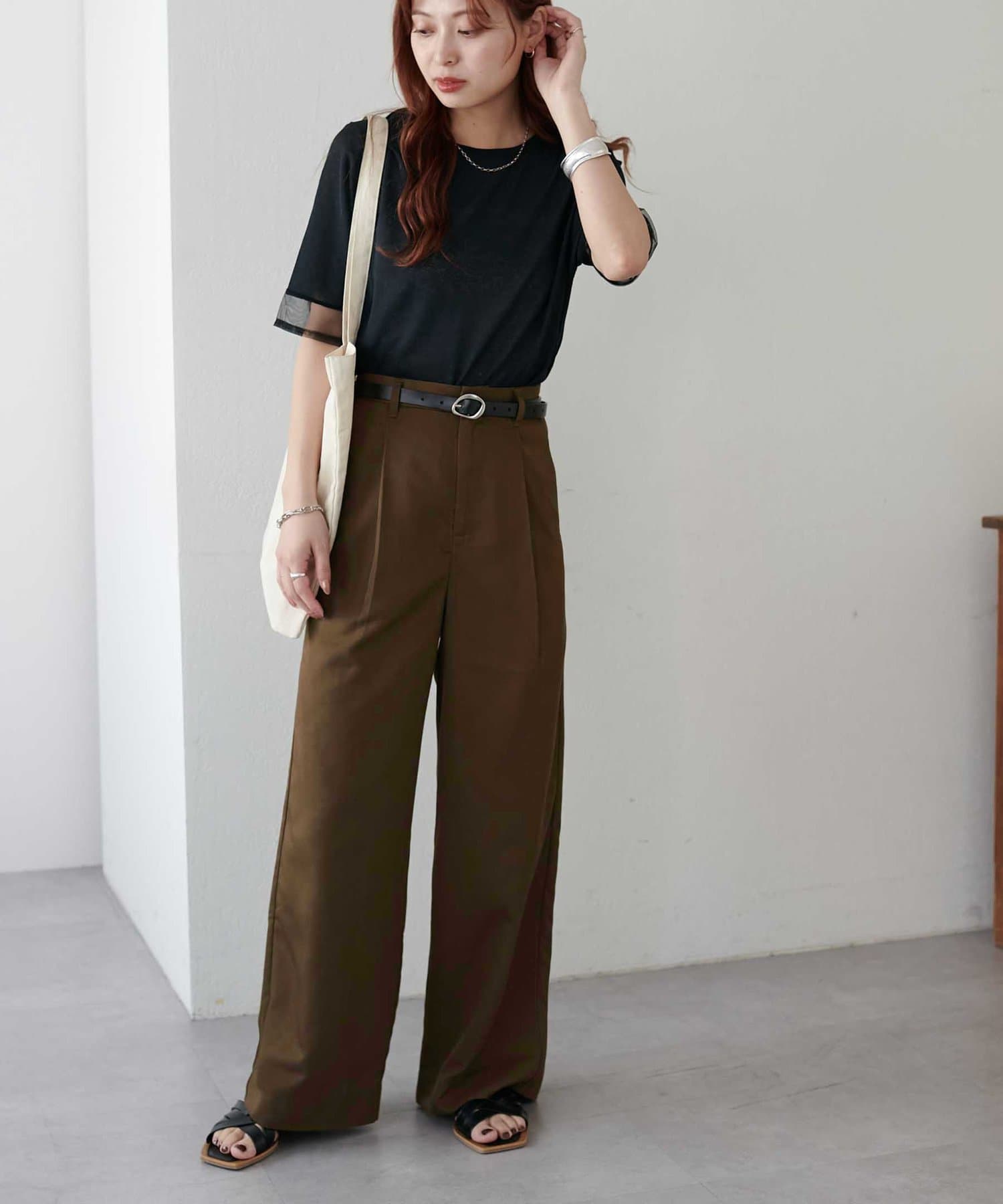 【@yuyukekelife企画】ベルト付き欲張りストレートタックパンツ