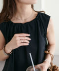 ギャザーの寄せ具合が調整できるので、アクセサリーがなくても首元が華やかになります♪