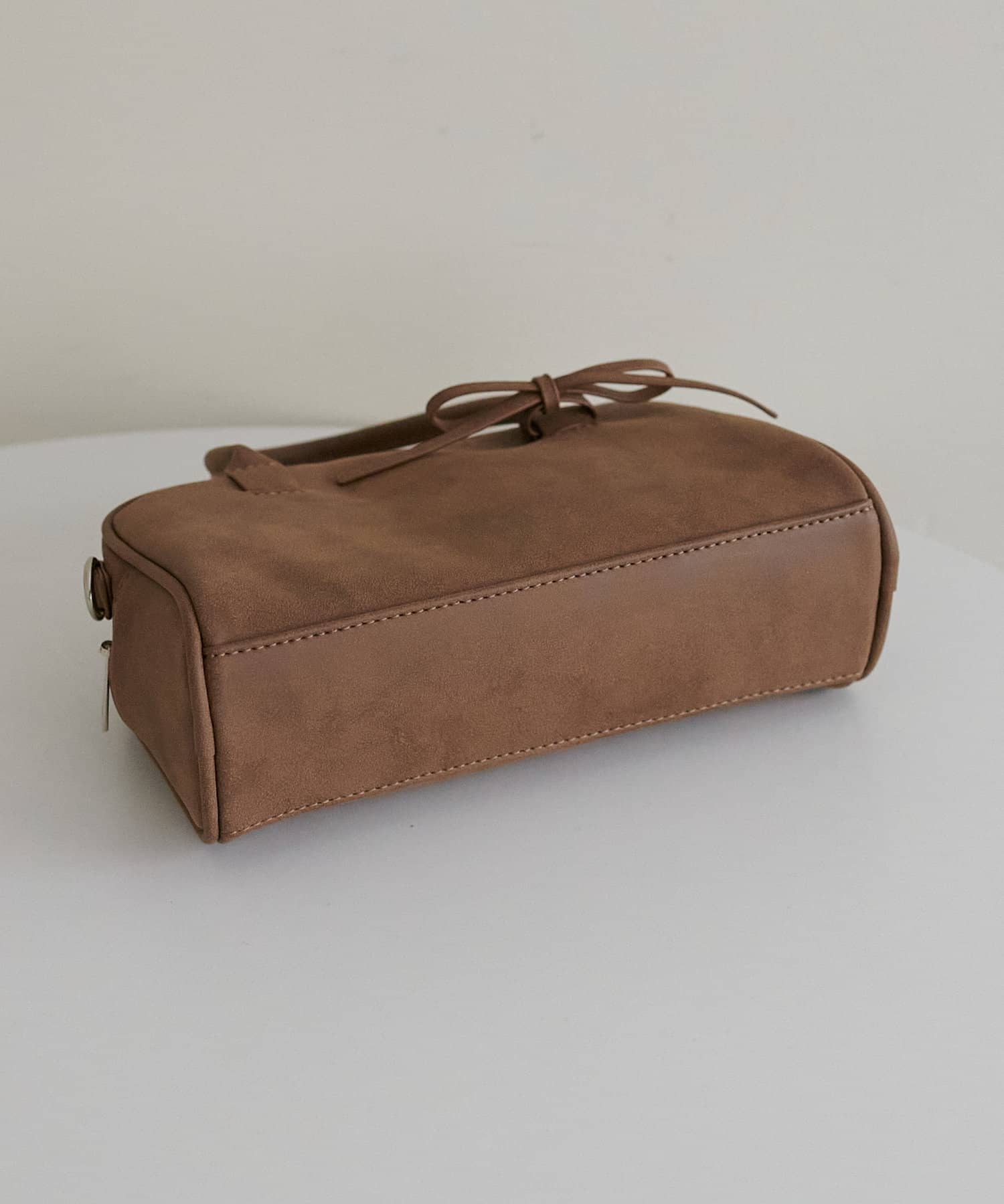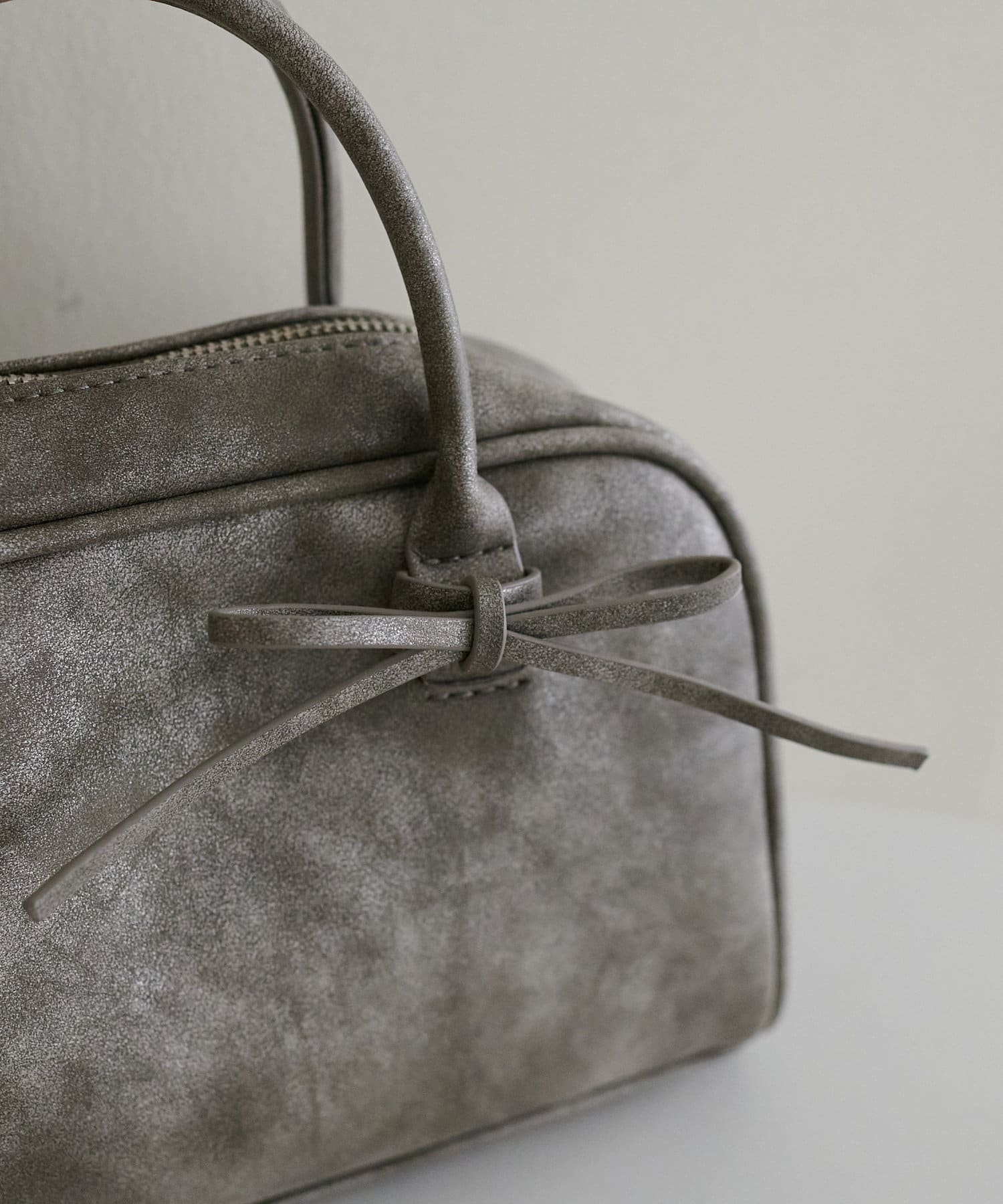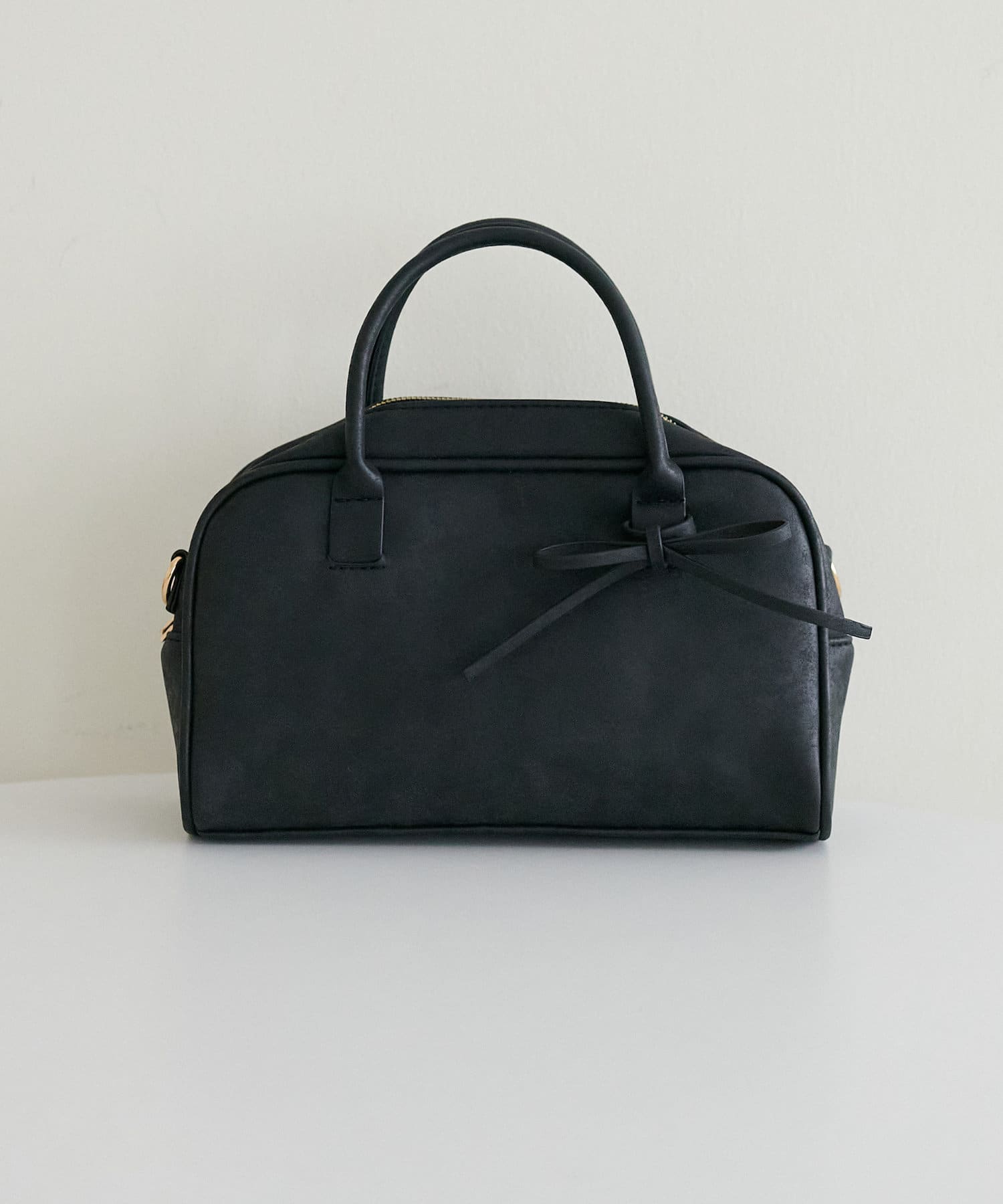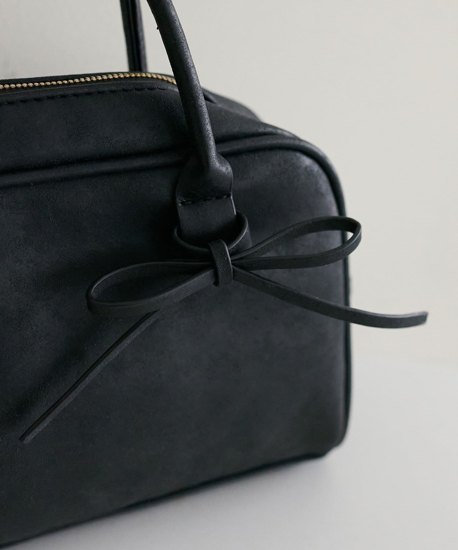 上品な光沢感があって使いやすい2WAYリボンスクエアボストンバッグ。