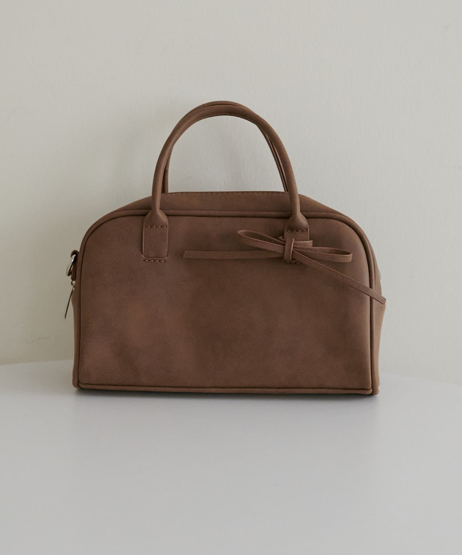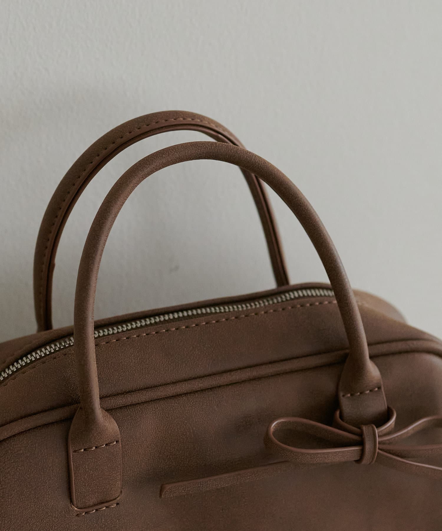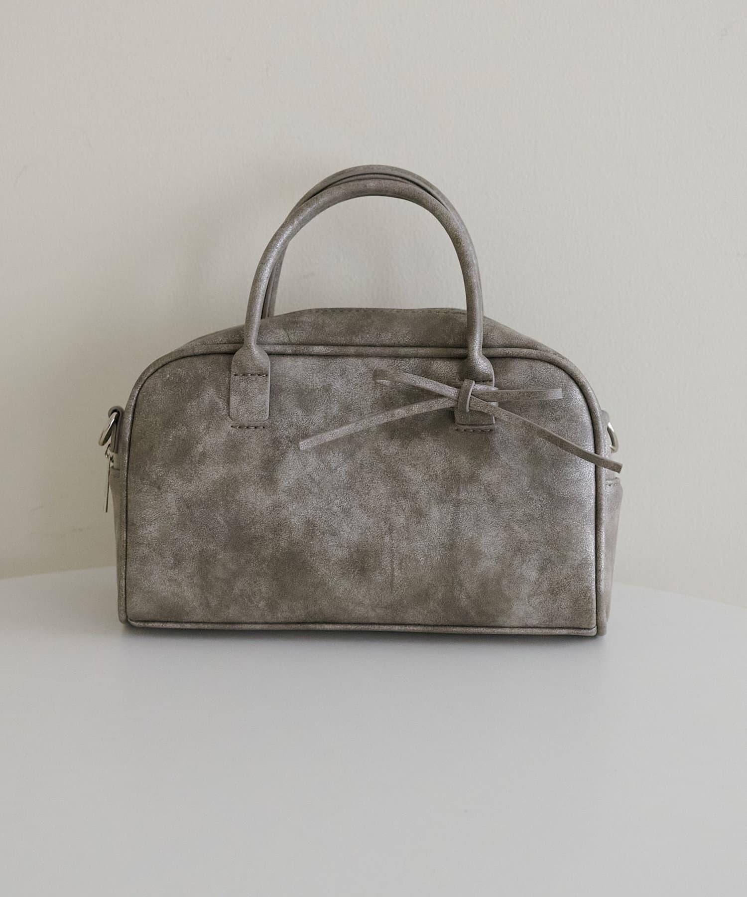 上品な光沢感があって使いやすい2WAYリボンスクエアボストンバッグ。
