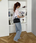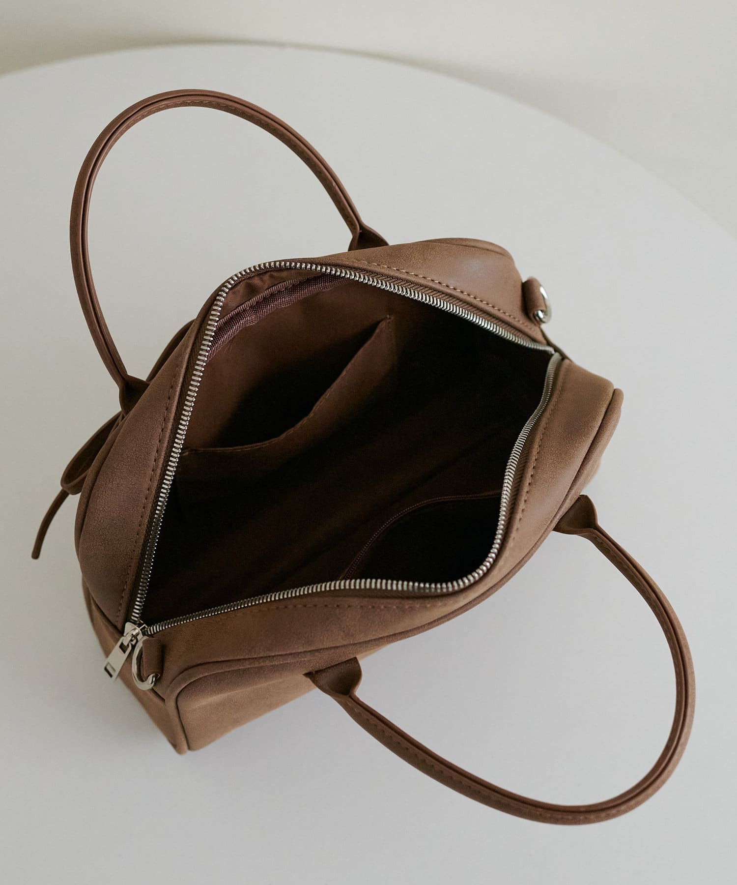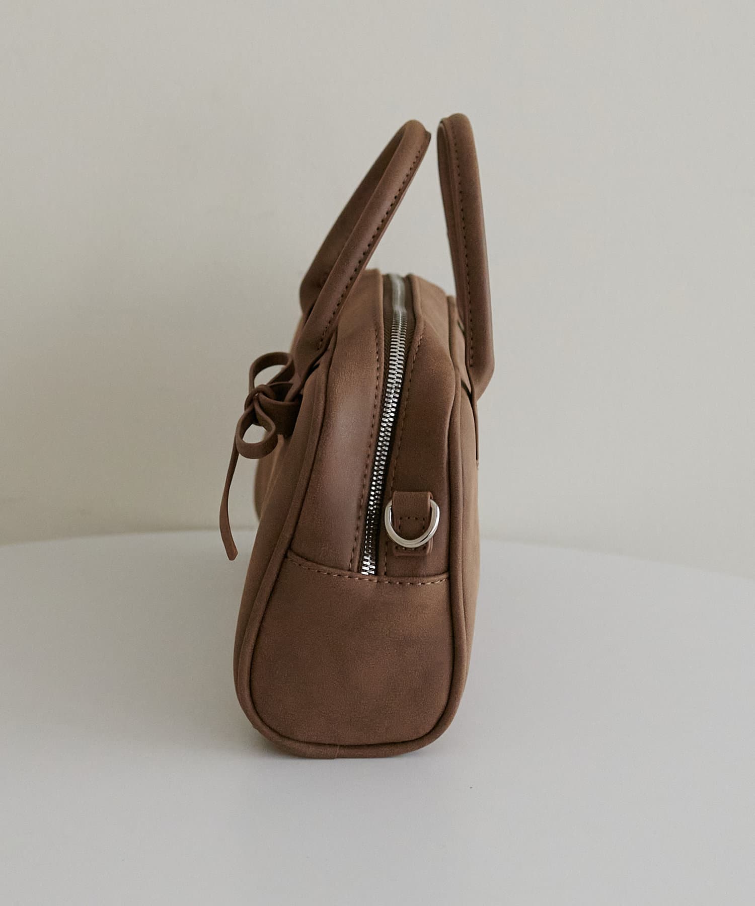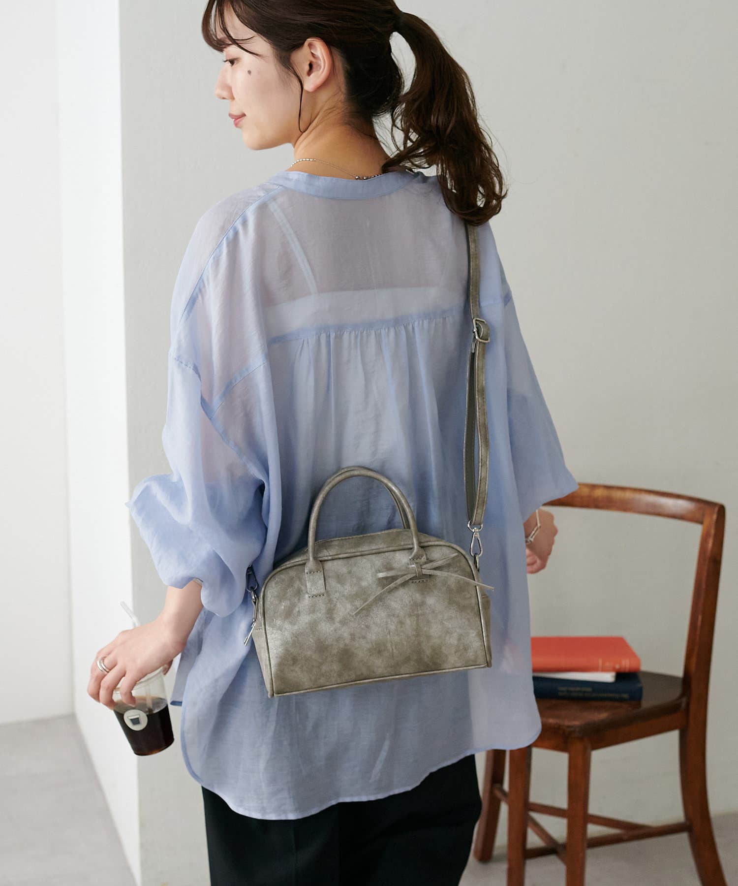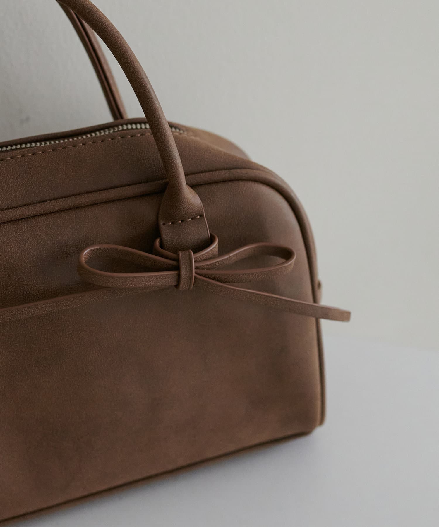 上品な光沢感があって使いやすい2WAYリボンスクエアボストンバッグ。