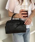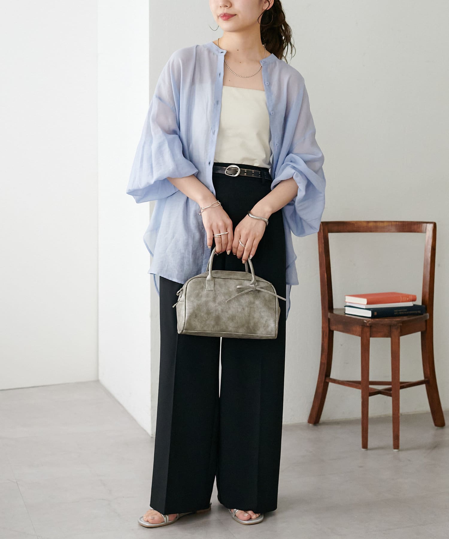 シンプルなデザインの中にアクセントのリボンがワンポイント♪トレンドの横長シルエットで荷物が入れやすく、7cmのマチがあり600mlペットボトルもしっかり収まります◎ハンドバッグとしてはもちろん、長さ調節可能なショルダー紐が付属しているのでその日のコーデや気分に合わせてショルダーバッグとして使うこともできます。バッグ単体で自立するので、サッと手に取ってお出かけしやすいのも魅力の1つです。