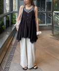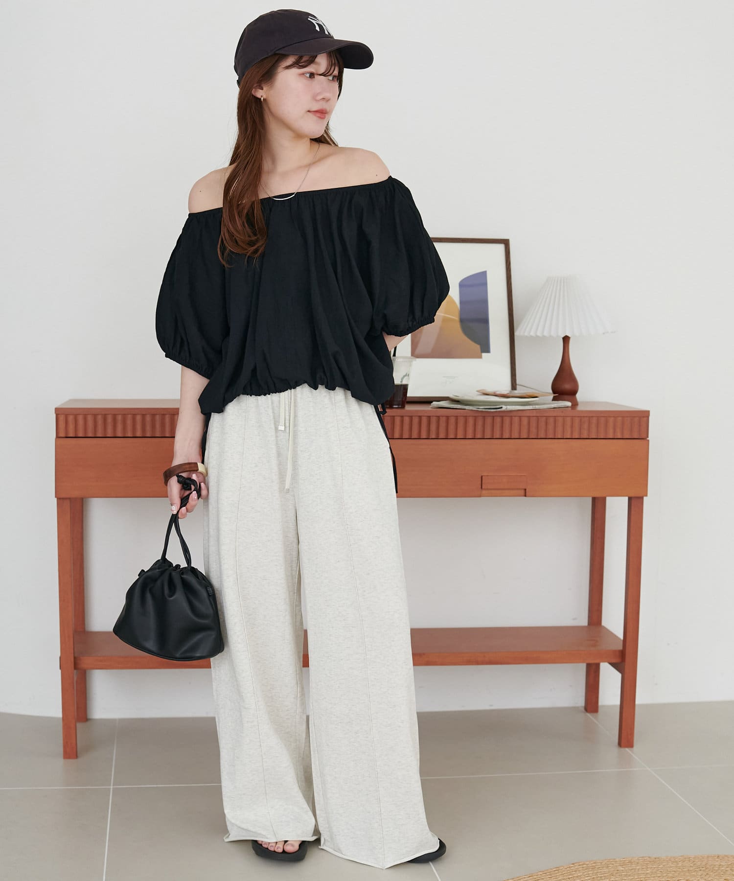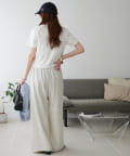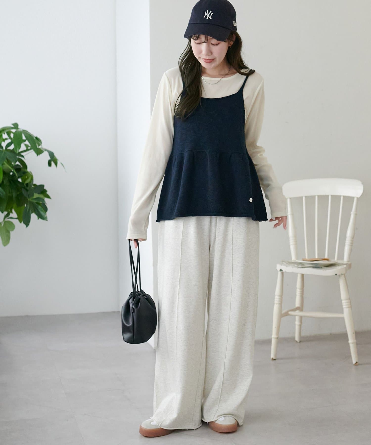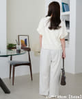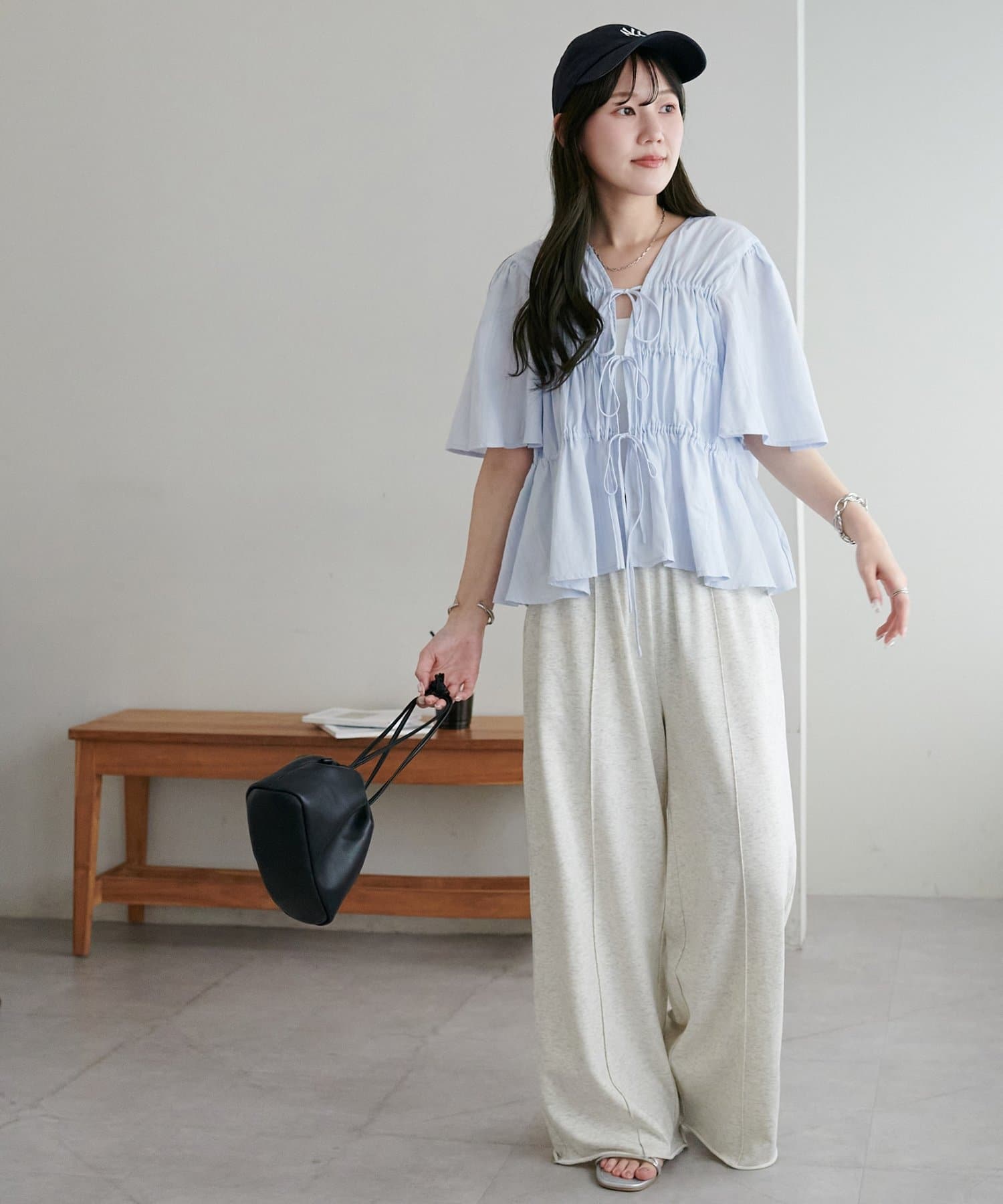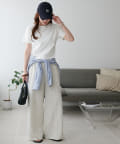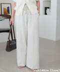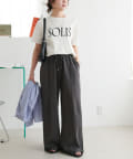 裾の断ち切りデザインと、ウエスト紐を平紐にしたことでよりこなれ感のある印象に。ラフにおしゃれを楽しめるアイテムです♪