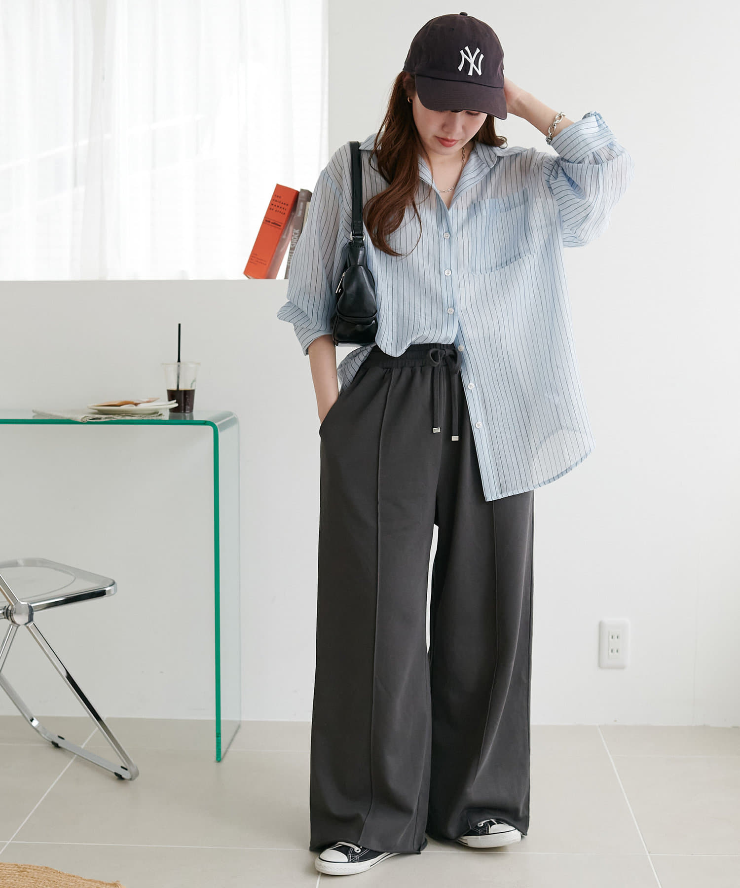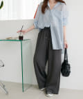 ゆったりとしたワイドシルエットがトレンドライクで、体型を自然にカバーしつつ縦のラインを強調し、すっきりと見せてくれます。
